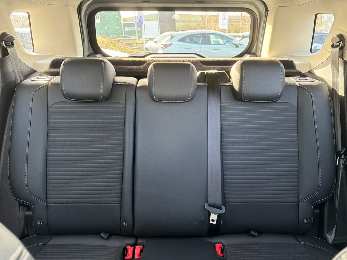 "features": "Cruise control, e-Call (emergency call), Easy fuel capless refuelling system, Ford SYNC 3 nav system with DAB radio,8\" screen, emergency assistance,Apple car play/Android auto, 2x USB, 6 speakers, Ford pass connect, Intelligent speed limiter, PAS, Rear parking sensors, Rear view camera, Traffic sign recognition, Trip computer, Auto dimming rear view mirror, Automatic front wipers, Automatic headlights, Black roof rails, Body colour door handles, Body colour roof, Body coloured bumpers, Body coloured door mirrors, Chrome front grille, Chrome lower window surround, Electrically adjustable and heated door mirrors, Front fog lights, Headlight levelling control, LED day running lights, LED third brake light, Power front and rear windows, Puddle lights, Quick-clear heated windscreen, Rear side wing doors, Rear wiper, 12V socket in front and rear, 3 seat bench in 2nd row, 60/40 split rear seats, Ambient lighting, Centre console with sliding front armrest, Cooled glovebox, Courtesy lights with map reading light, Driver seat height/lumbar adjust, Driver's side glovebox, Driver/passenger sunvisors and lidded vanity mirrors, EATC - Electronic Auto Temperature control, Folding grab handles, Front floor mats, Front head restraints, Front seat back map pockets, Groove cloth/partial sensico upholstery, Illuminated glovebox, Illuminated luggage compartment, Isofix system on outer rear seats, Leather trimmed steering wheel with remote audio control, Luggage compartment carpet, Overhead console with sunglasses holder, Rake adjustable rear seats, Reach + rake adjustable steering column, Rear headrests, Sensico gear shift gaiter, Sensico handbrake, Single front passenger seat, Storage drawers under front seats, Tie down hooks, Variable boot floor, 3x3 point rear seatbelts, ABS, Autonomous emergency braking, Child locks on rear doors, Curtain airbags, Driver airbag, Drivers knee airbag, Electronic Stability Programme with hill launch assist, Front passenger airbag deactivation, Front side airbags, Passenger airbag, Pre collision assist system with AEB, Seatbelt reminder for driver and front passenger, Traction control, Tyre pressure monitoring system, Immobiliser, MyKey system, Remote central locking, Thatcham 1 volume sensing alarm, 17\" shadow silver finished alloy wheels, Low rolling resistance tyres, Tyre inflation kit, ",