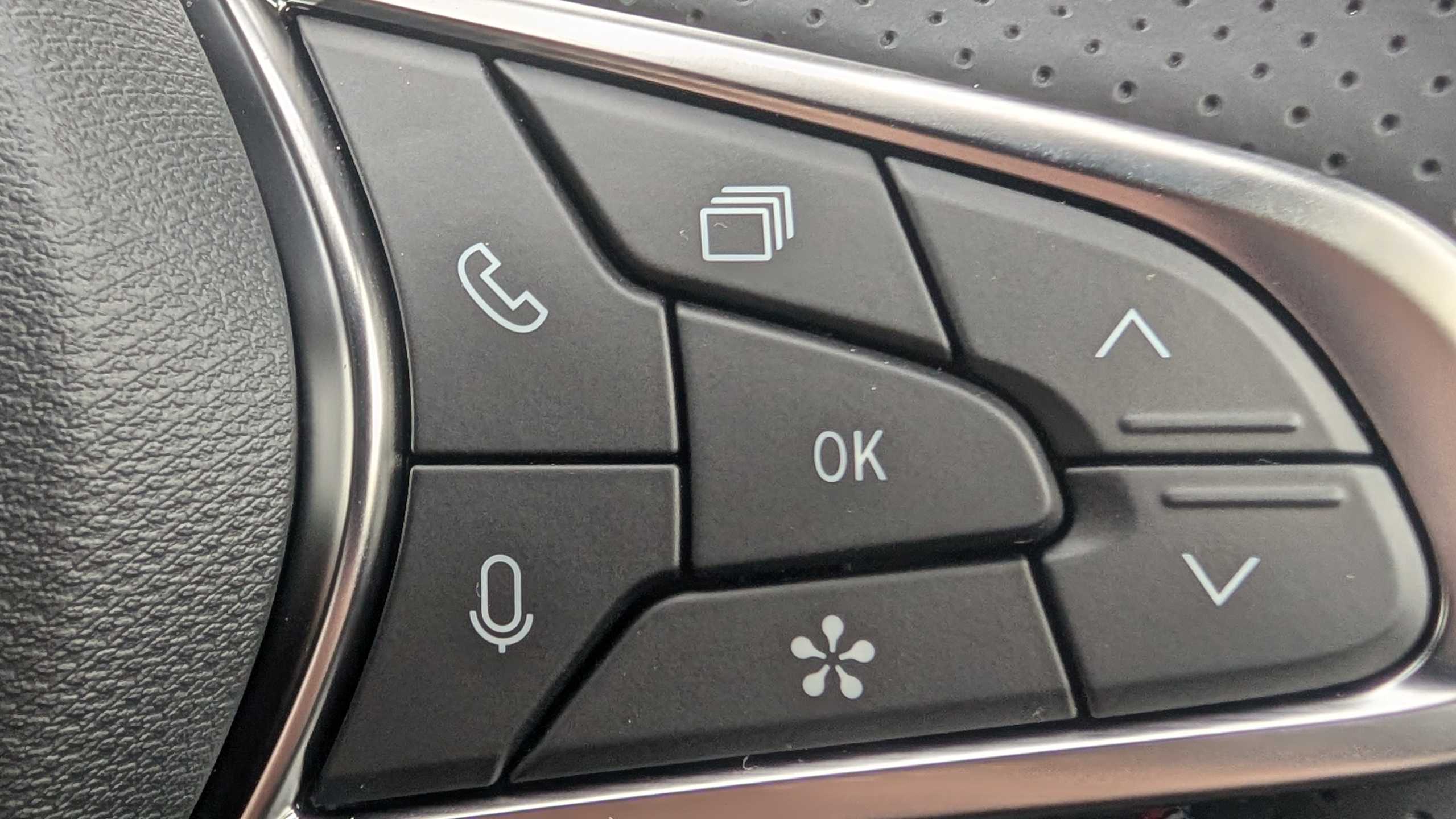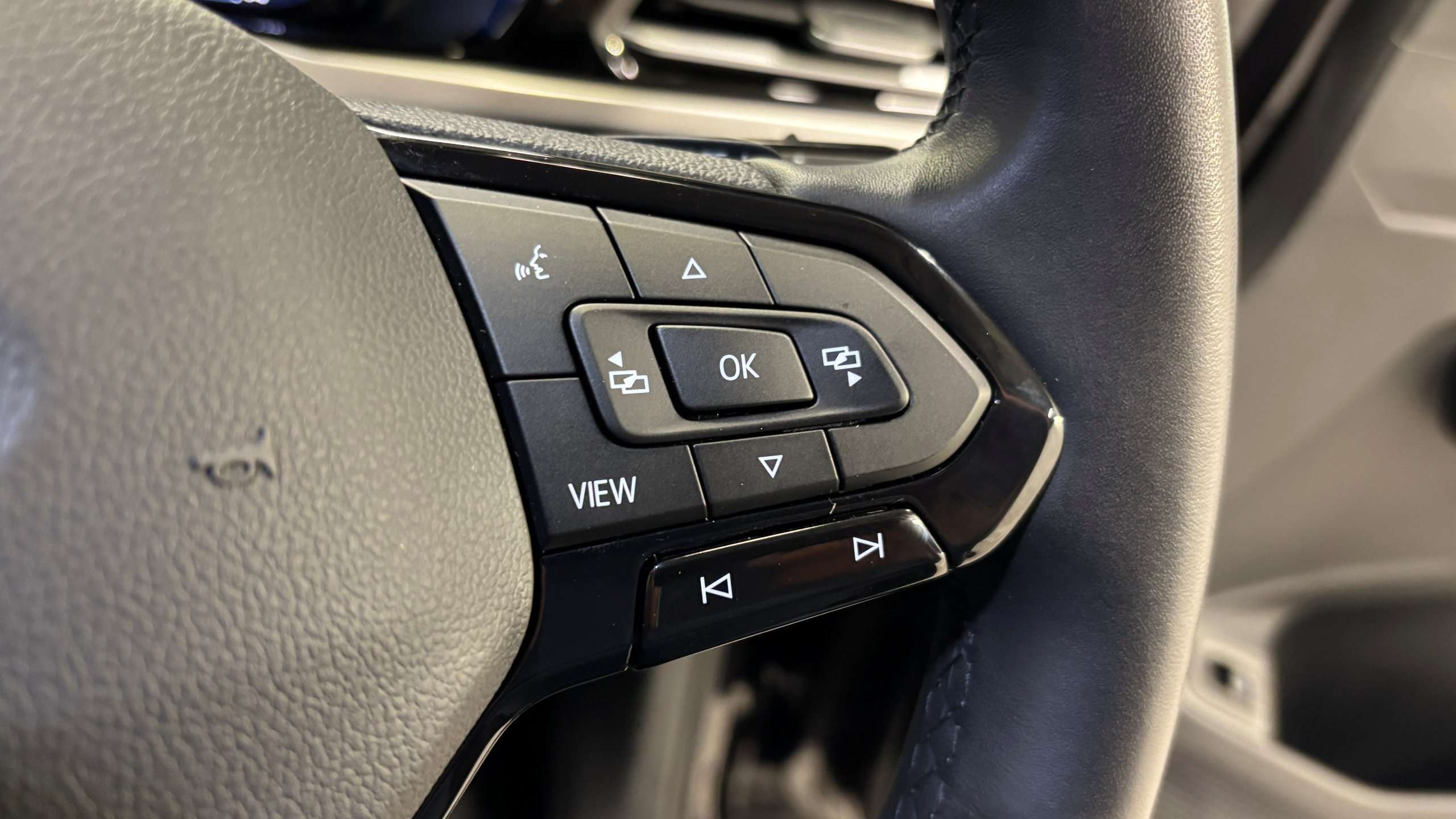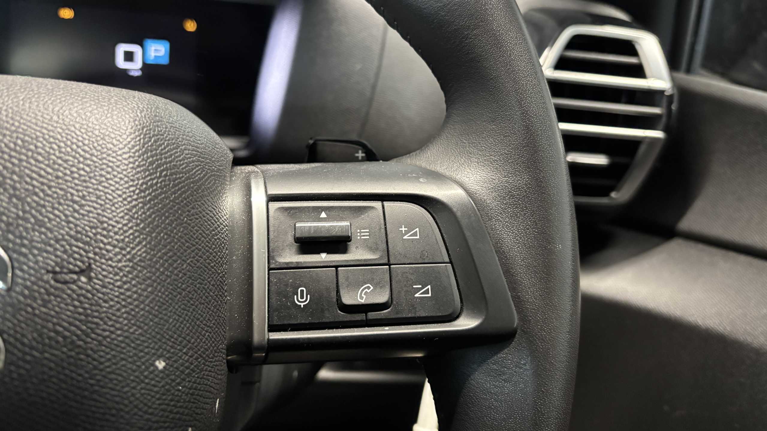 "Audio controls mounted on steering wheel"