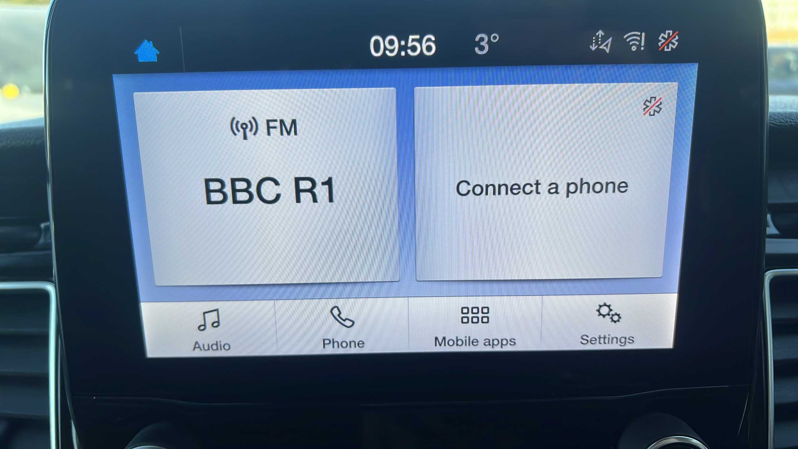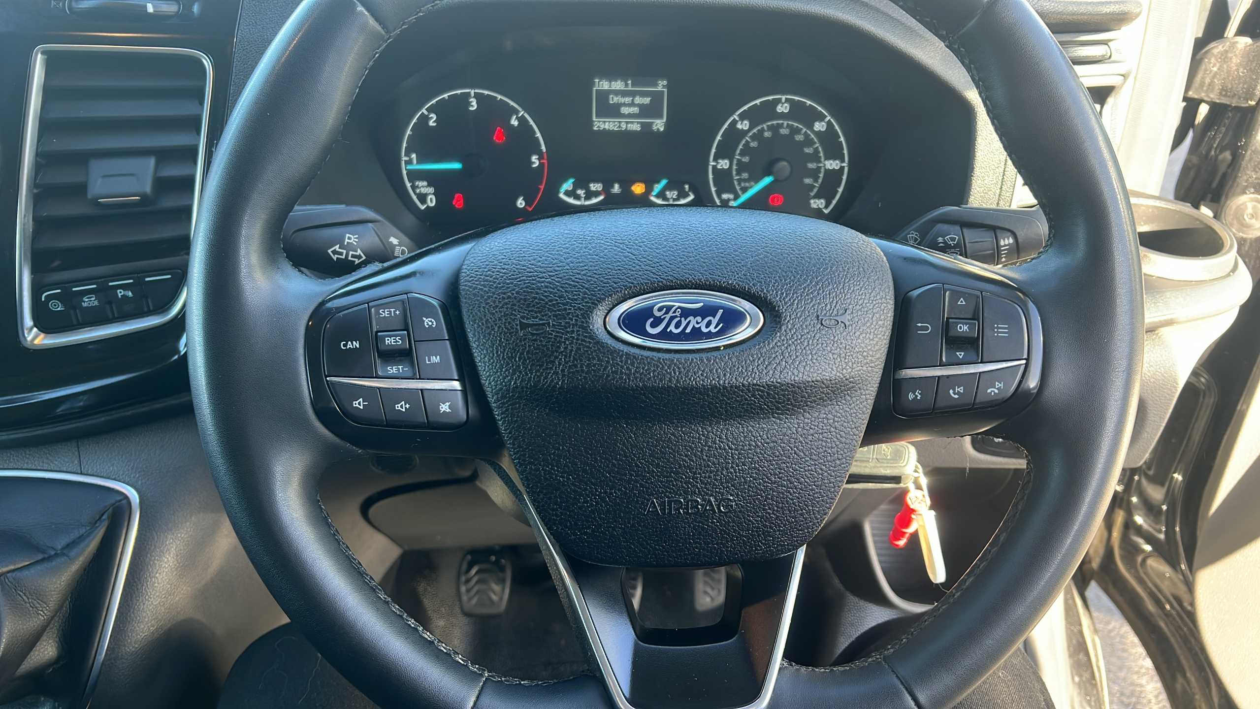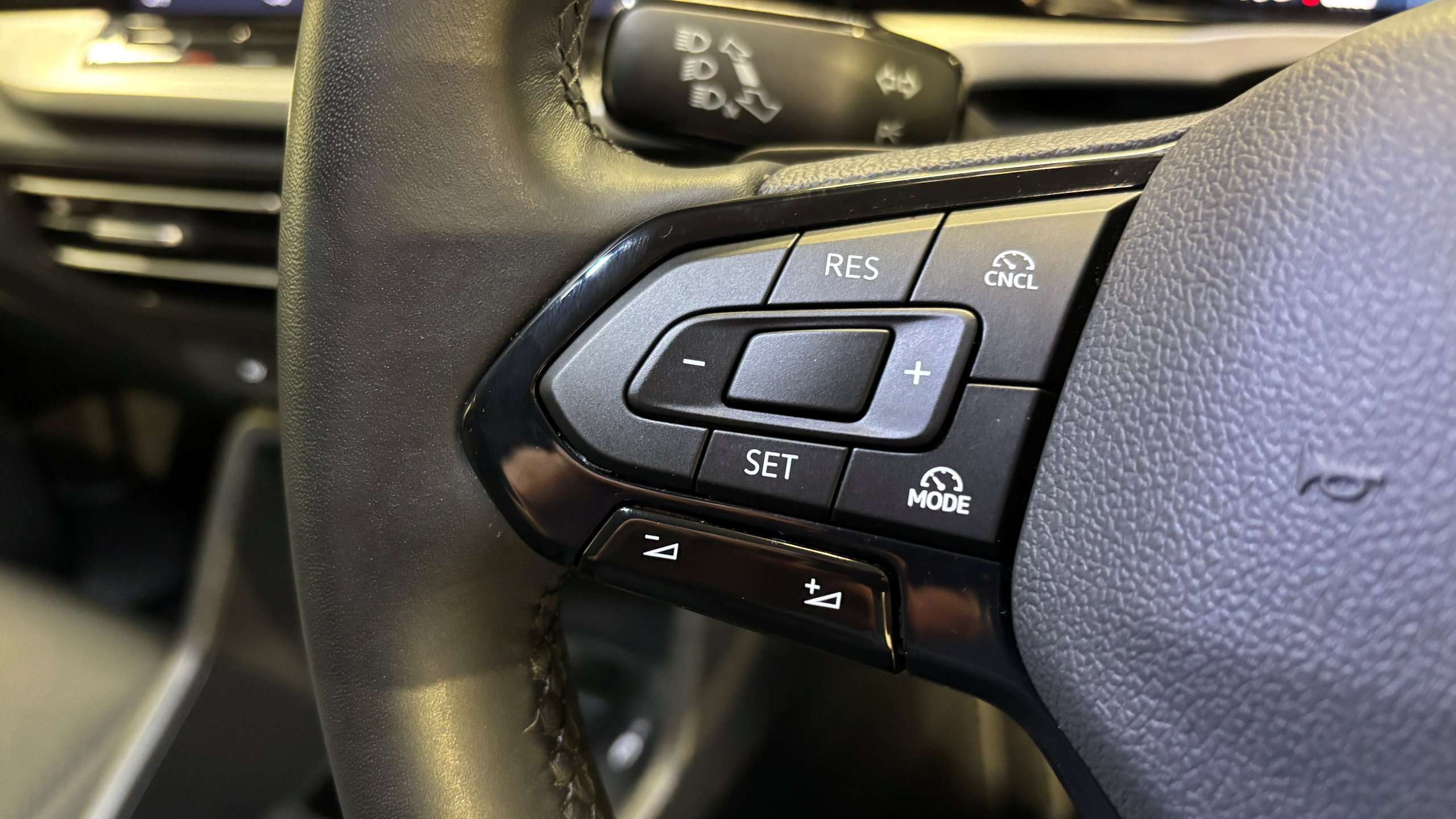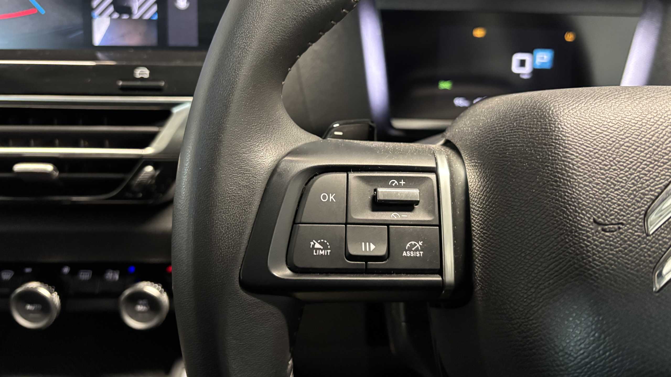 "Audio controls mounted on steering wheel"