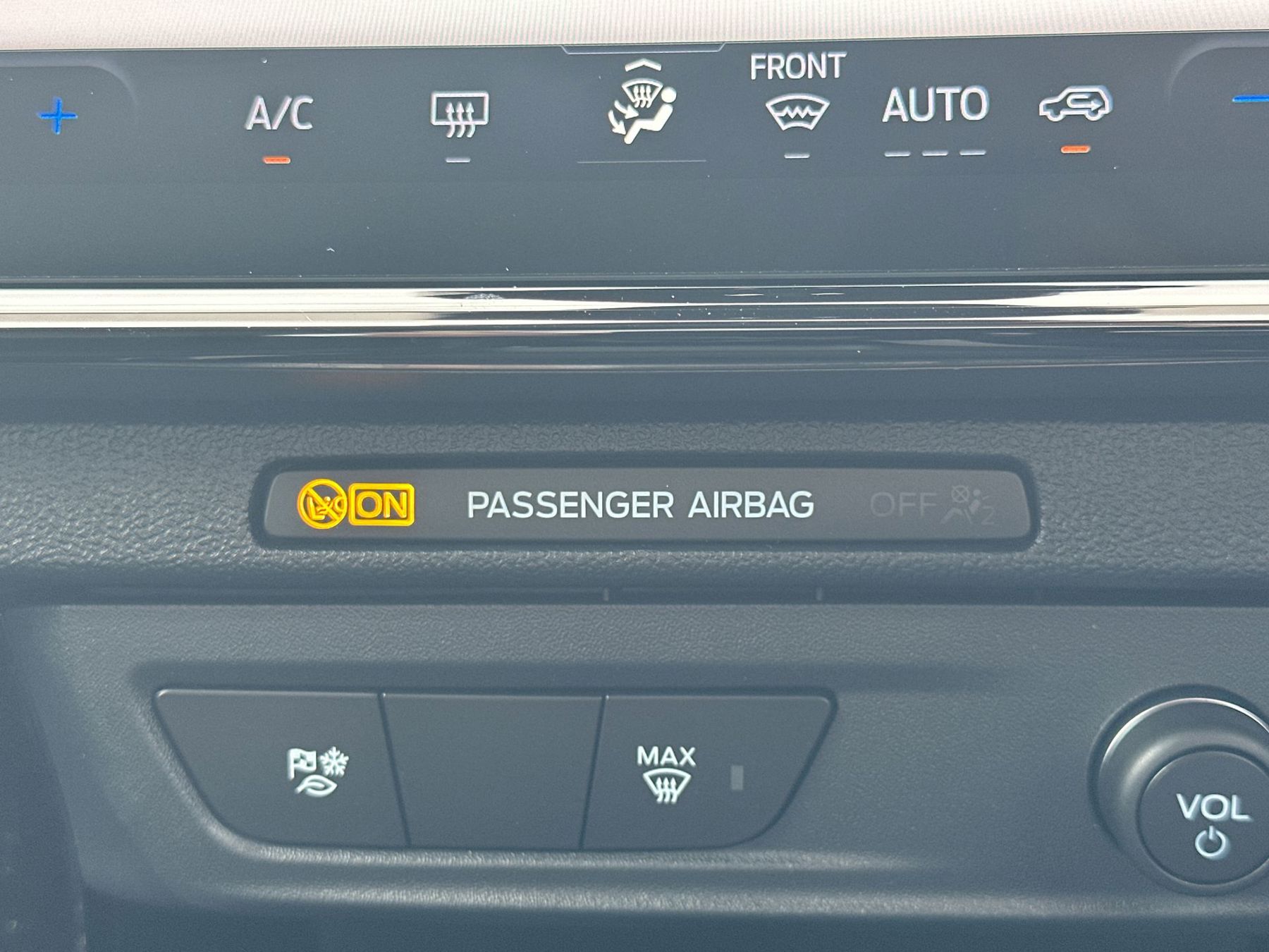"Front outer passenger airbag with deactivation switch",