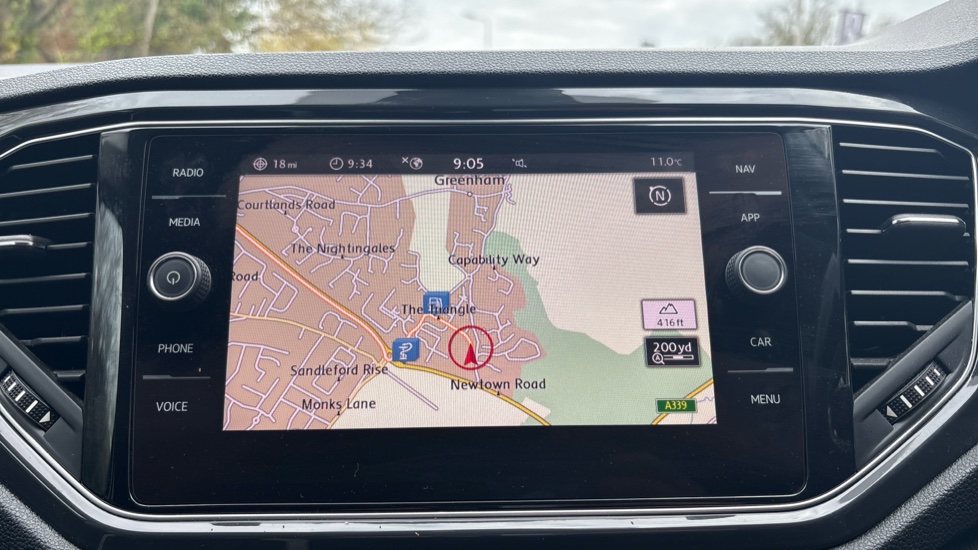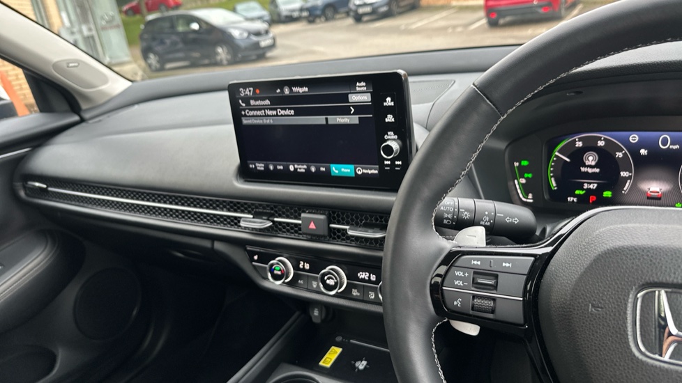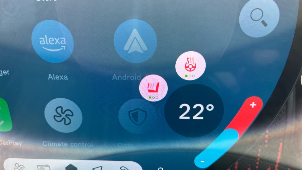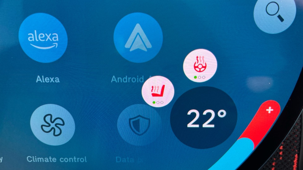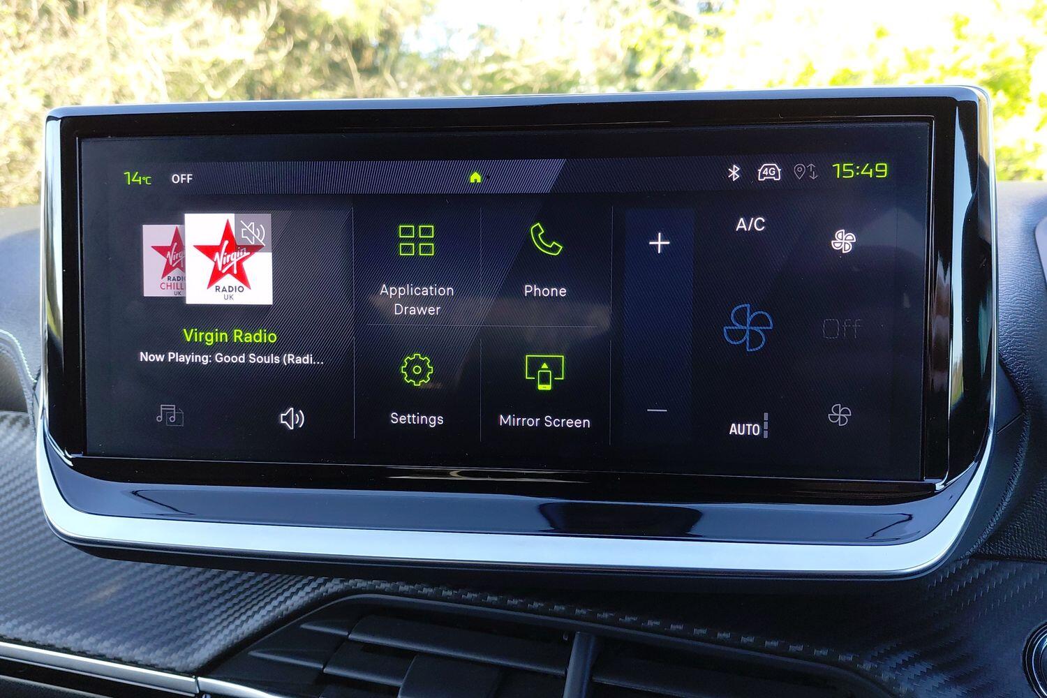"Media system with navigation, 12.9\" touchscreen display, voice control, 7 speakers, DAB, steering wheel mounted controls",
