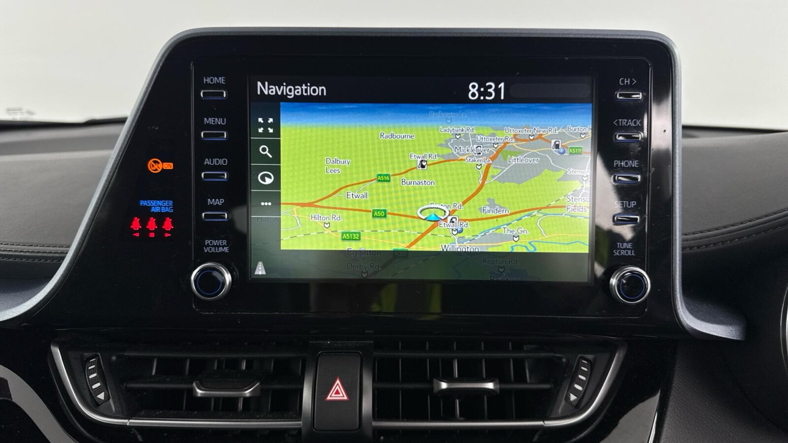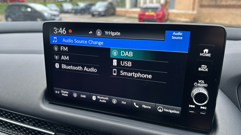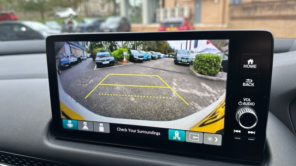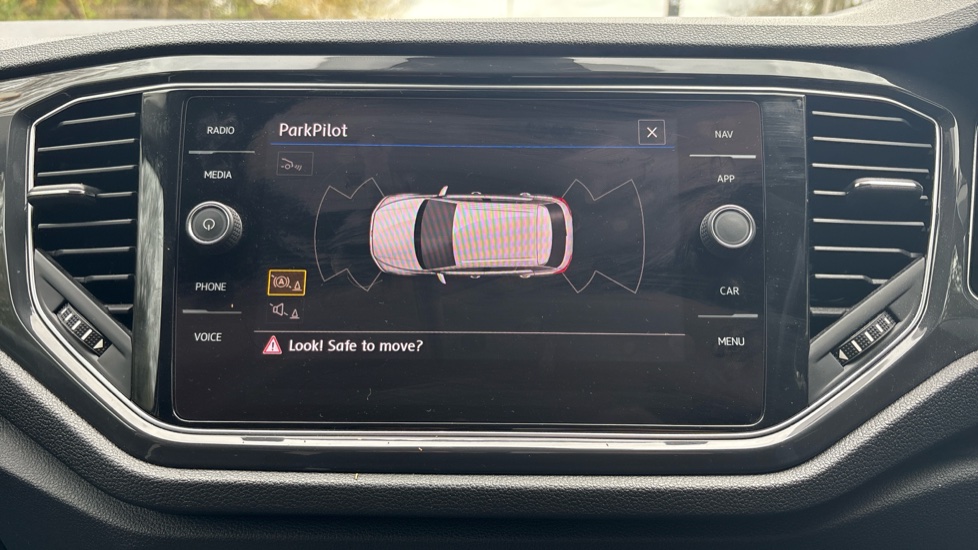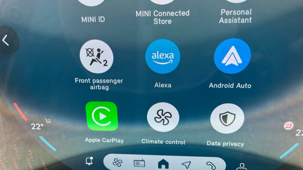 "Media system with navigation, 12.9\" touchscreen display, voice control, 7 speakers, DAB, steering wheel mounted controls",