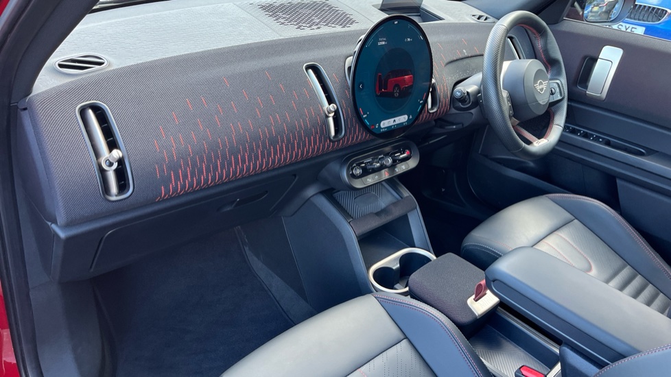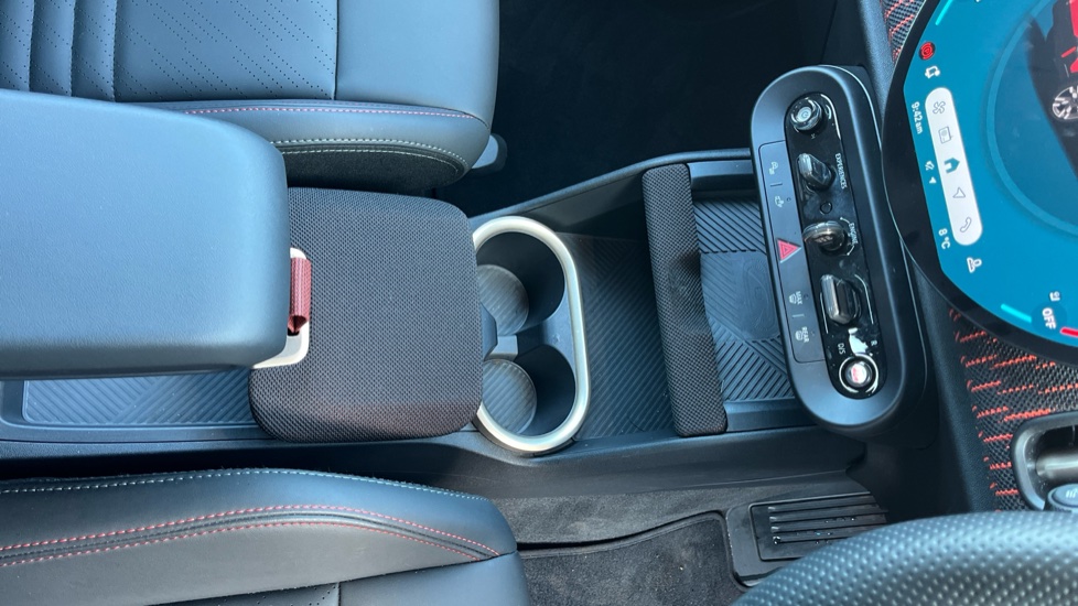 "PVC/Cloth upholstery with copper stitching + Sport seats",