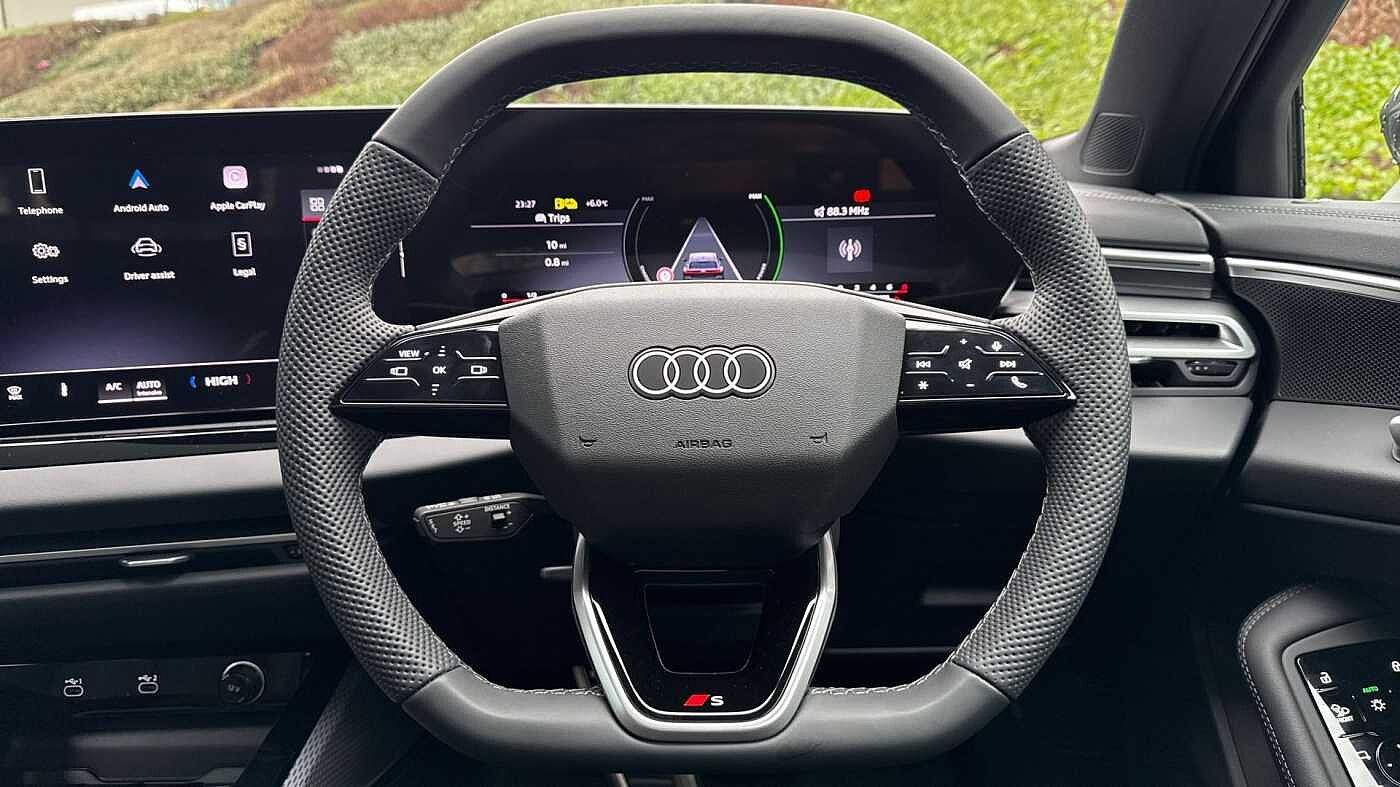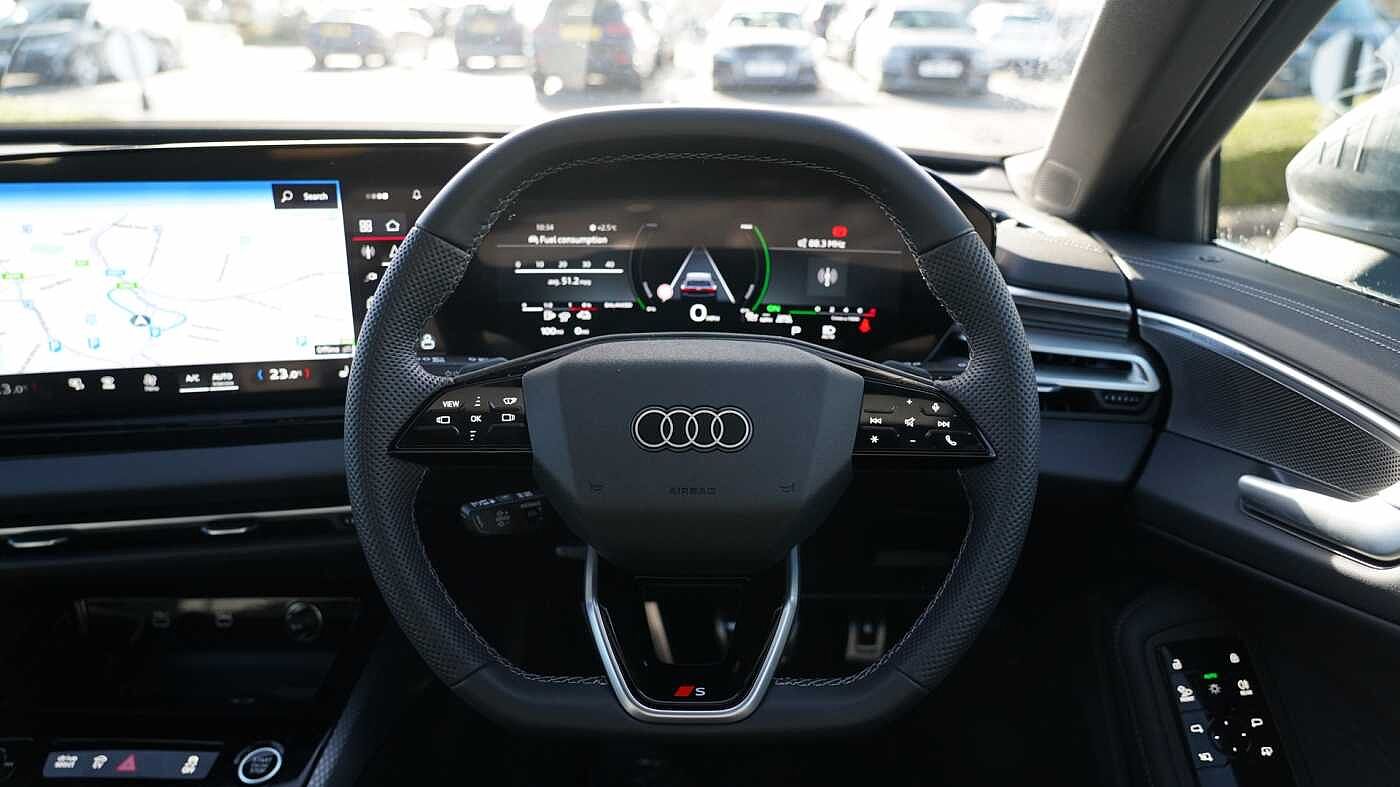 "features": "Adaptive cruise control, Attention and drowsiness detection with driver observation, Audi application store, Audi assistant, Audi connect emergency call and service, Audi drive select, Audi virtual cockpit plus with 11.9\" OLED colour display, Automatic start/stop system with coasting functionality, Camera based traffic sign recognition, Convenience key, Intersection assist, Lane departure warning, MMI navigation plus with high resolution 14.5\" OLED touchscreen colour display, Park assist plus, Parking system plus with 360 display, Progressive steering with servotronic, Rear view camera, Side assist and exit warning, rear cross-traffic assist and rear turn assist, Smartphone interface, Swerve assist and turn assist, Traffic sign based speed limiter, Household plug type G, Hybrid propulsion system, Industrial connector CEE 32A, 230V, long and straight for the e-tron charging system, Mode 3 type 2 AC charging cable 22kW, Sports suspension lowered by 20mm, DAB digital radio reception, Smartphone compartment with wireless charging, Aluminium roof rails, Aluminium window trims, Auto dimming rear view mirror, Body colour door handles, Body colour door mirrors, Door mirrors - electrically adjustable, heated, folding and auto dimming on both sides, Front and rear electric windows, Front door sill trims with aluminium inlays, illuminated with 'S' logo, High beam assist, LED headlights Plus incl. digital daytime running lights, turning light, all-weather light, motorway light, manouevring light and intersection light, LED rear lights pro incl. dynamic rear indicators and illuminated light strip with animated coming and leaving home function, LED third brake light, Privacy glass, Rear and side windows with heat insulating glass, Rear side wing doors, Rear wash/wipe, S Line badges on the front wings, S line bumpers, radiator grille and diffuser in phantom black and diffuser insert in matt anthracite, White rhombus logo projection light in exterior mirrors, Windscreen with acoustic glazing, 3 rear headrests, 3 seat rear bench, 3 spoke leather steering wheel with multi-function buttons with touch control, flattened on top and bottom, with S badging and contrast stitching, 3-zone automatic climate control, 40:20:40 split folding rear seat bench with centre armrest and cup holders, Auxiliary air conditioning, Comfort front centre armrest, Front and rear floor mats, Front sport seats with integrated headrest and S embossed logo, Headlining in black cloth, i-Size child seat mounting on the front passenger side and outer rear seats, i-Size and top tether on the outer rear seats, Increased charging capacity for USB ports 2X100 Watts in rear, 2X60 Watts in front, Luggage compartment lid, electrically opening and closing, Manual steering column height and depth adjustment, Single front passenger seat, Stainless steel pedals and footrest, Steering wheel grips in perforated leather and shift paddles, Ambient lighting package plus - A5, 3x3 point rear seat belts, Acoustic vehicle alerting system, Driver airbag, Electric child safety locks, First aid kit with warning triangle and vests, Front emergency brake assist, Front passenger airbag, Front passenger airbag deactivation, Front side airbags with head airbag system and front interaction airbag, Hill hold assist, Seat belt monitoring with rear seat occupant reminder, Tyre pressure loss indicator, Anti theft alarm, Anti-theft wheel bolts, Digital key, Keyless Go, Accent surfaces and control buttons in gloss black, Black dashboard with contrast stitching, Inlays in matt brushed aluminium with linear embossing, anthracite, Softwrap in leatherette with contrast stitching, Upper and lower interior elements in leatherette, Tyre repair kit, ",