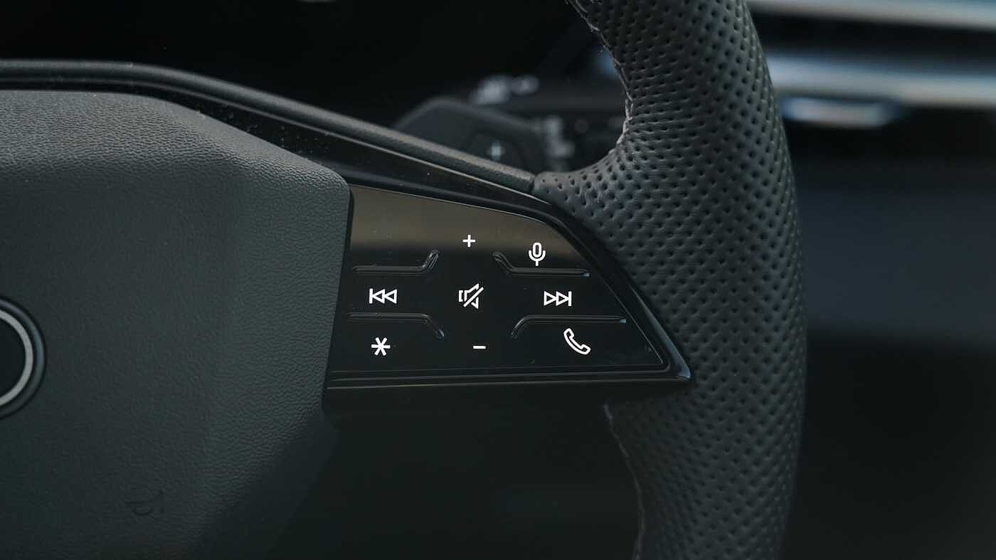 "3 Spoke tailored steering wheel with chrome trim",