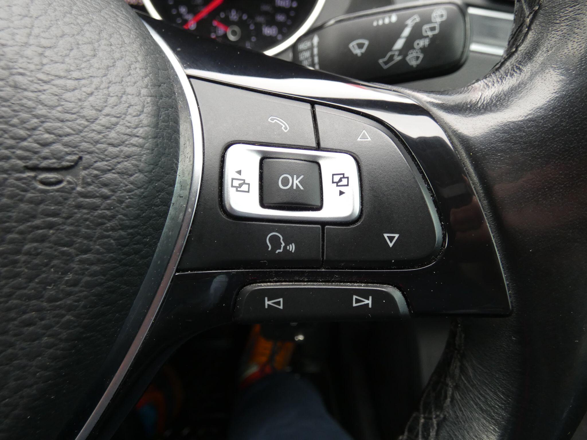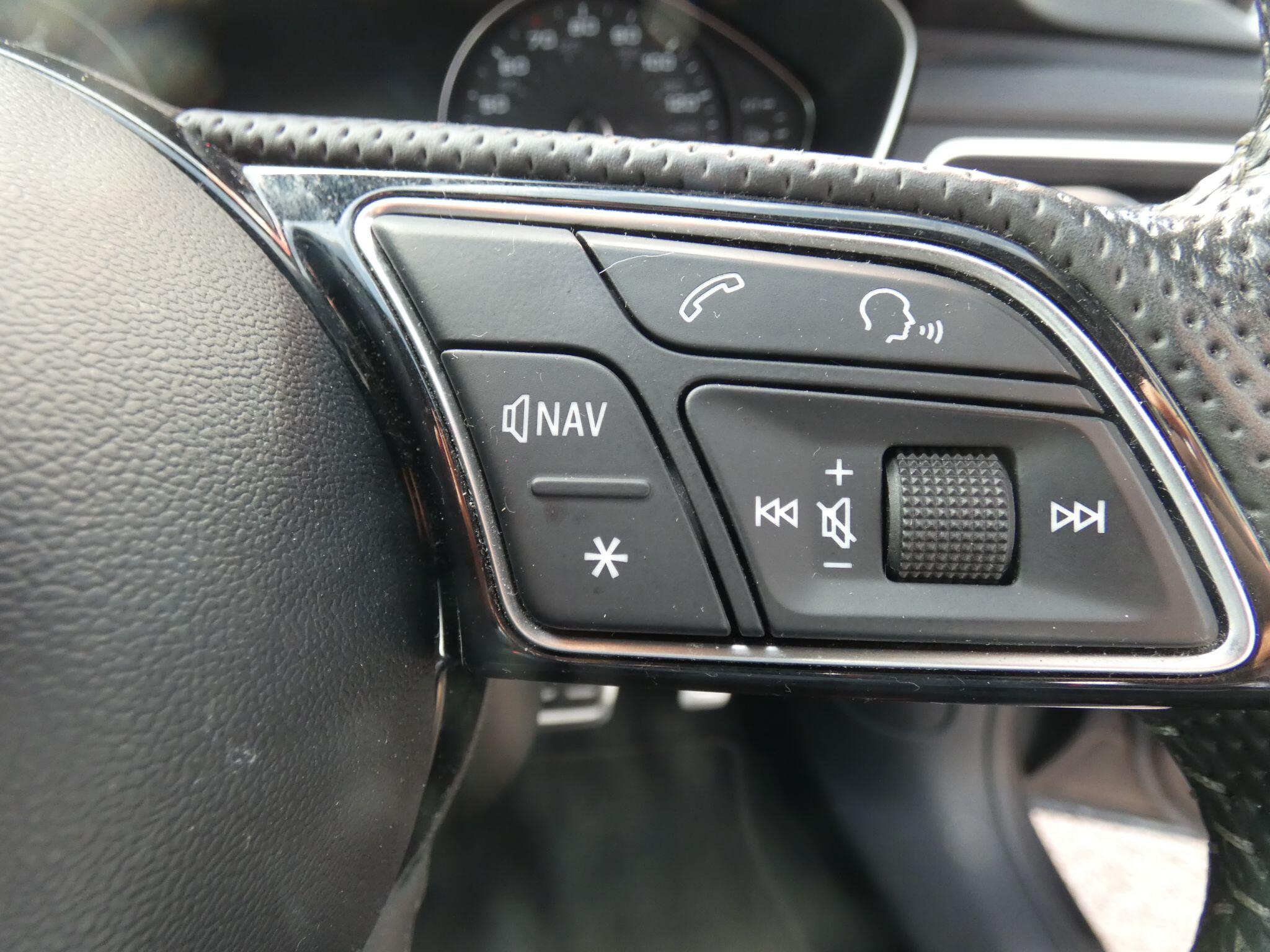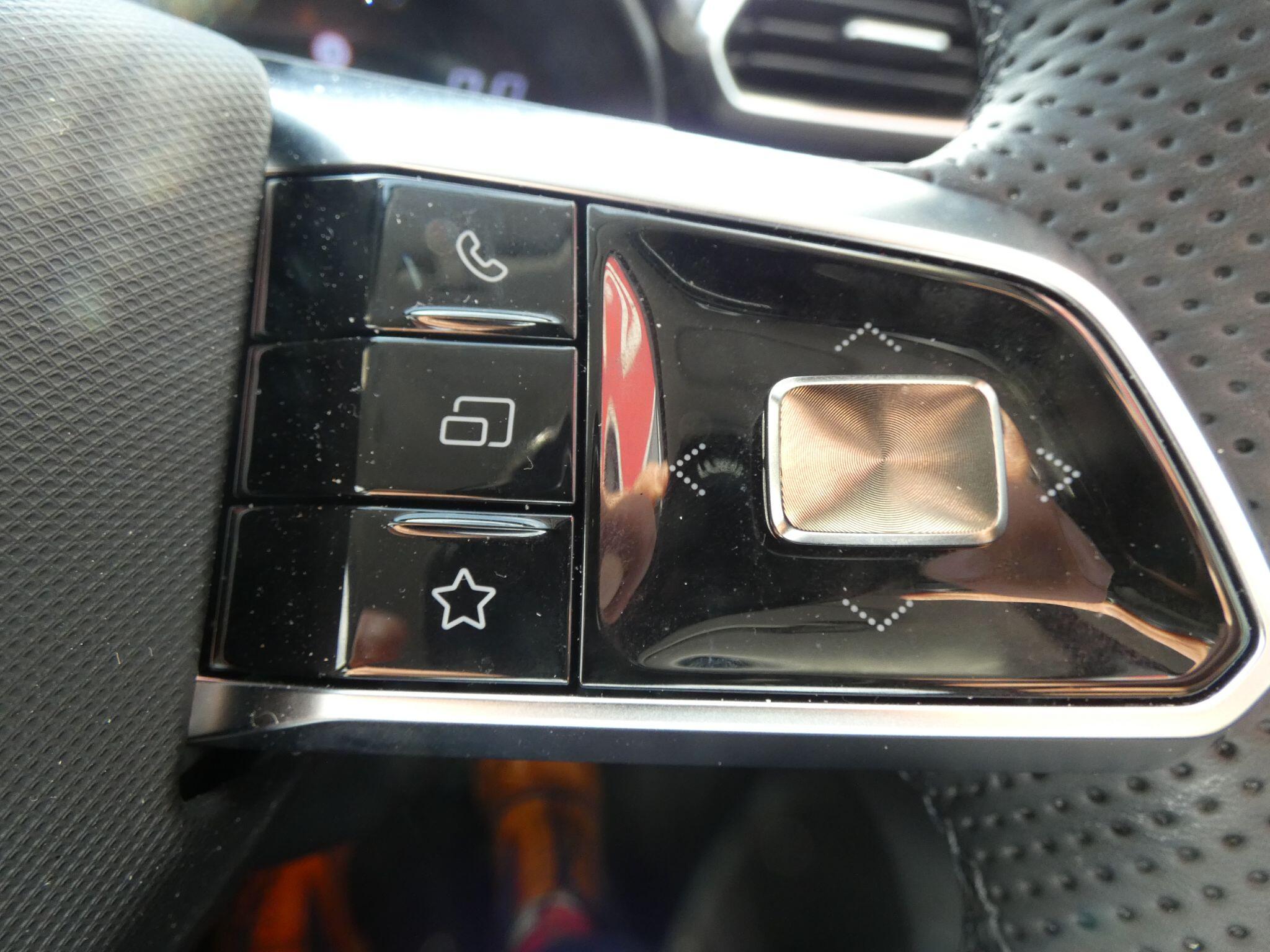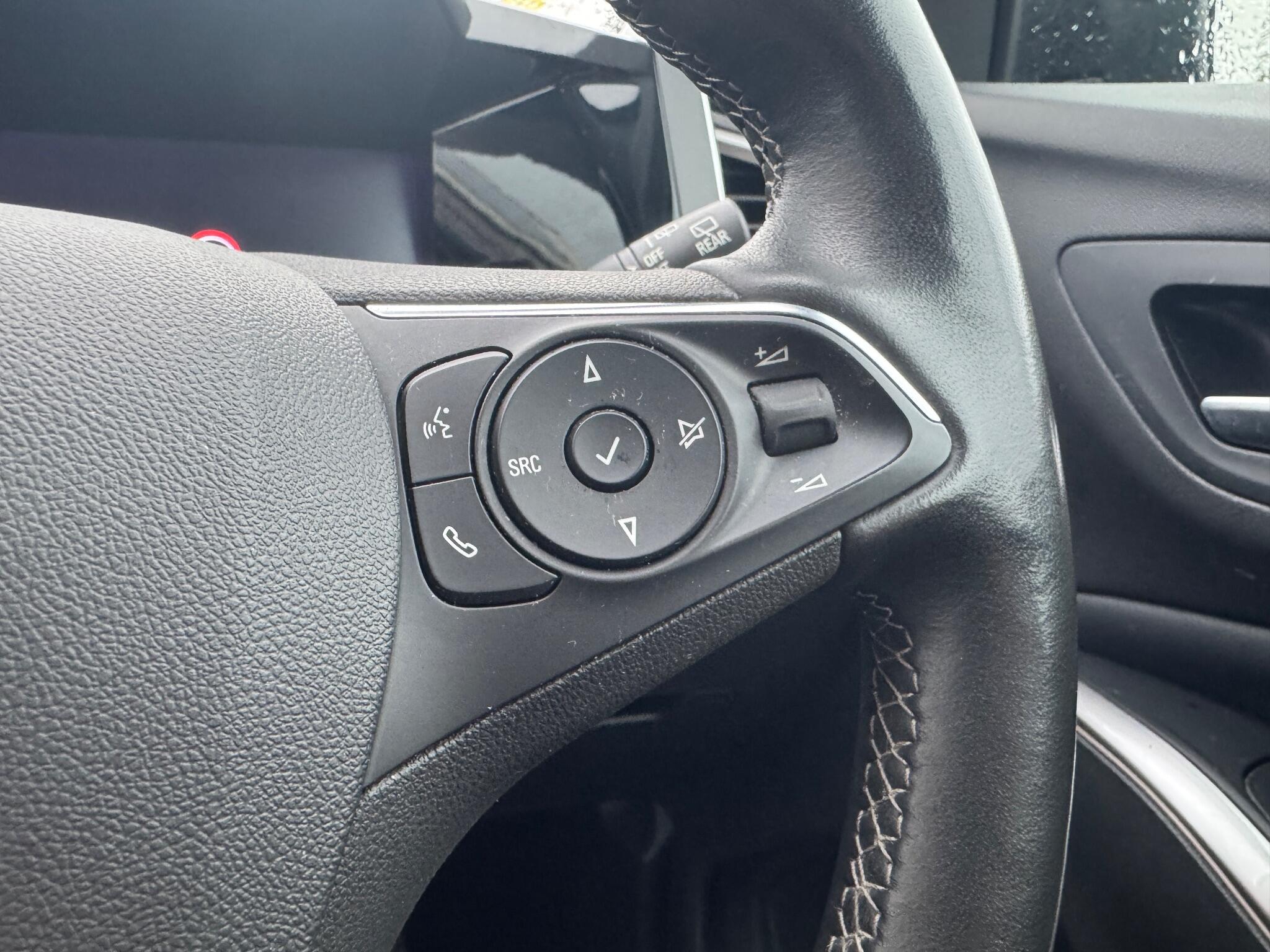 "Audio controls mounted on steering wheel",