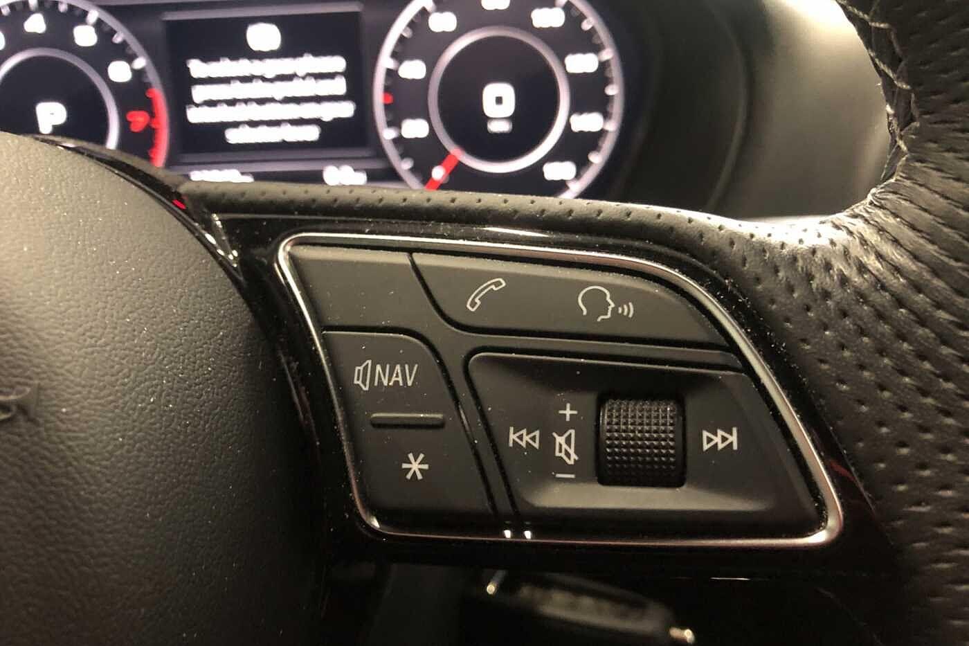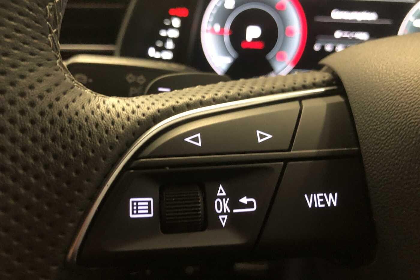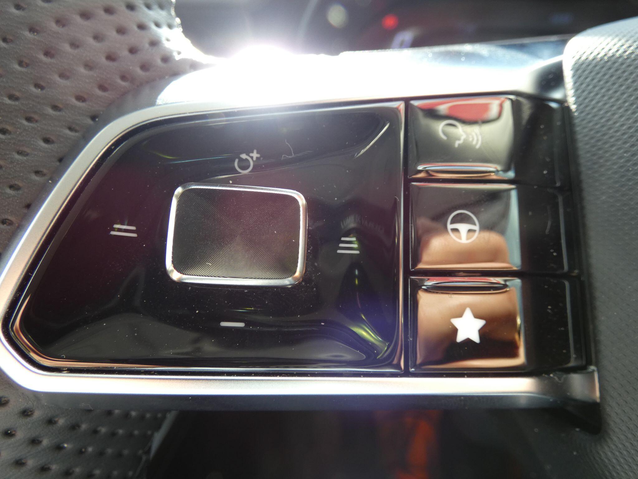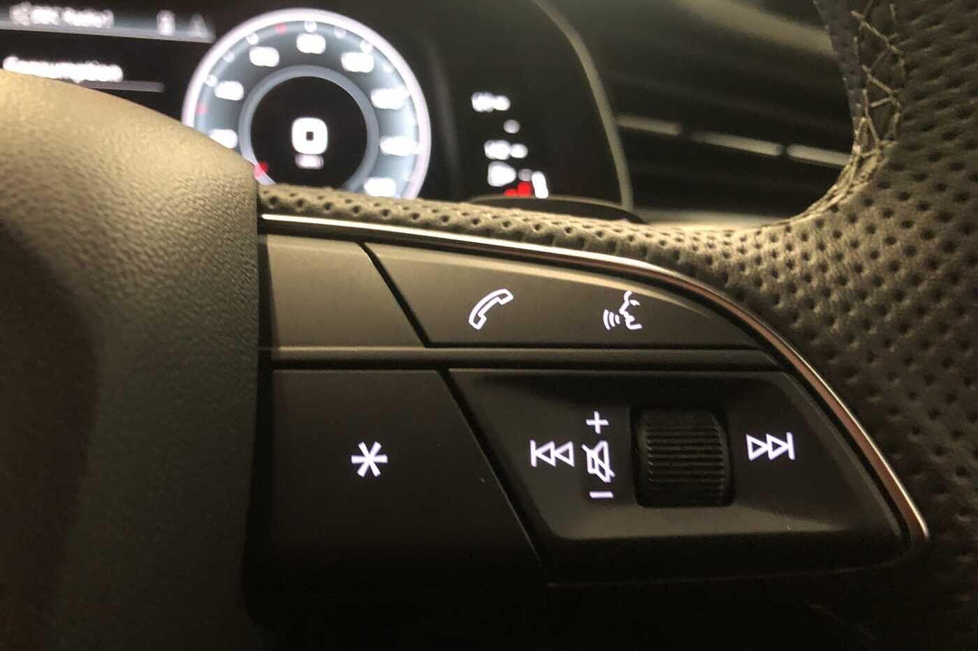 "Audio controls mounted on steering wheel",