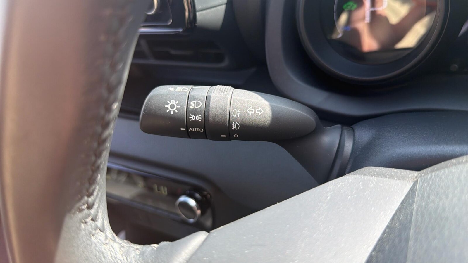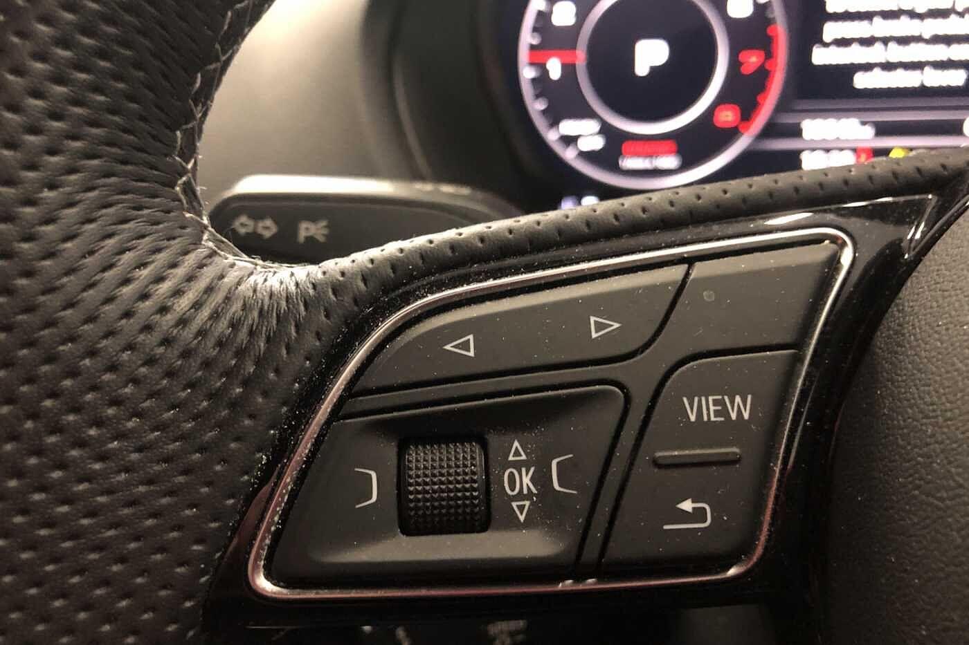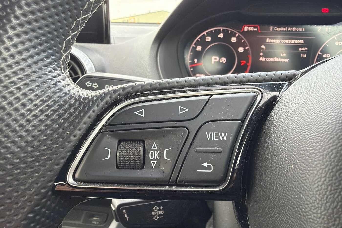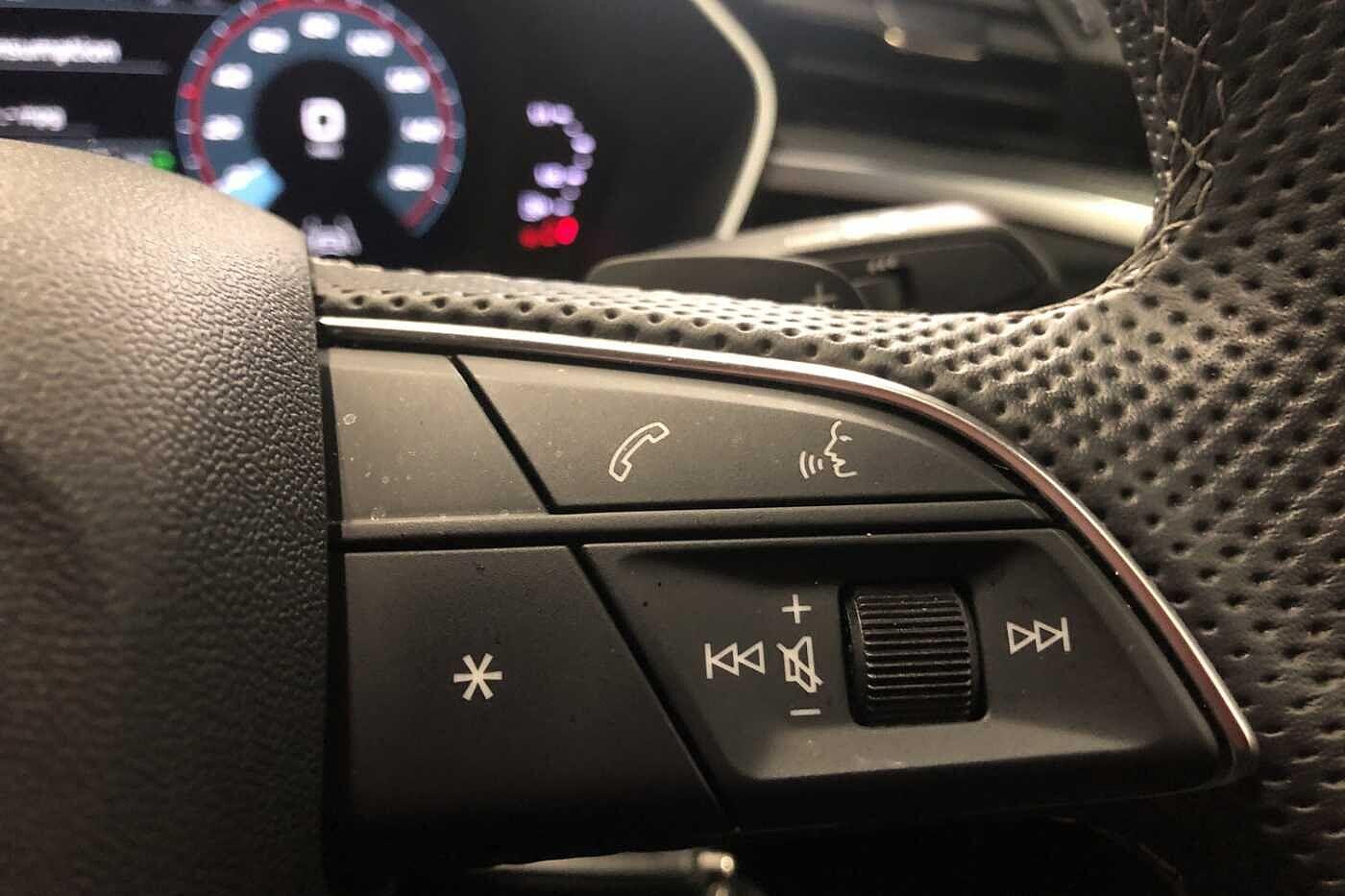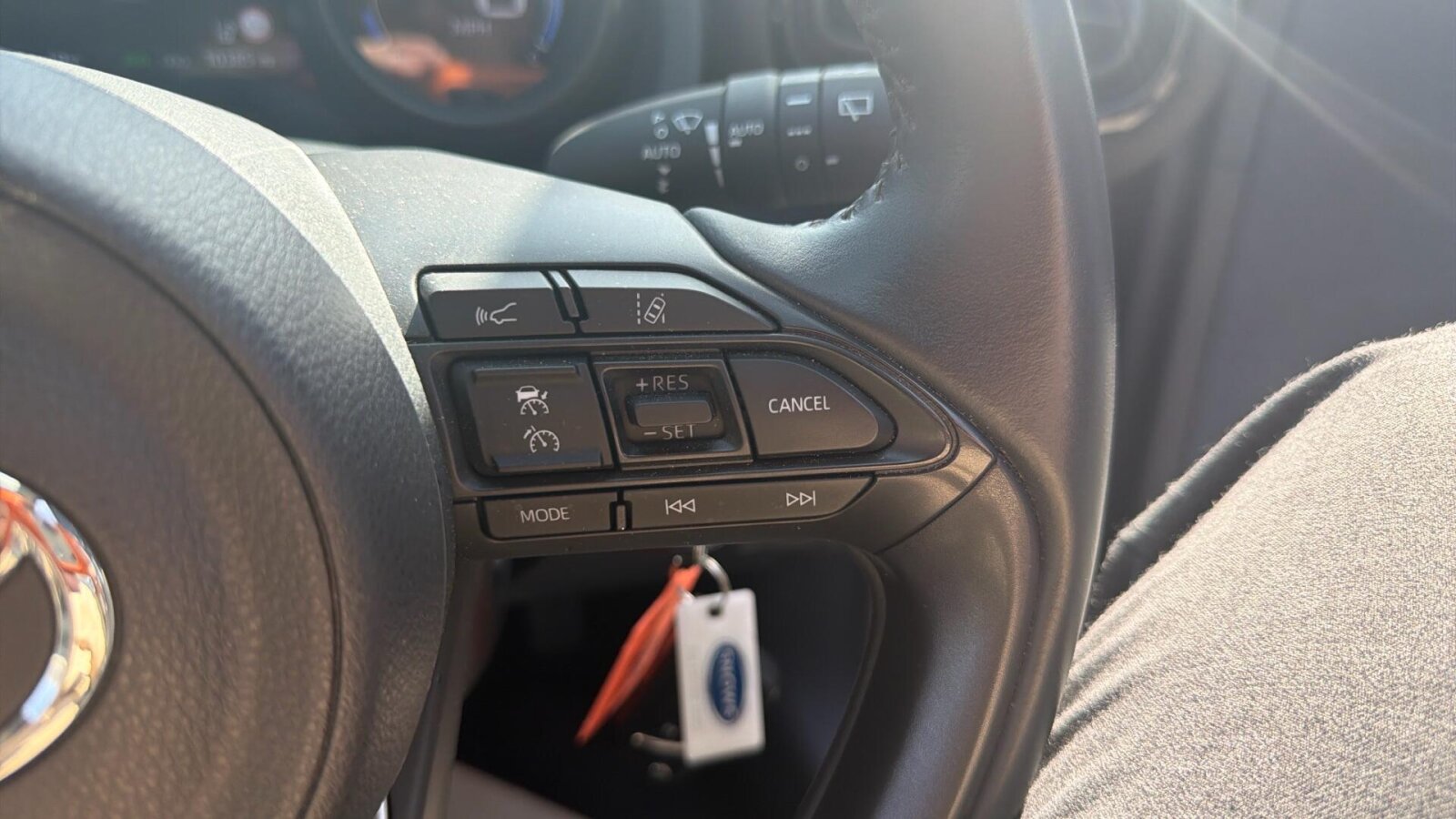 "Audio controls mounted on steering wheel",
