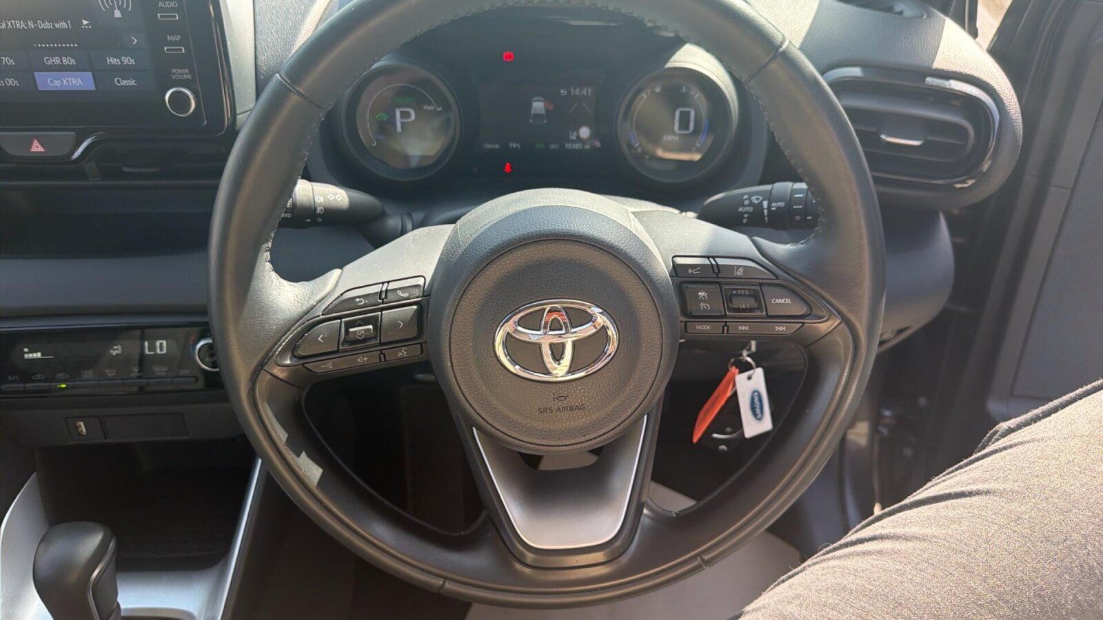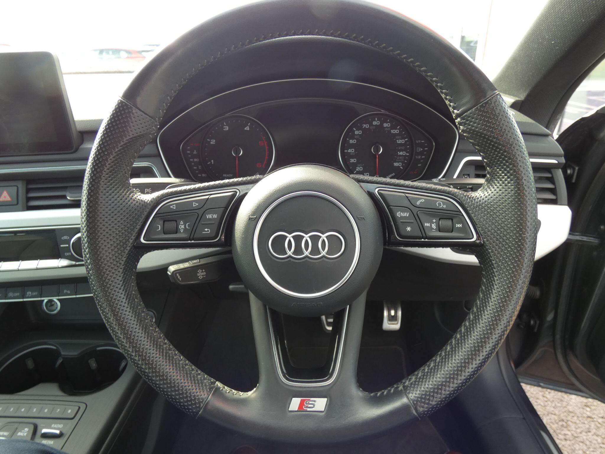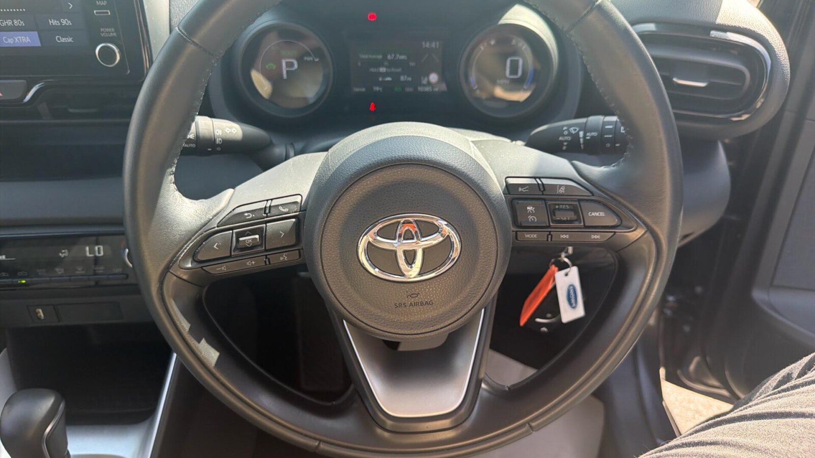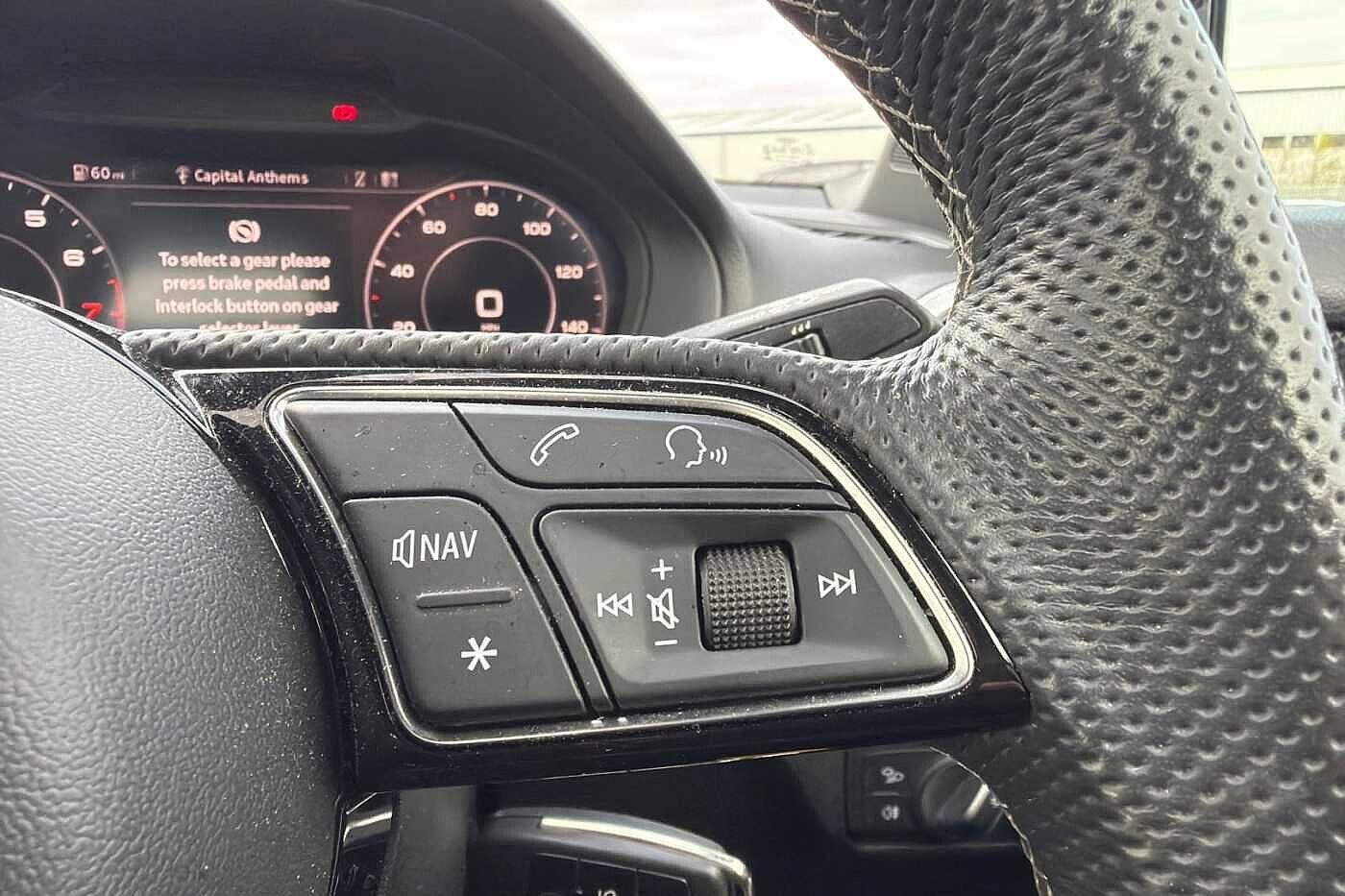 "Audio controls mounted on steering wheel",