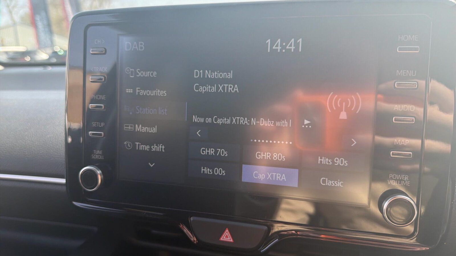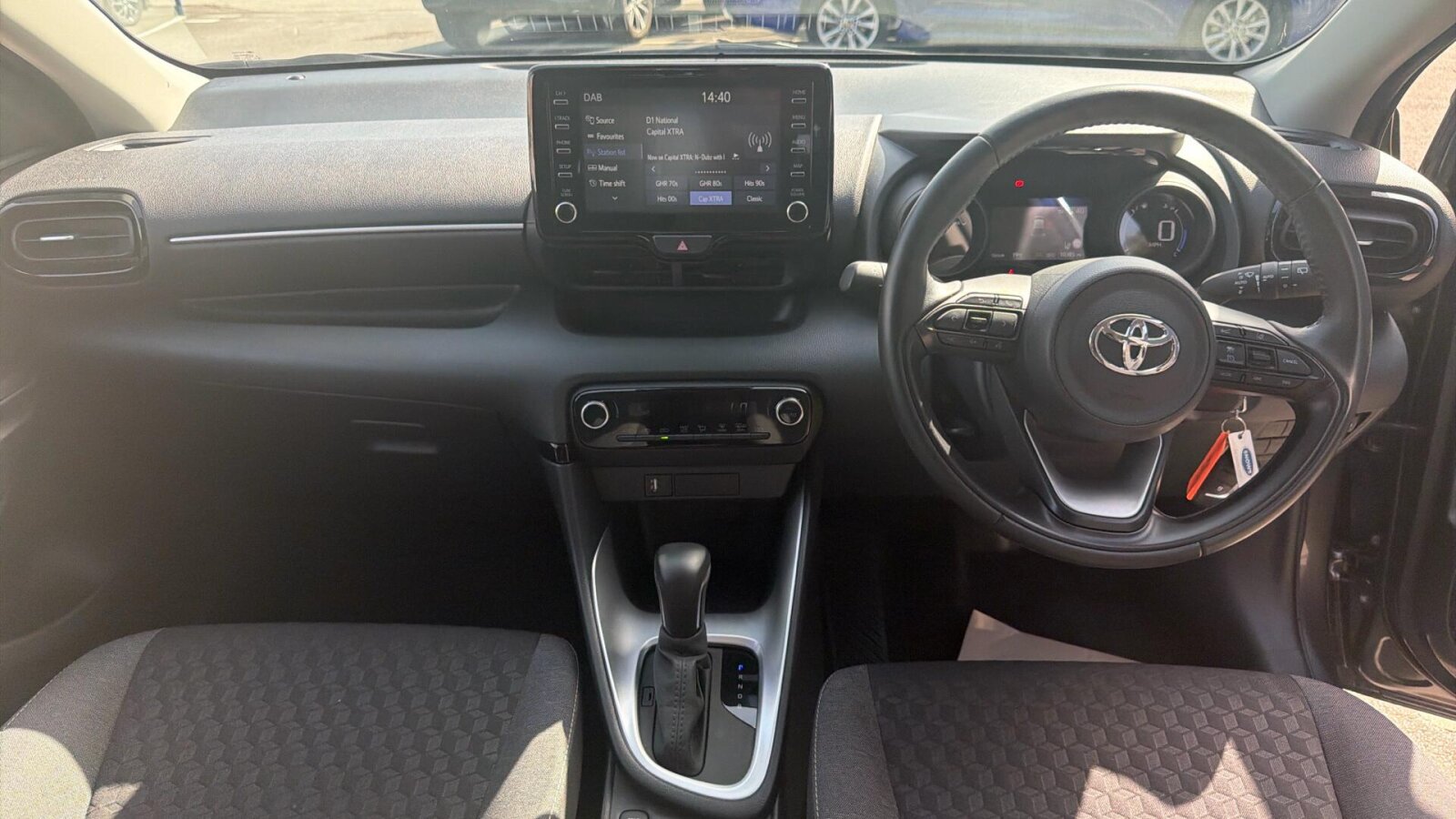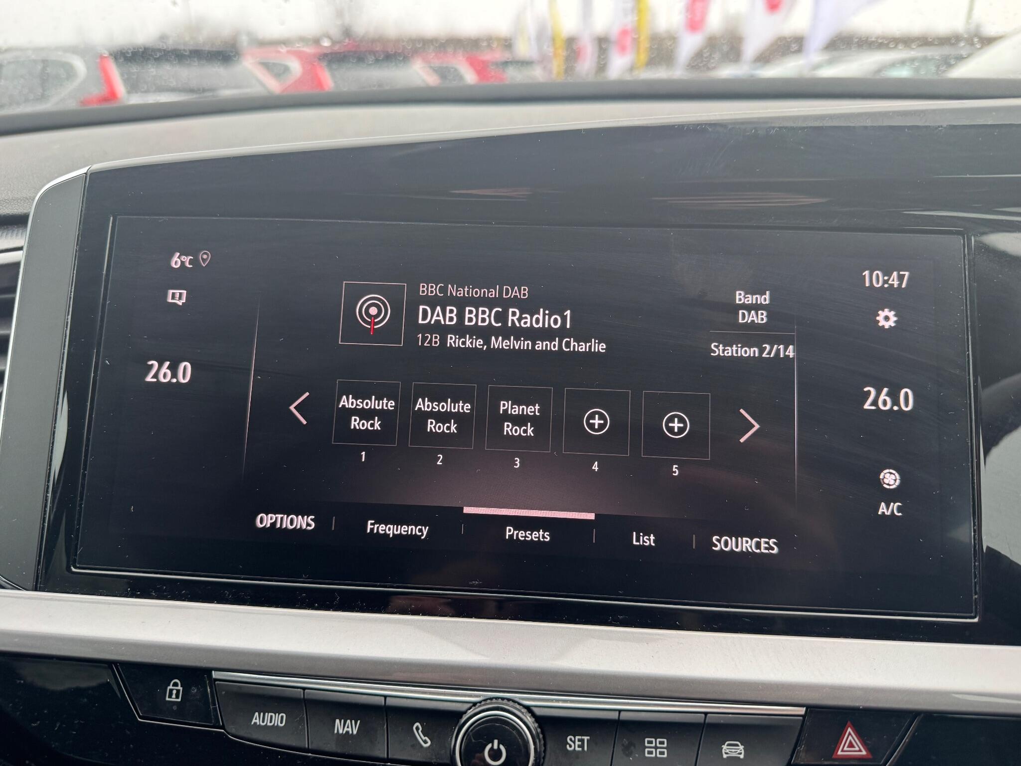 "Central fascia display with digital clock, outside air temperature and audio information",