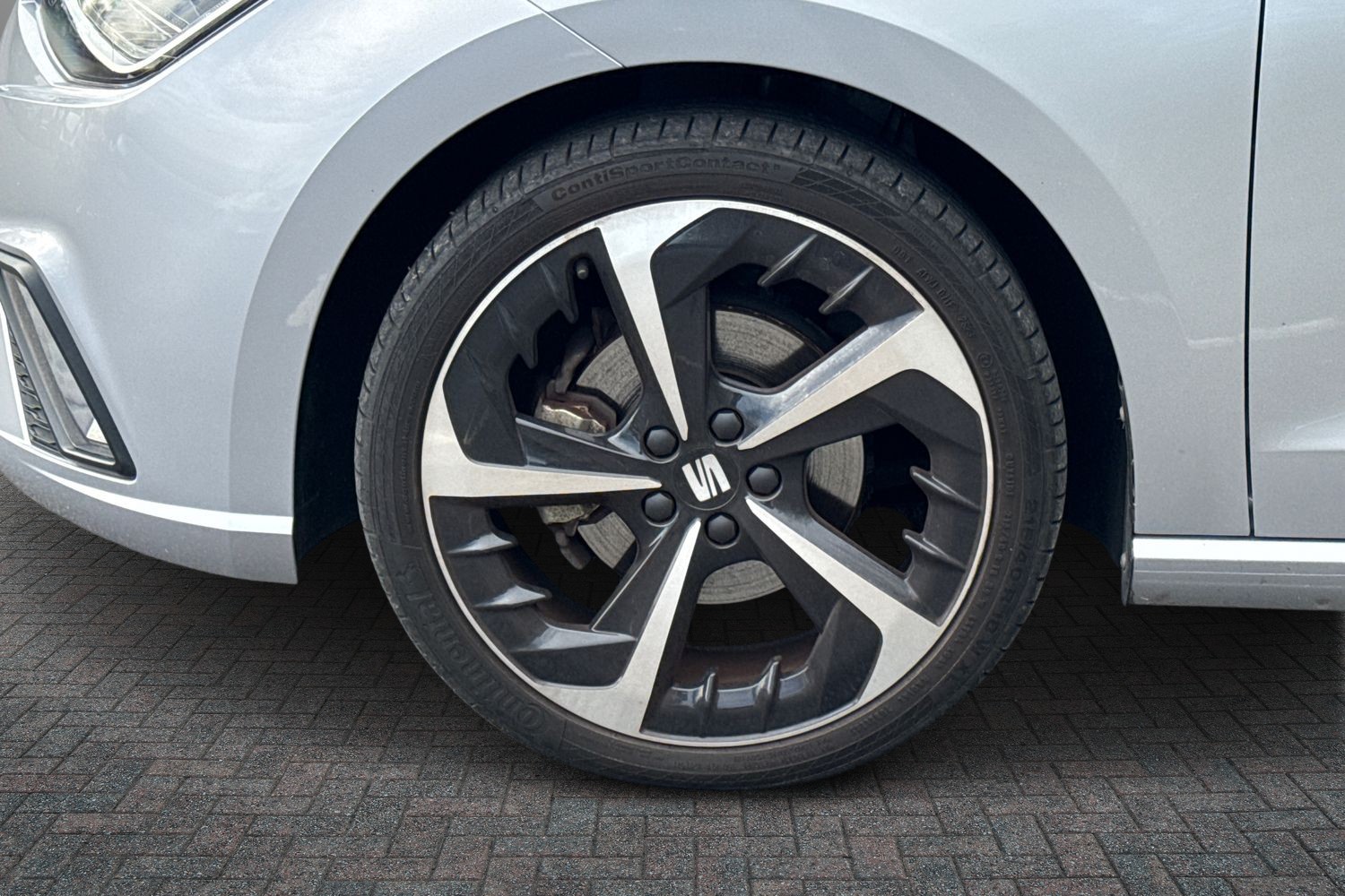 "19\" 5 arm trapezoid design alloy wheels in matt grey with diamond cut finish"