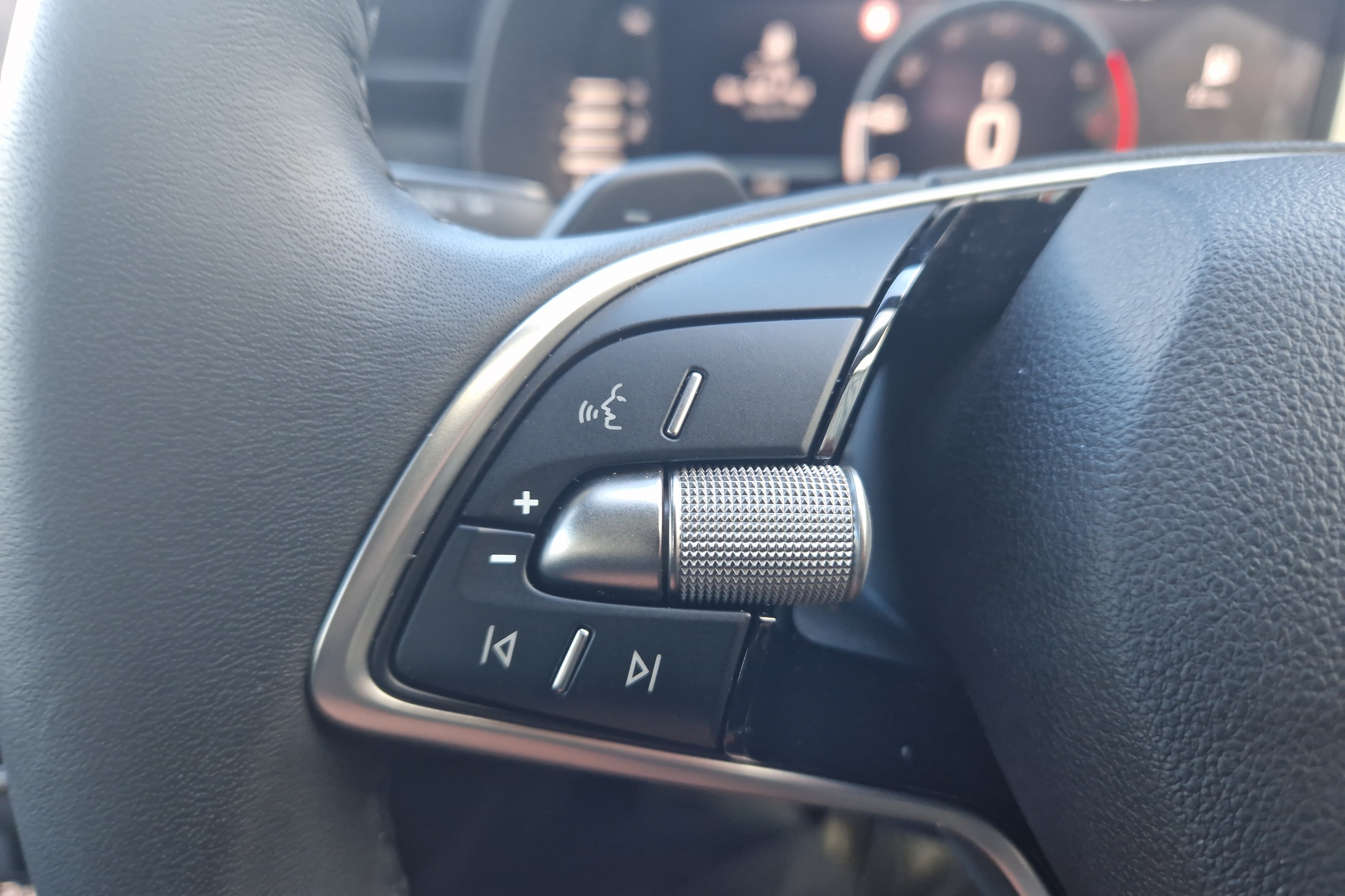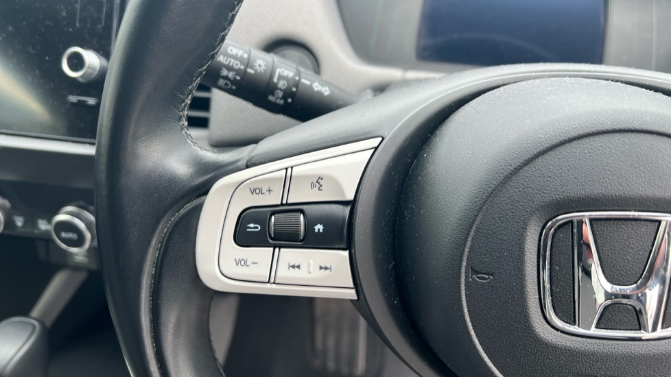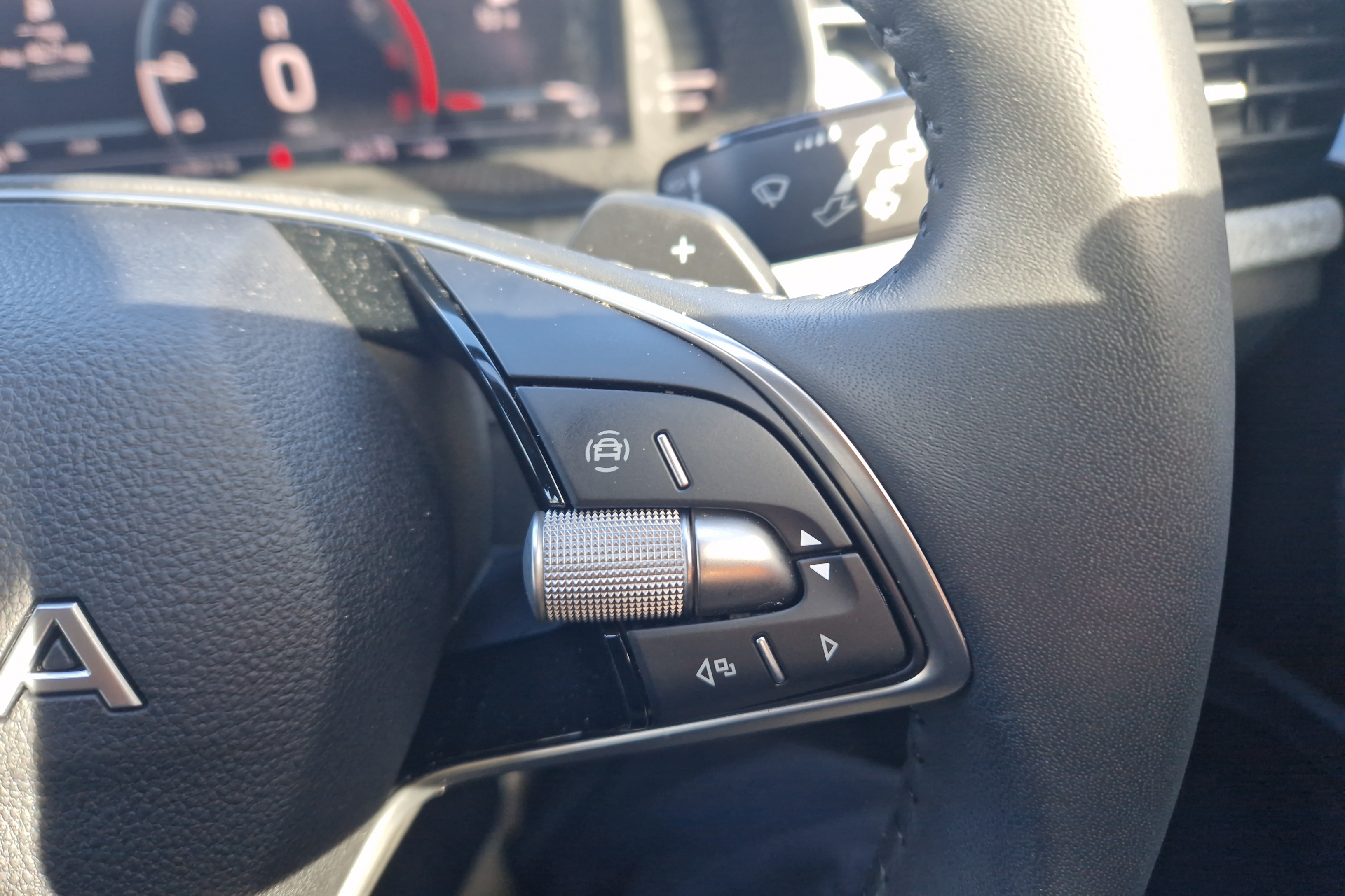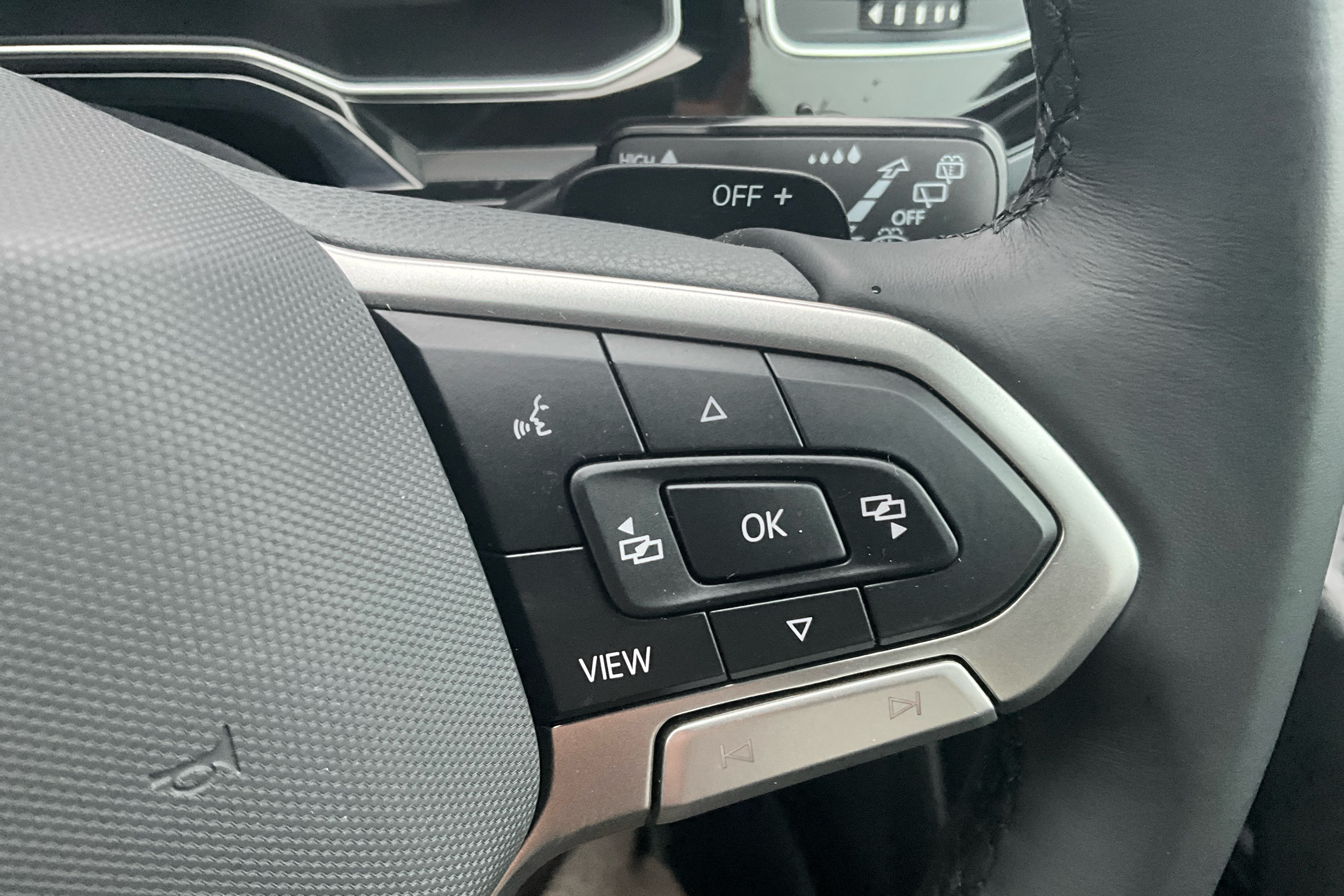 "Leather wrapped multifunction steering wheel",