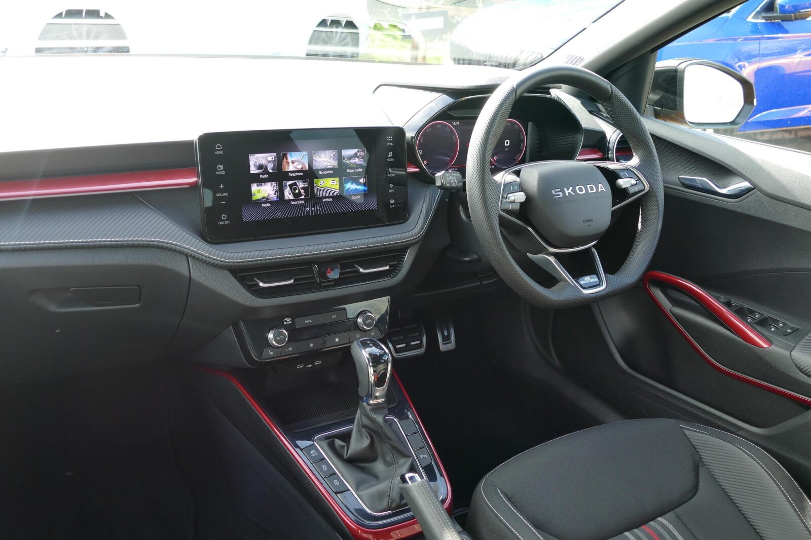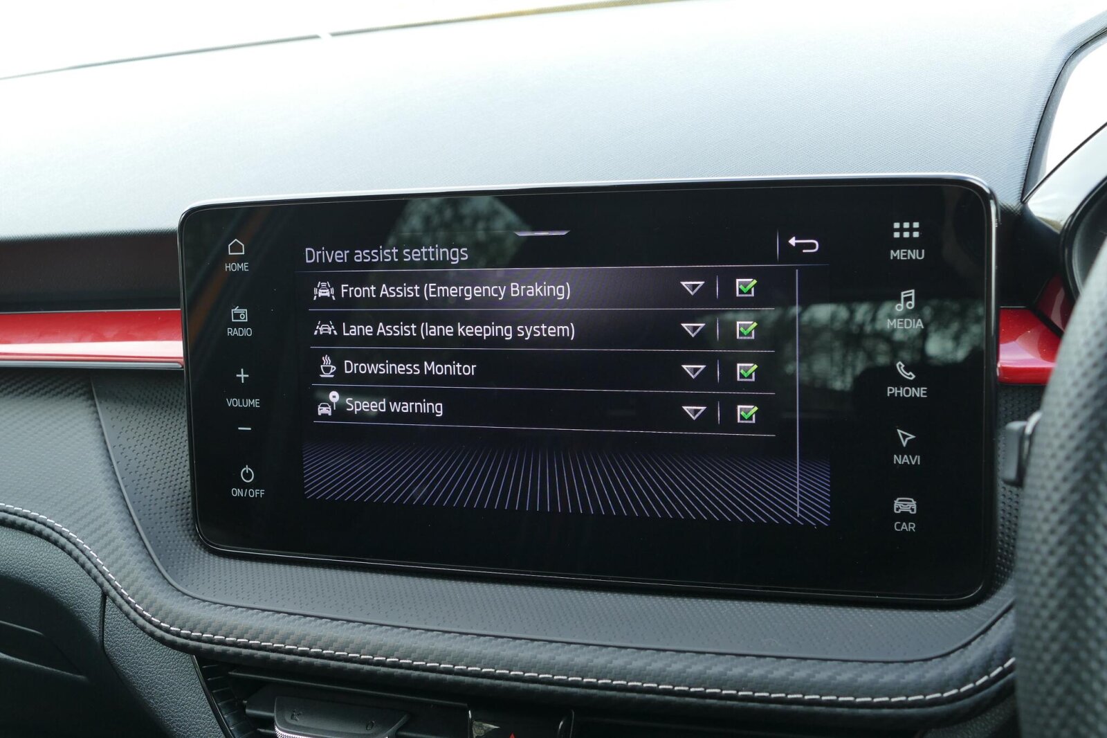 "features": "Adaptive cruise control (ACC) with speed limiter and front assist (reacting to vehicles pedestrians and cyclists), Car2X communication, Digital cockpit pro - 10.25\" high resolution TFT dash display screen with customizable menus and information, Driver alert system, Dynamic road sign display, eCall - Emergency call service for SOS calls to emergency response, Lane assist, Mobile phone interface with wireless inductive charging function, Multifunction camera for distance control, Power assisted speed sensitive steering, Speedo, rev counter, electronic odometer, trip, service interval display, exterior temperature and fuel gauge, Start/Stop function, USB-C ports in the front and rear centre console with increased charging performance, Warning buzzer and light for front seatbelts unfastened, Wireless app connect, Petrol Particulate Filter, XDS electronic differential lock for improved traction and handling, Premium USB cable in choice of either Apple or Android smartphone compatibility, Ambient lighting, exterior illuminated styling elements at the sides, Auto dimming rear view mirror, Automatic headlamp activation with Coming home and Leaving home feature, Automatic headlights, Body colour bumpers, Body colour door handles, Body colour door mirrors with integrated indicators, Body colour rear roof spoiler, Electrically heated and adjustable door mirrors with memory feature, Front and rear electric windows, Heat insulating glass windscreen, Heated rear windscreen, High level 3rd brake light, Highway light, LED License plate illumination, Rain sensor, Rear fog light on one side and reversing lights on both sides, Rear lights incorporating LED technology, Rear side wing doors, Rear windscreen washer and wiper with interval delay, Welcome light, 10 colour interior ambient lighting, 12V socket in front centre console, 12V socket in luggage compartment, 3 rear head restraints, 3 seat bench in 2nd row, Drivers and front passengers sun visors with vanity mirrors, Front centre armrest with storage compartment, Front cupholders x 2, Front passenger seat, Front reading lights x 2 incorporating LED technology, Front seat lumbar support adjuster, Glovebox, Height adjustable front seats, Height and reach adjustable steering wheel, Isofix child seat preparation for 2 rear child seats and front passenger seat, Luggage compartment lighting, Maze cloth upholstery, Plastic gear knob, Removable luggage compartment cover, Soul black instrument panel, Split folding backrest with centre armrest and unsplit rear seat bench, Storm grey roof lining in recycled material, Woven fabric storage compartments in front and rear doors, 3 point height adj front seatbelts + pretensioners, 3 rear three point seatbelts, ABS, Child locks on rear doors, Driver and front passenger airbag with front passenger airbag deactivation, Drivers and front passengers safety optimised head restraints, Electronic parking brake with auto hold, ESC (Electronic Stability Control), Extended pedestrian protection measures, Front centre airbag, Front disc brakes, Front side airbags with curtain airbags, Rear disc brakes, Two tone horn, Tyre pressure monitoring system, Alarm with interior protection and deactivation via infotainment system, Electronic engine immobiliser, High gloss black centre console, Silver silk decorative inserts in dash and front door panels, ",