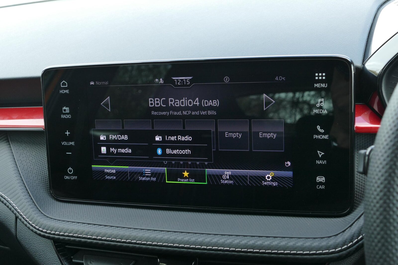 "12V socket in centre console",