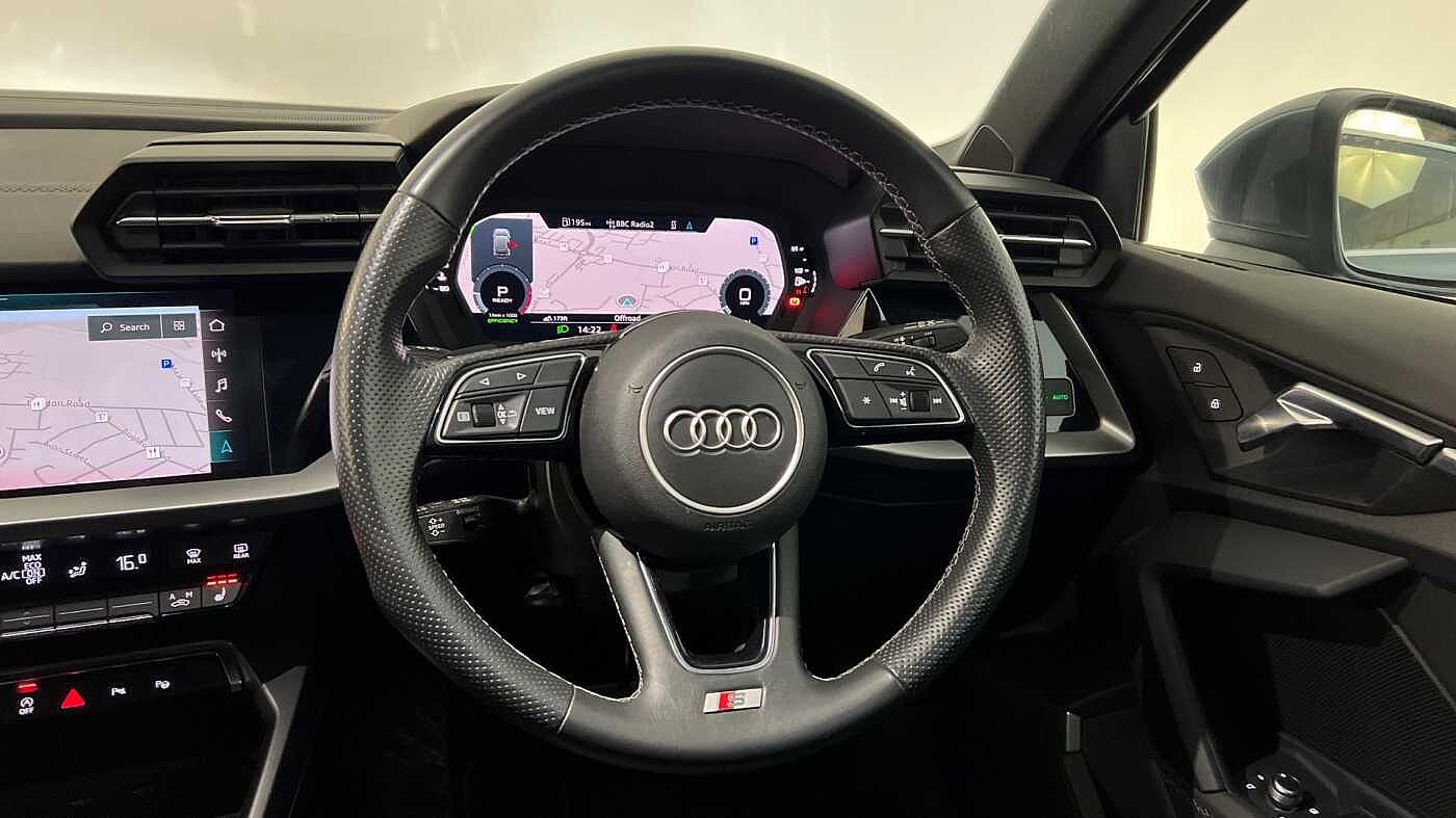 "3 spoke sports leather heated multifunction steering wheel with DSG paddles",