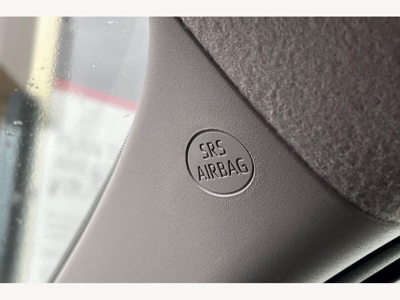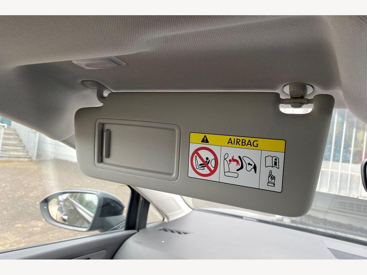 "Airbag label on sun visor and B-pillar",