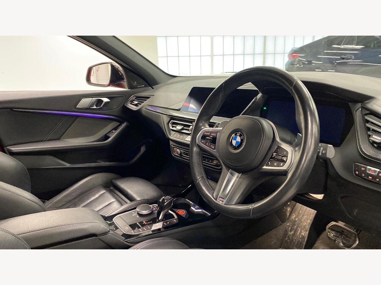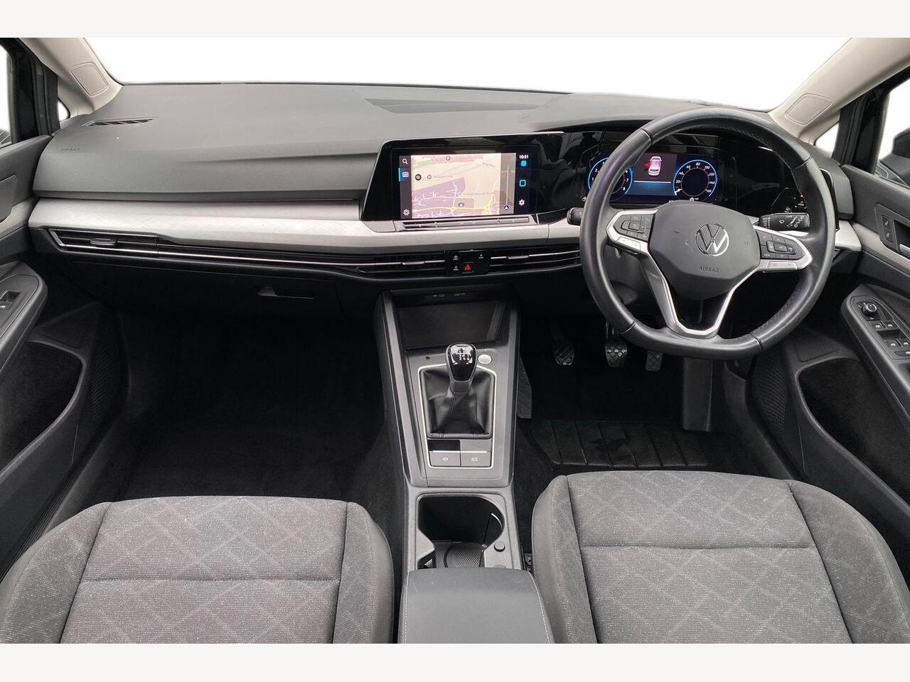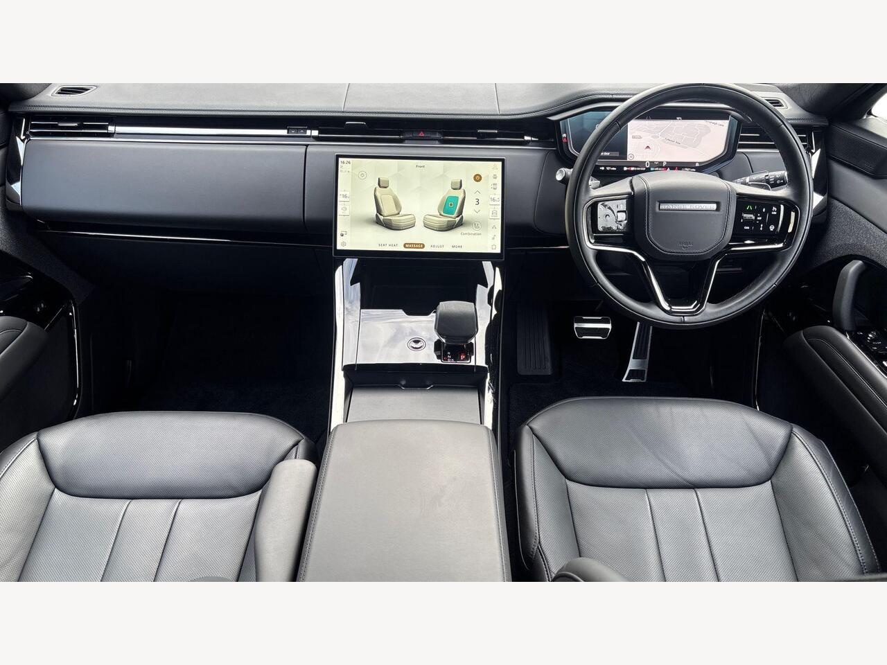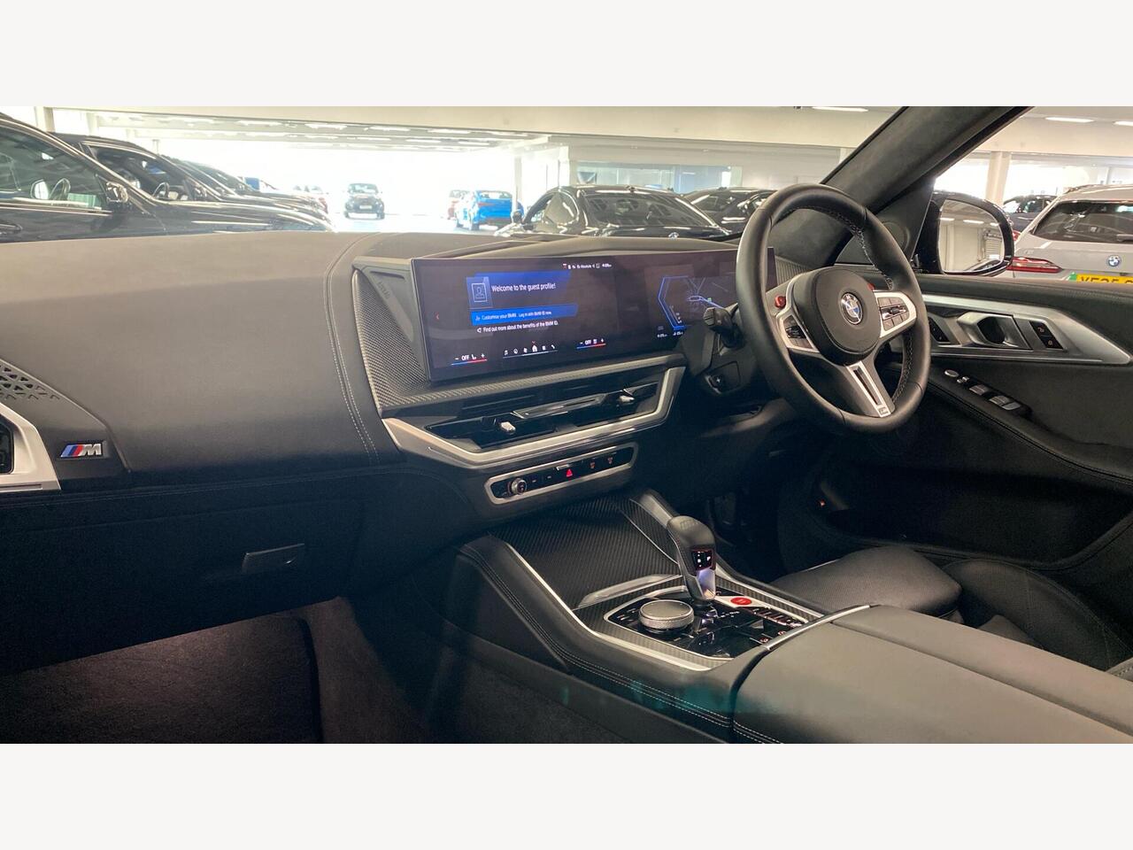 "Steering wheel, dashboard and central controls in black",