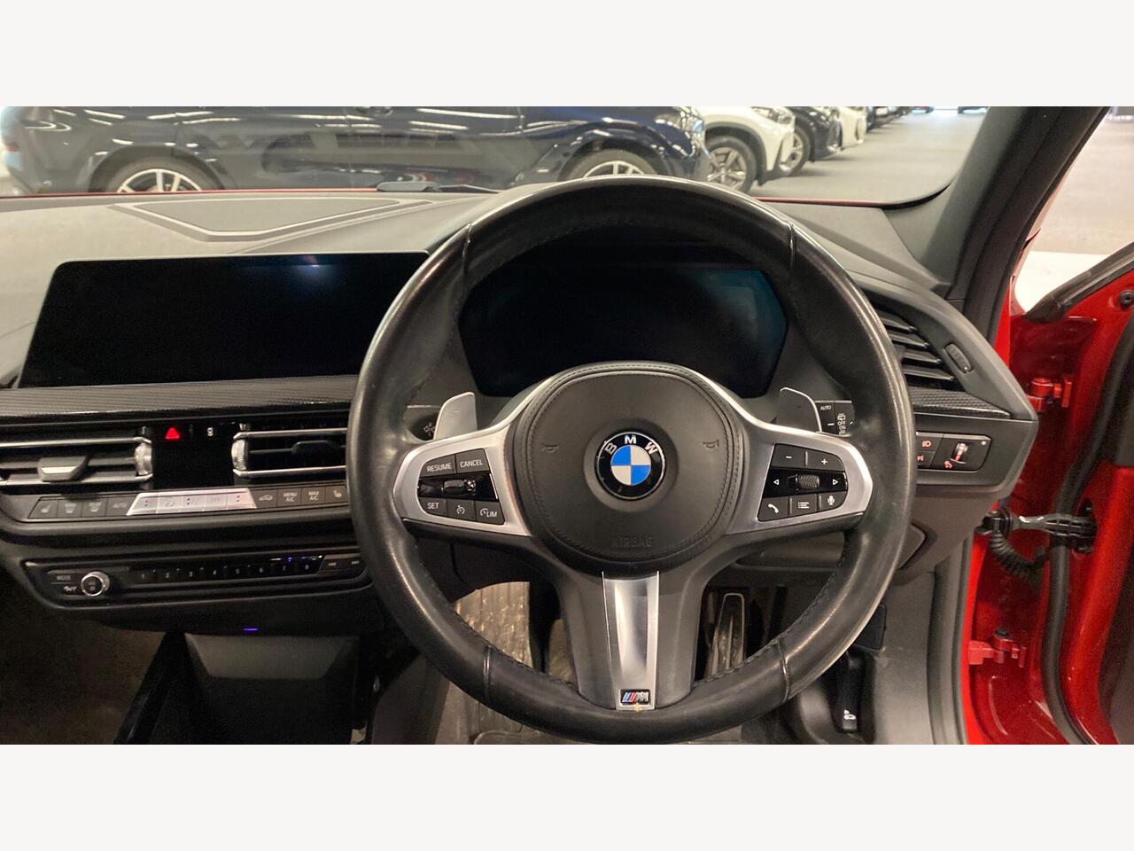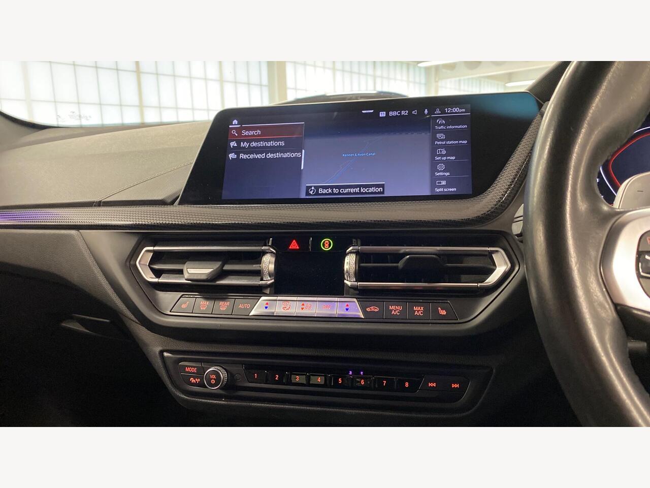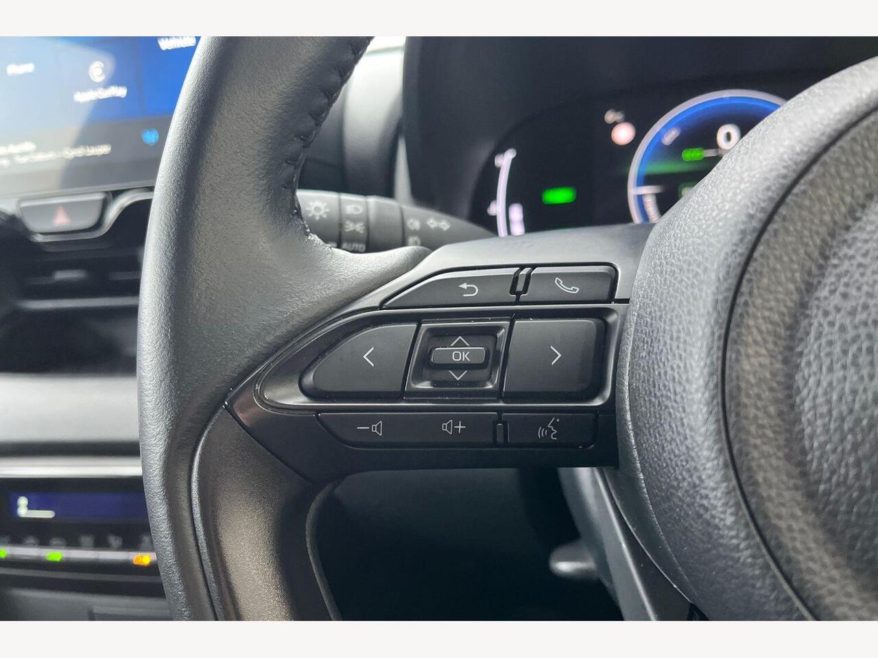"Steering wheel, dashboard and central controls in black",