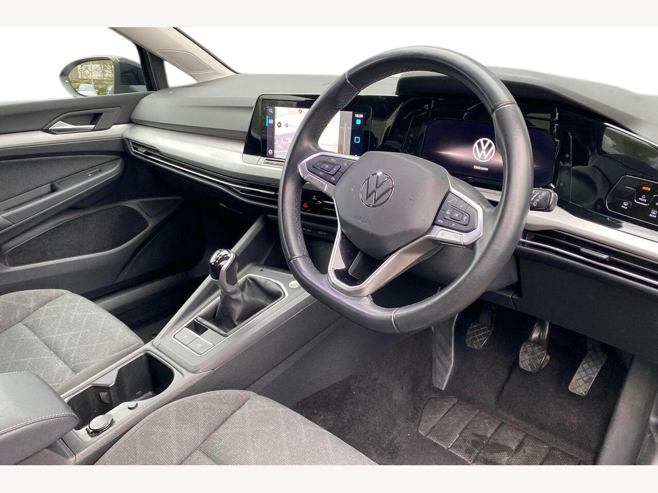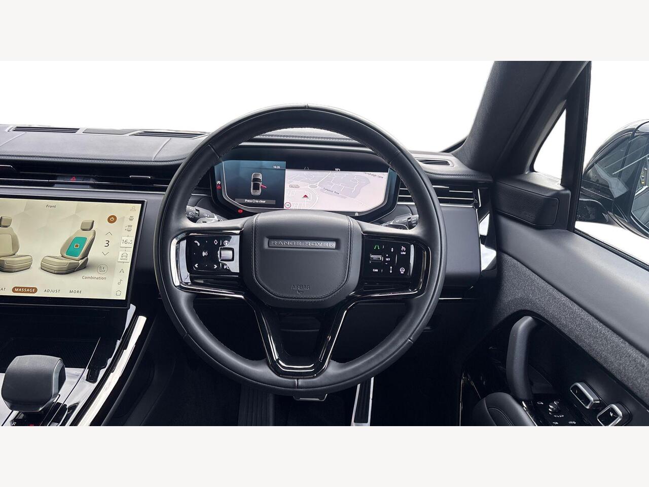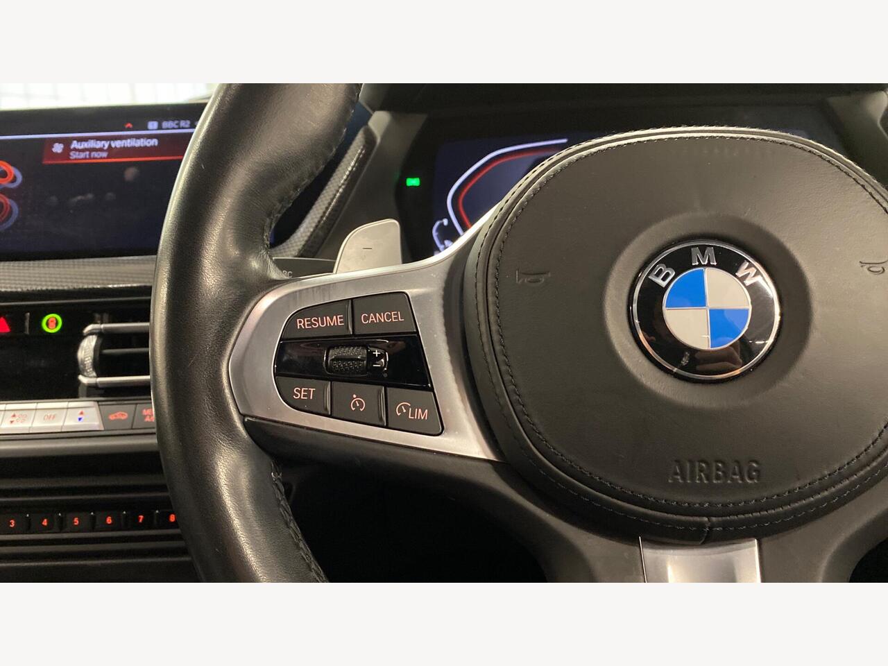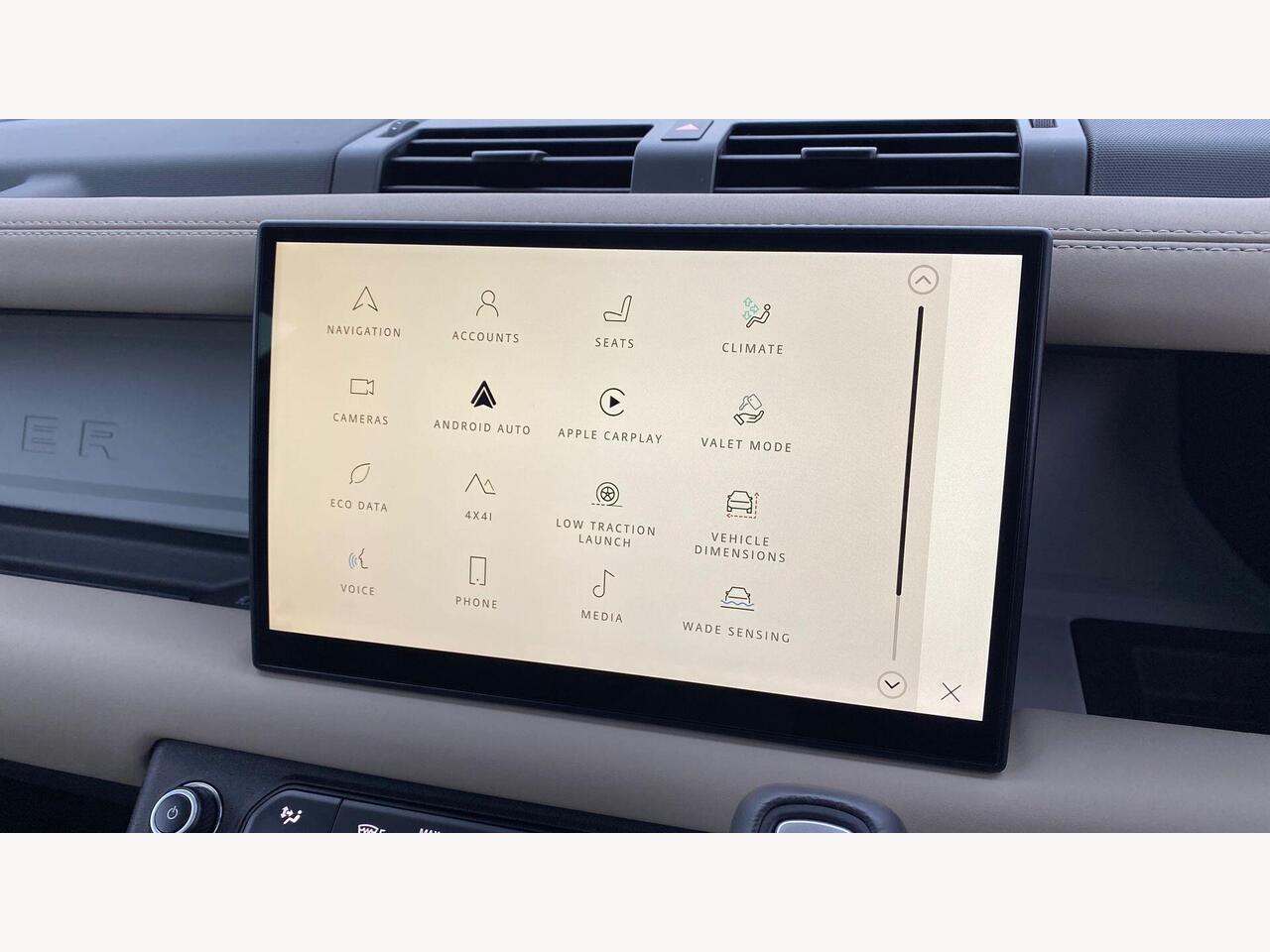 "Steering wheel, dashboard and central controls in black",