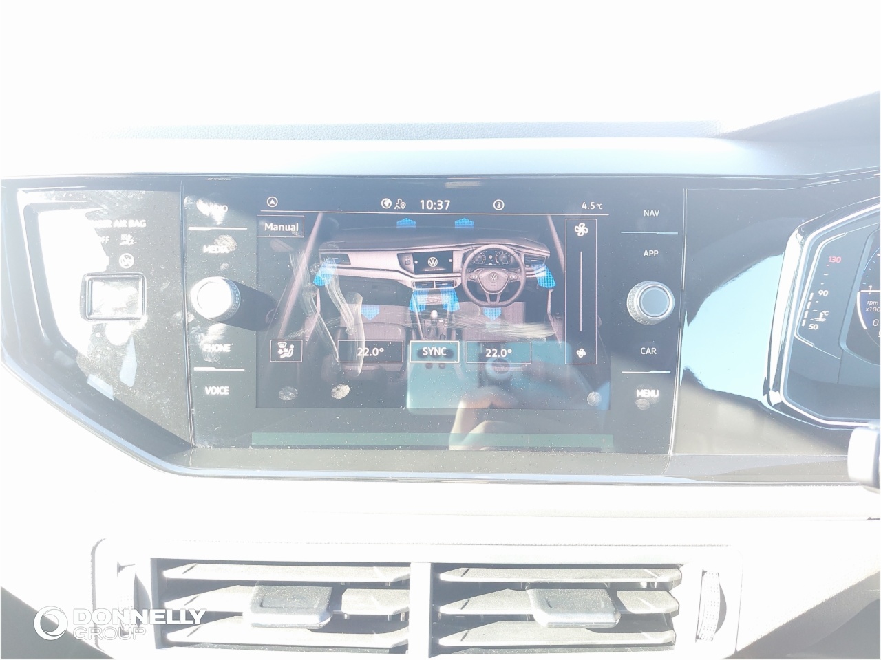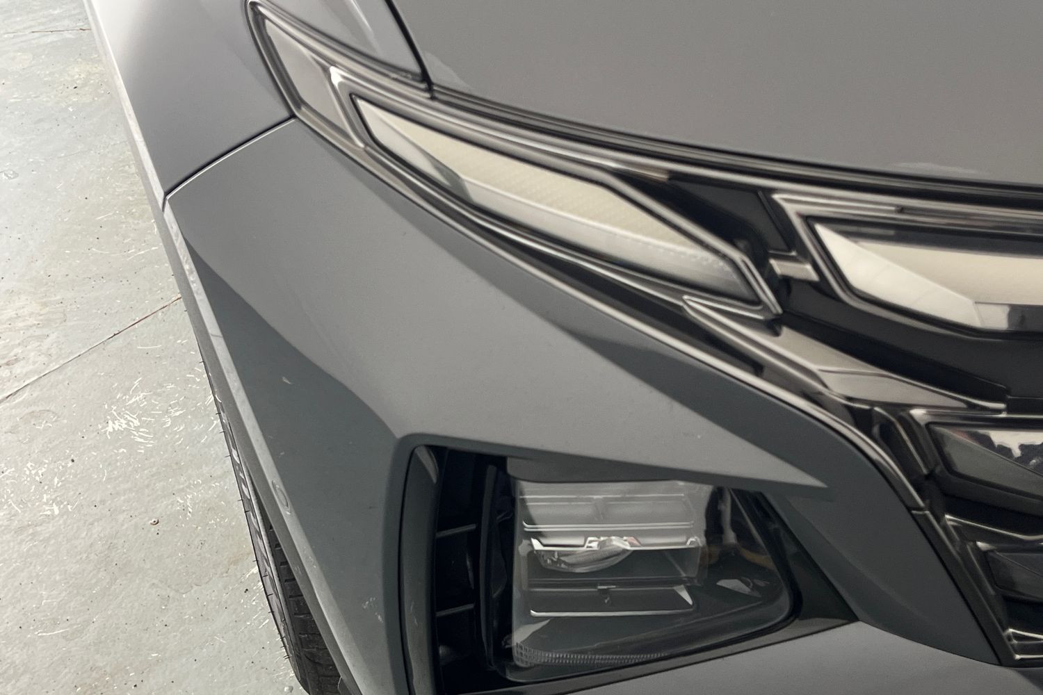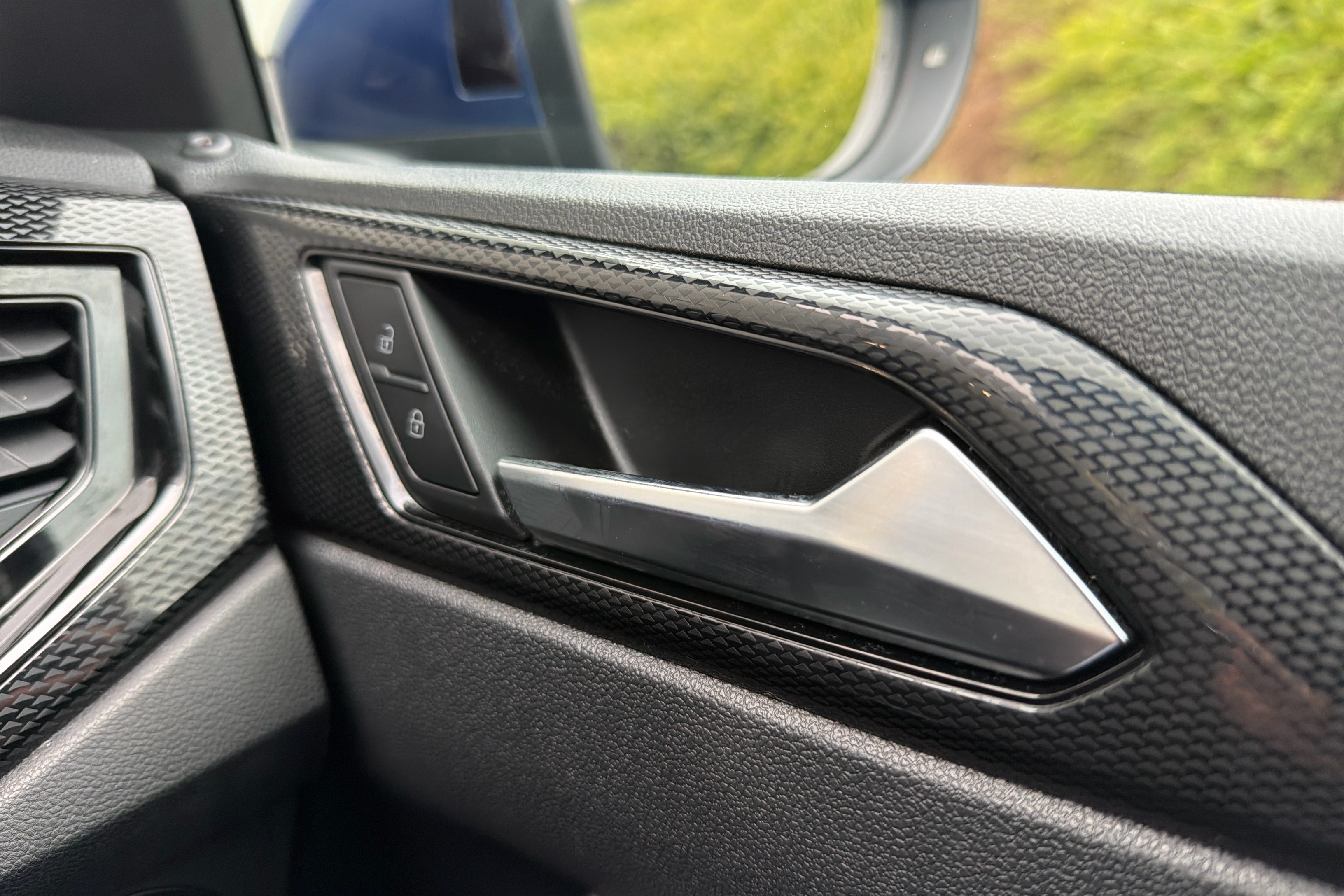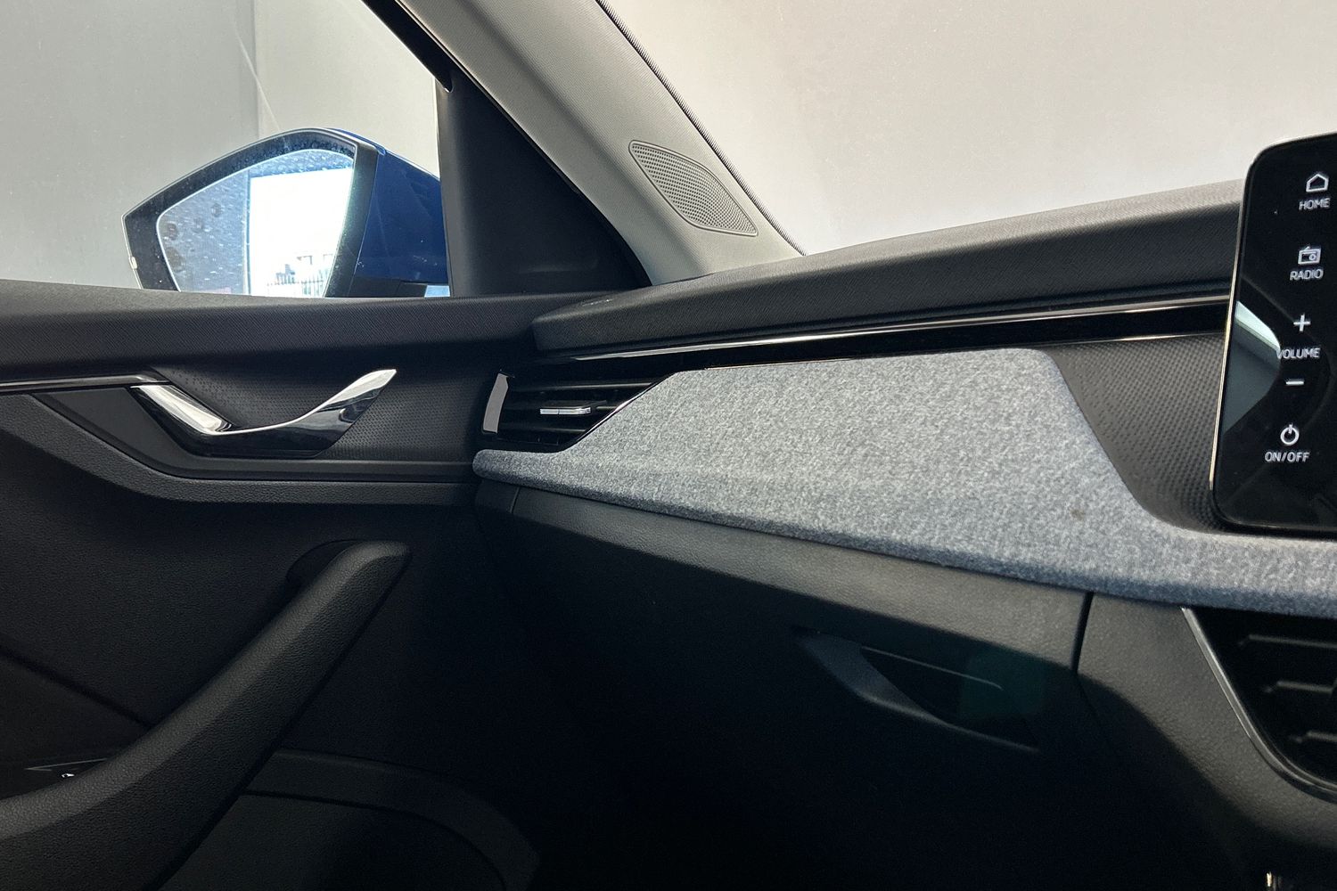 "Structured grey accent areas including air vents, door handle recesses and centre console in quartz paint finish"