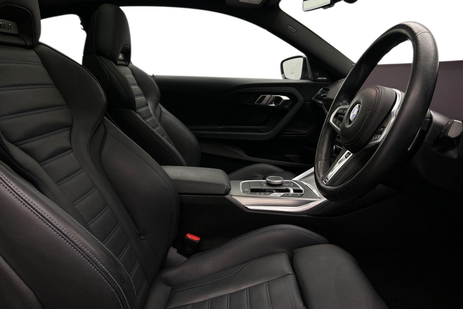 "Front and rear black floor mats with contrast stitching in fine silver",