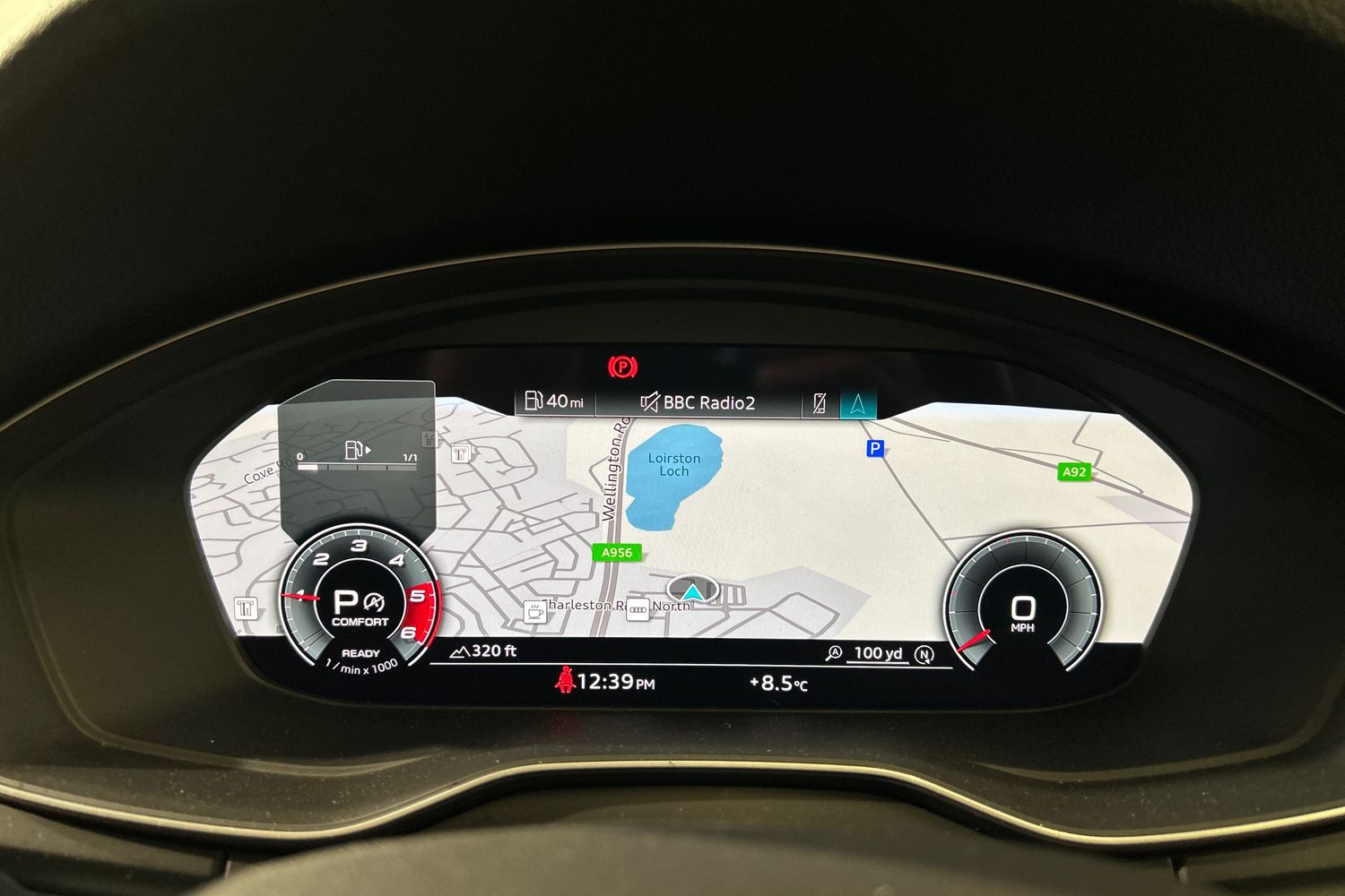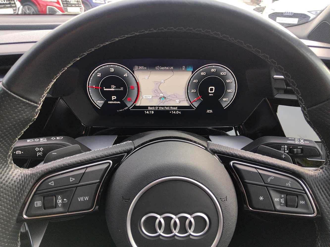 "Audi virtual cockpit plus with 12.3\" screen and three different layout designs",