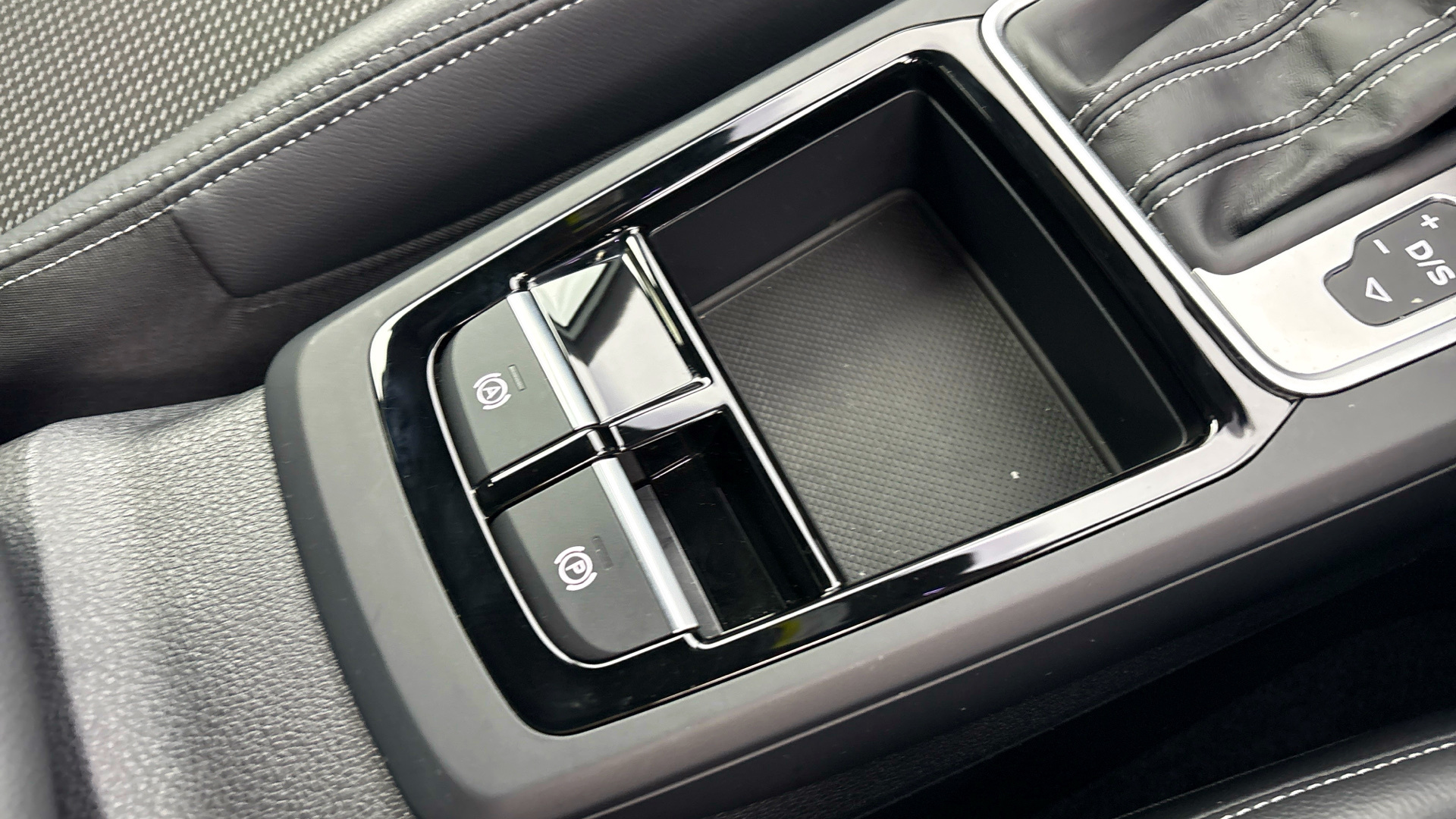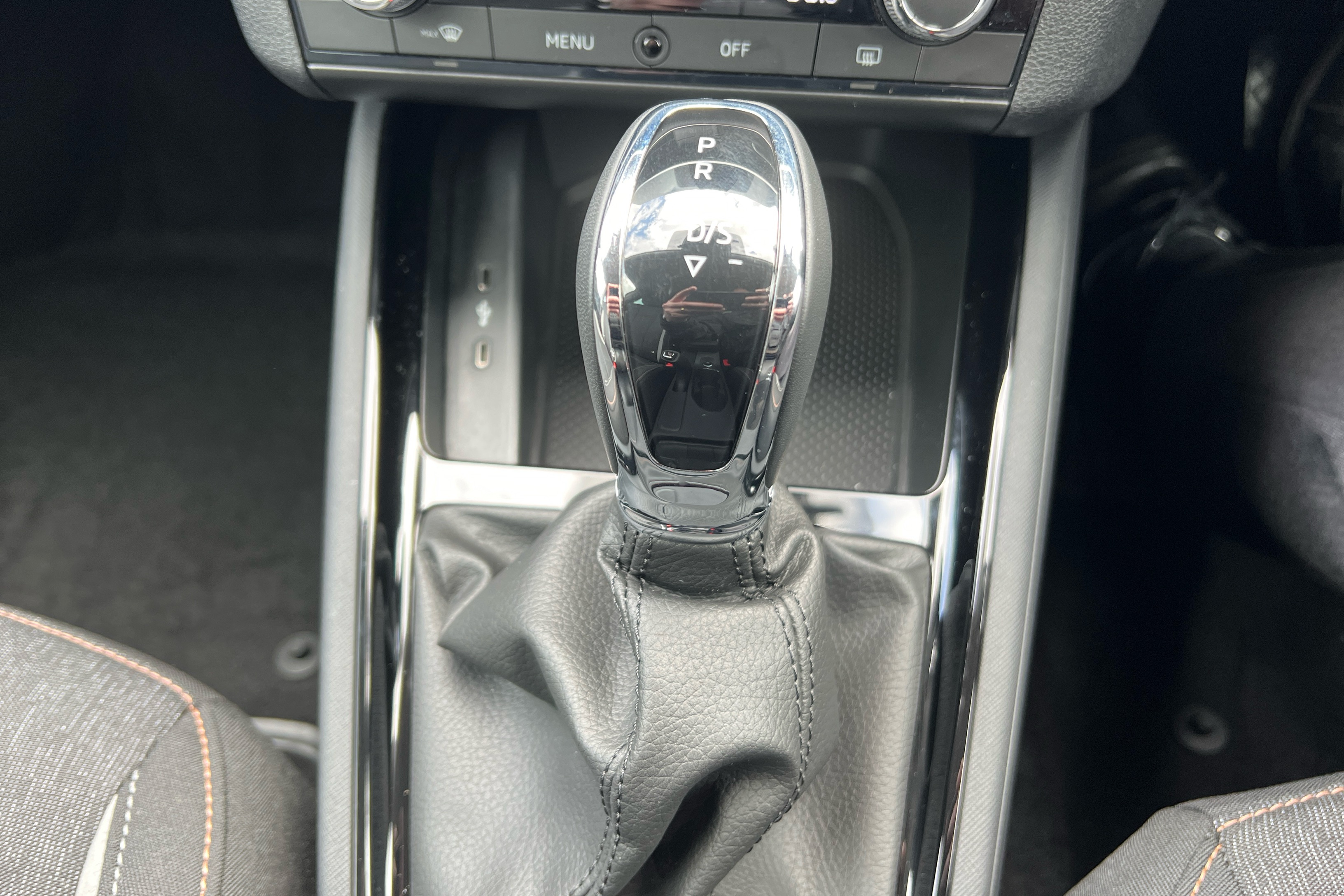 "Gear lever in black leather",