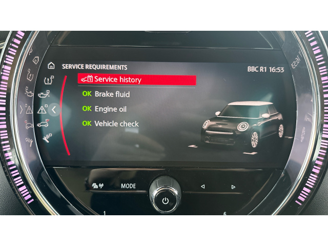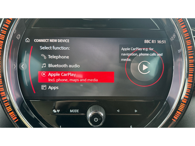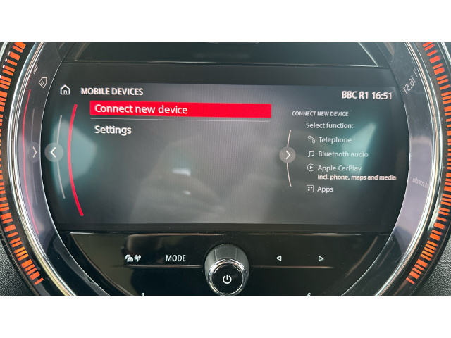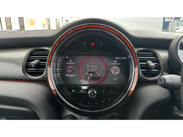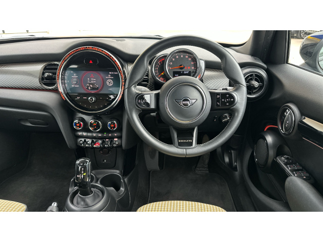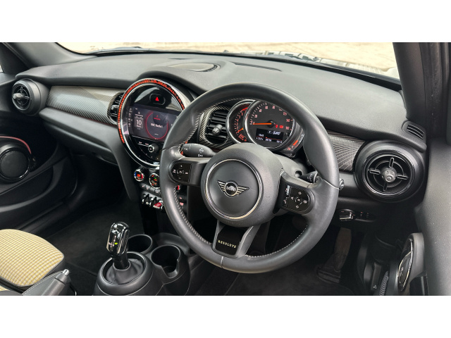 "features": "Apple CarPlay, Automatic start/stop function with brake energy recuperation, Compatible mobile phone bluetooth with audio streaming, Cruise control with brake assist, Electro-mechanical speed dependant steering assistance, Flexible car sharing preparation, Instrument cluster, MINI Driving Modes - centre toggle switch to control driving setting (sport, mid and green), Mini E-call, MINI TeleServices, On board computer, Rear park distance control, Service interval indicator, Double Vanos system, Fully variable valve control, Gear change indicator display, High precision injection, Performance Control, Steptronic transmission with double clutch, 8.8\" touchscreen with LED ring, FM tuner and DAB digital radio, 3rd brake light, Automatic headlight activation switch, Dynamic brake lights, Electric front+rear windows, Heated rear window, Heated windscreen washer jets, LED headlight with closed ring and daytime driving lights, Metal door sill strips with MINI imprint, Model logo Cooper on right of tailgate, Rain sensor window wipers, Rear fog lights, Rear LED lights with union jack design, Rear side wing doors, Rear window wiper, Side scuttle panel with integrated indicator, Special solid paint, Sun/heat protection glass, Waistline finisher in Piano black, White indicator lenses, 12V Accessory socket in centre console, 3 seat bench in 2nd row, 4 lashing eyes in luggage compartment, 60/40 split folding rear seat, Anthracite headlining, Chrome interior highlights, Cupholders, Front and rear head restraints, Front and rear isofix with front passenger airbag deactivation, Front and rear velour floor mats, Glove compartment, Height and length steering column adjustment, Interior lighting with 12 different colours across the dashboard, underneath door bezel with illuminated laser-engraved design on central display, Interior surface resolute, Leatherette gearshift lever and handbrake gaiters, LED reading lights, vanity mirror lights, front foot well light and spotlight on front seats, Manual air conditioning, Mechanical seat adjustment - forward/back & backrest for front seats and driver seat height adjust, MINI yours badge on exterior pillar, Multifunction steering wheel, Resolute badge on steering wheel spoke, Single front passenger seat, Storage compartments in doors, Sunvisors with vanity mirrors, 3 point seatbelts on all five seats, 6 Airbags - front, side, head and seat belt tensioners, Anti-lock braking system (ABS), Child locks on rear doors, DSC - Dynamic Stability Control, Front and rear disc brakes, Hill start assist, Single tone fanfare horn, Tyre pressure monitoring system, Alarm system with tilt sensor, monitoring doors, bonnet interior and tailgate, Electronic vehicle immobiliser, Start/stop toggle with keyless go, Resolute interior trim, Tool kit, ",