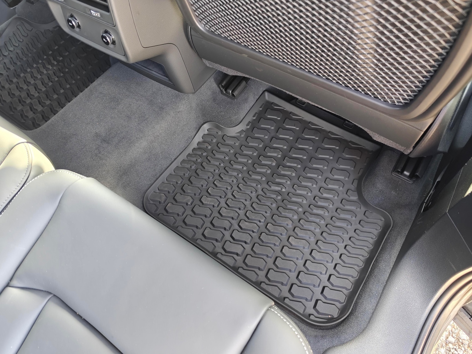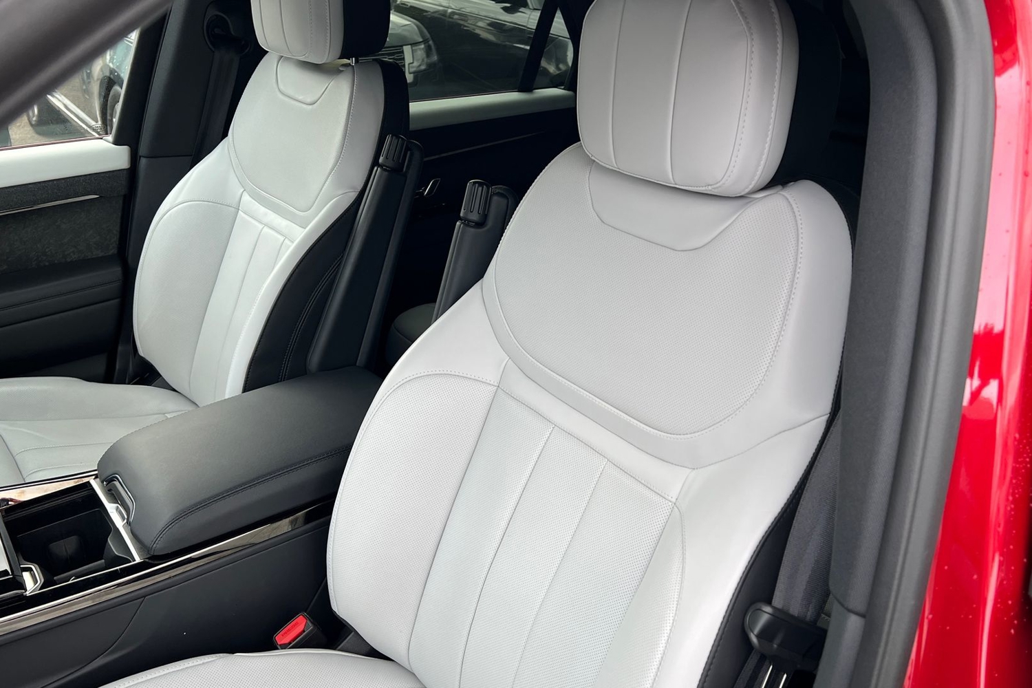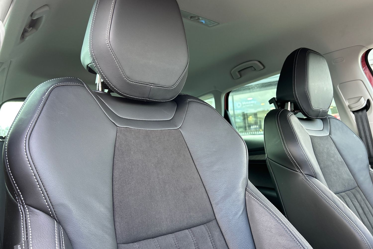 "Floor mats with red stitching",