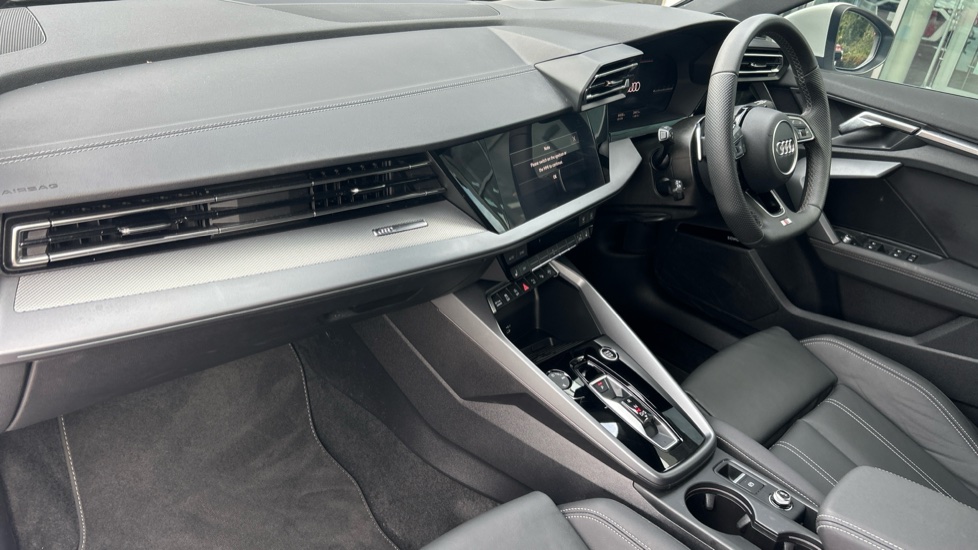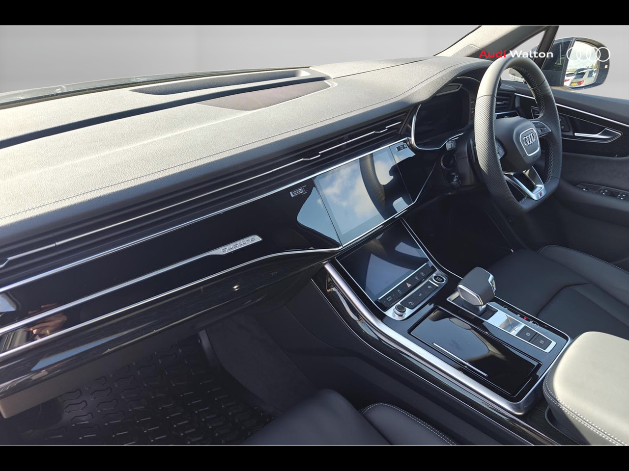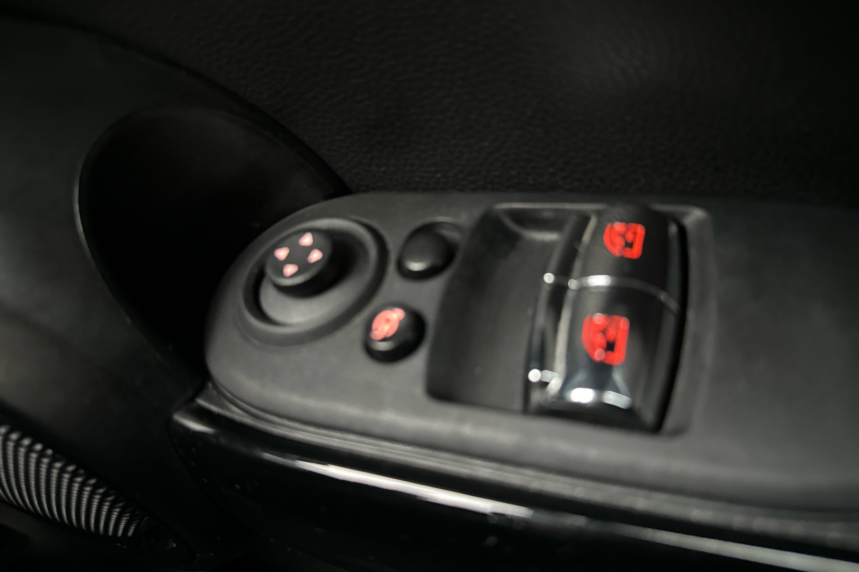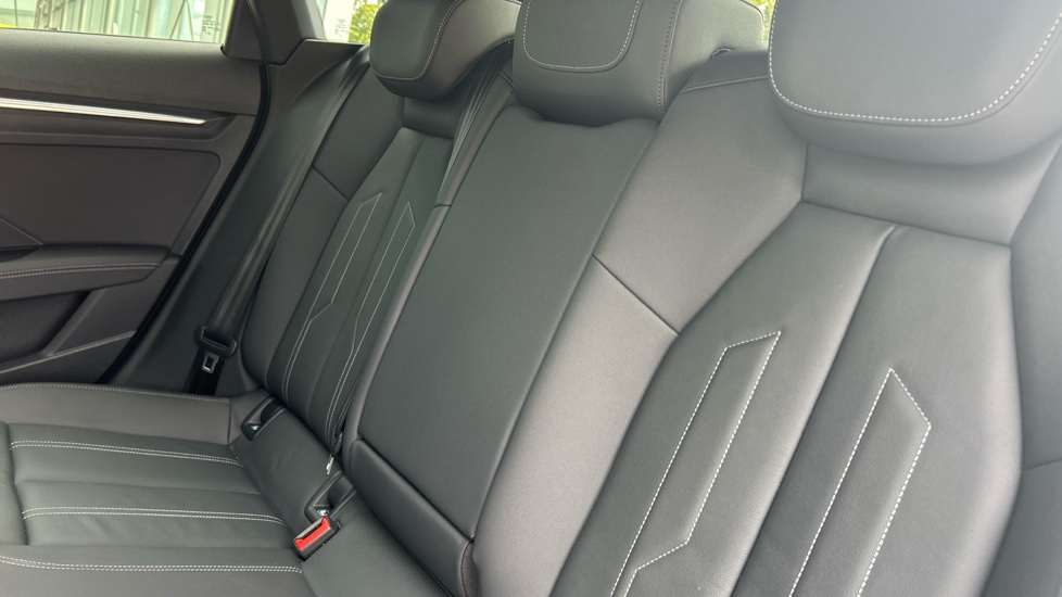 "Floor mats with red stitching",