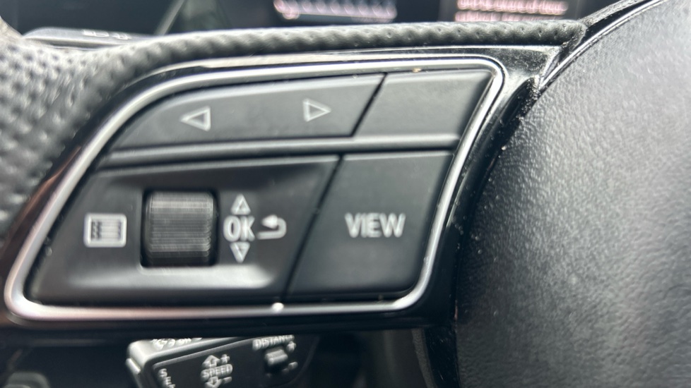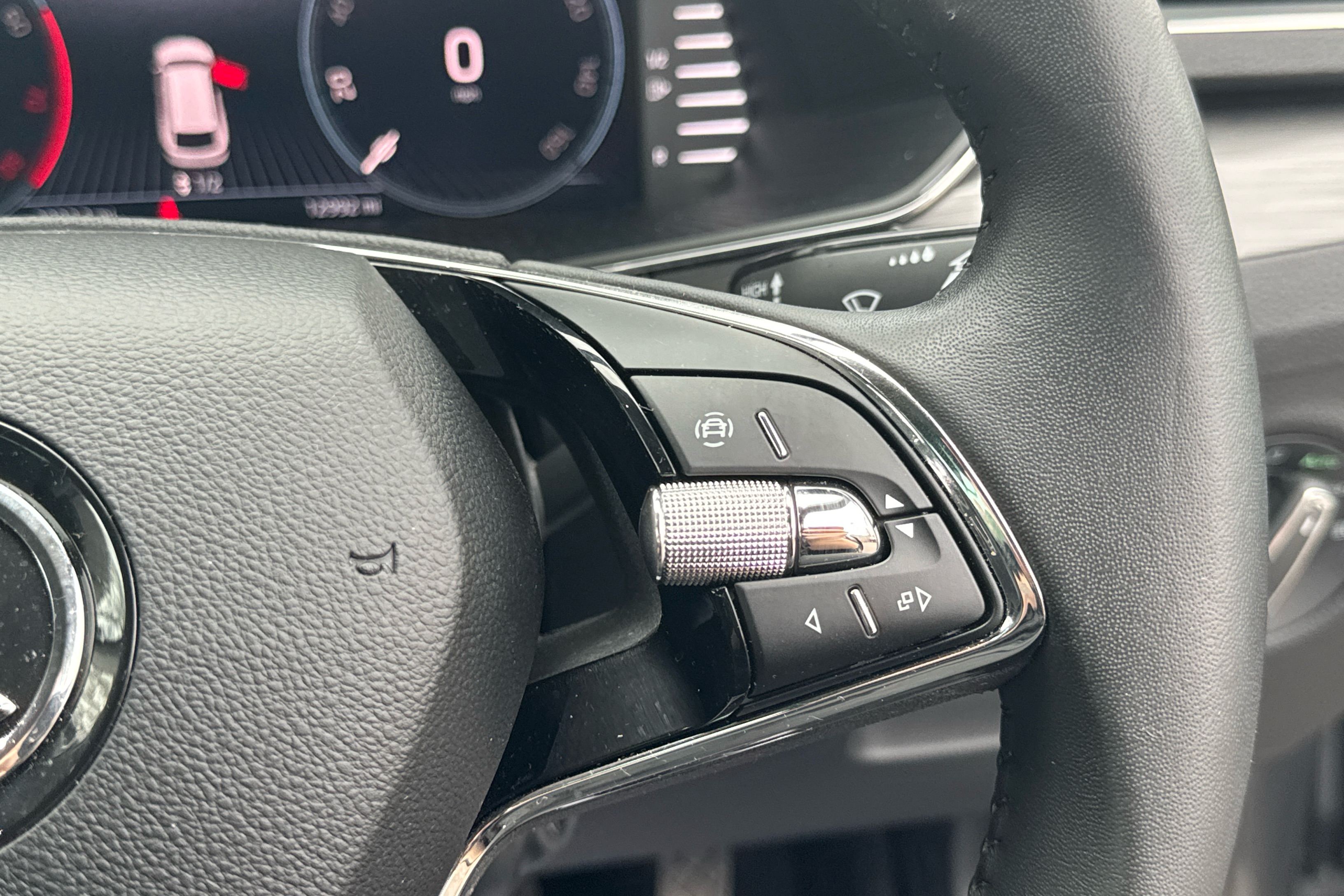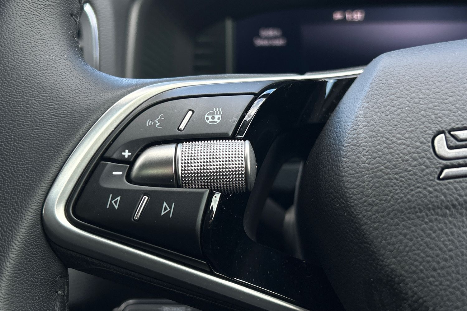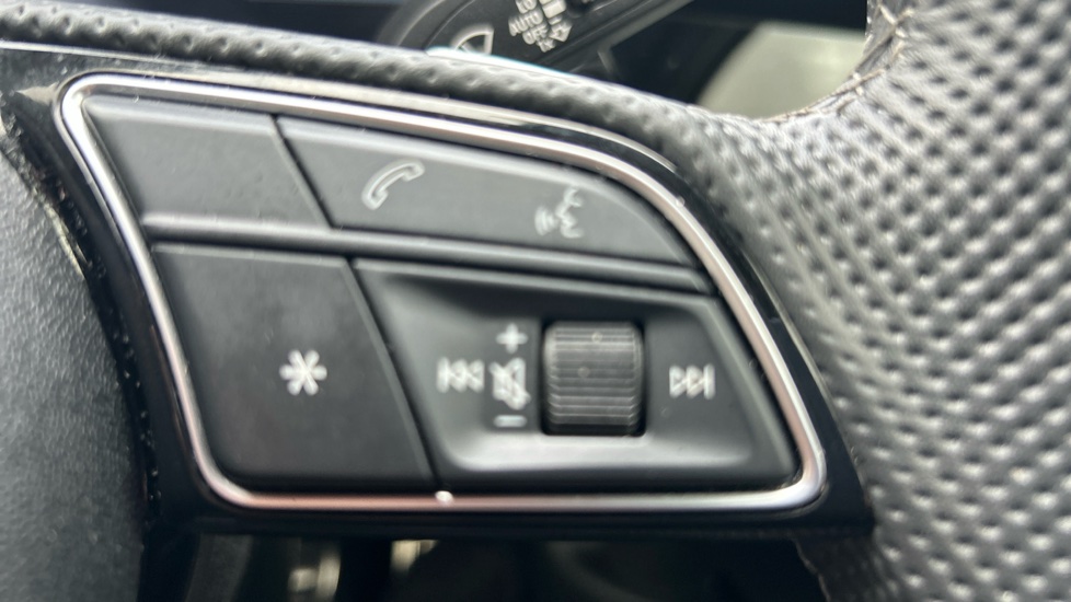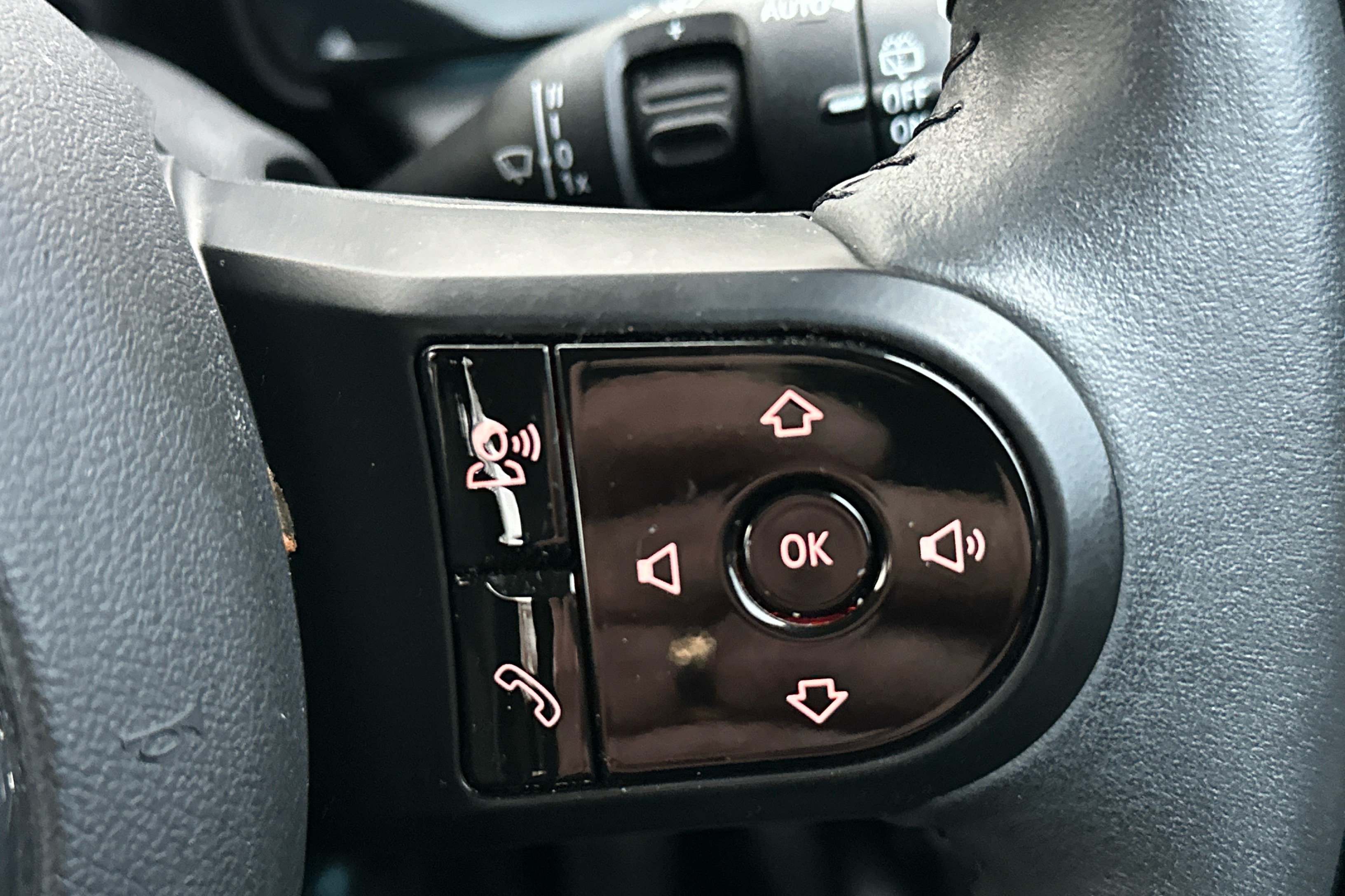"Remote audio controls on steering wheel",