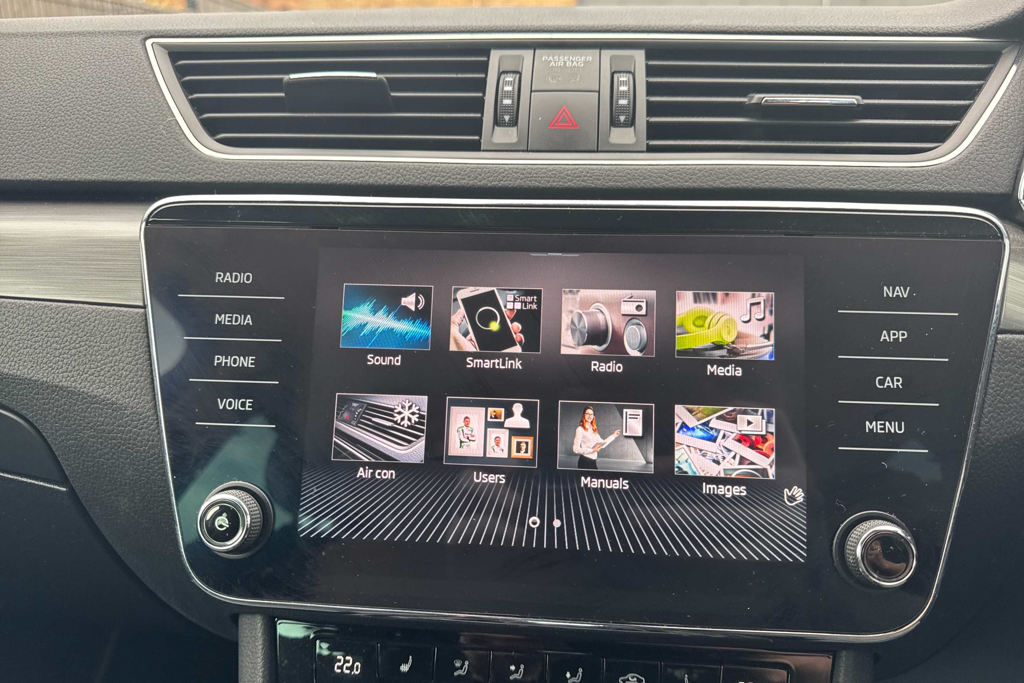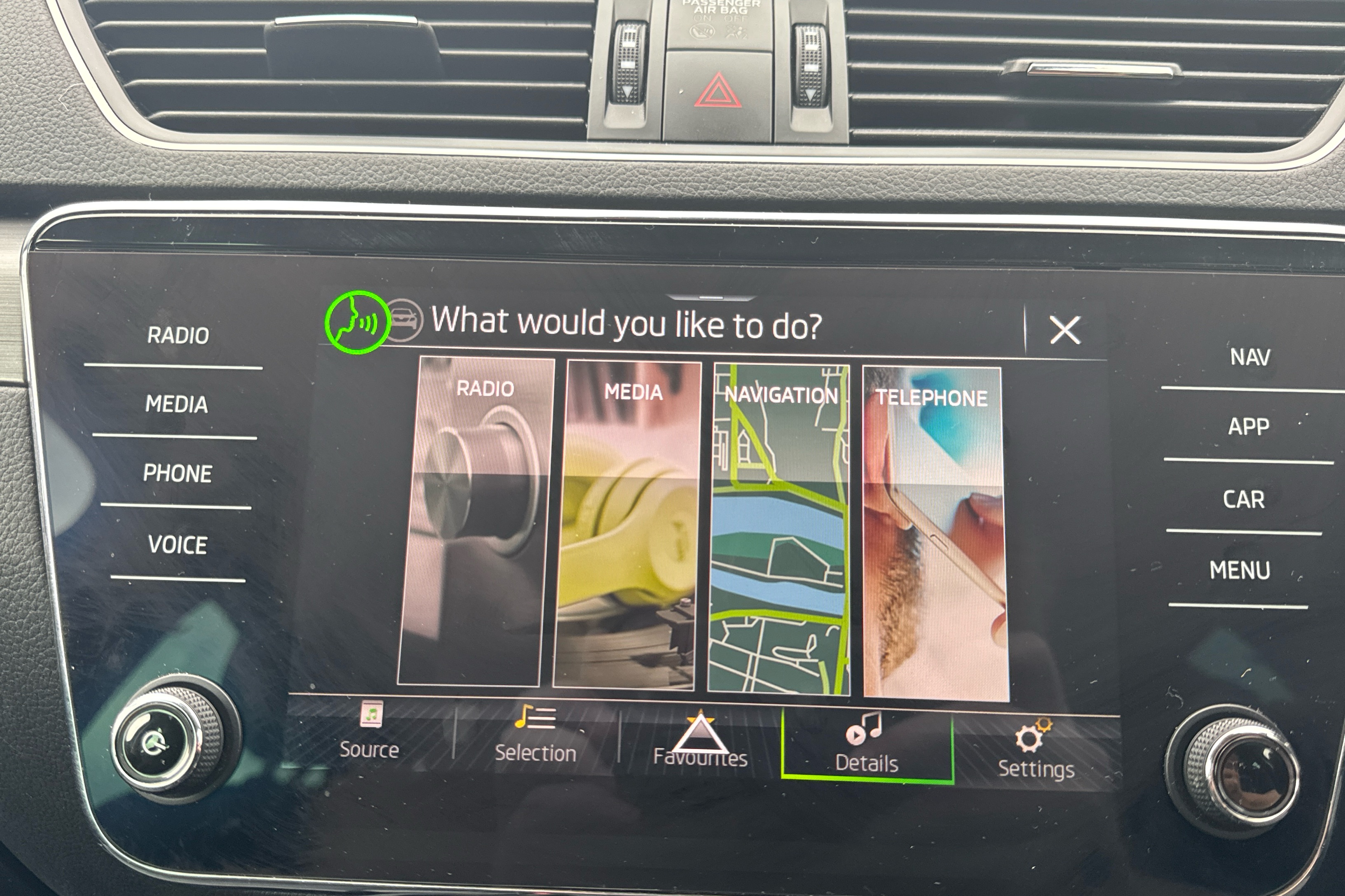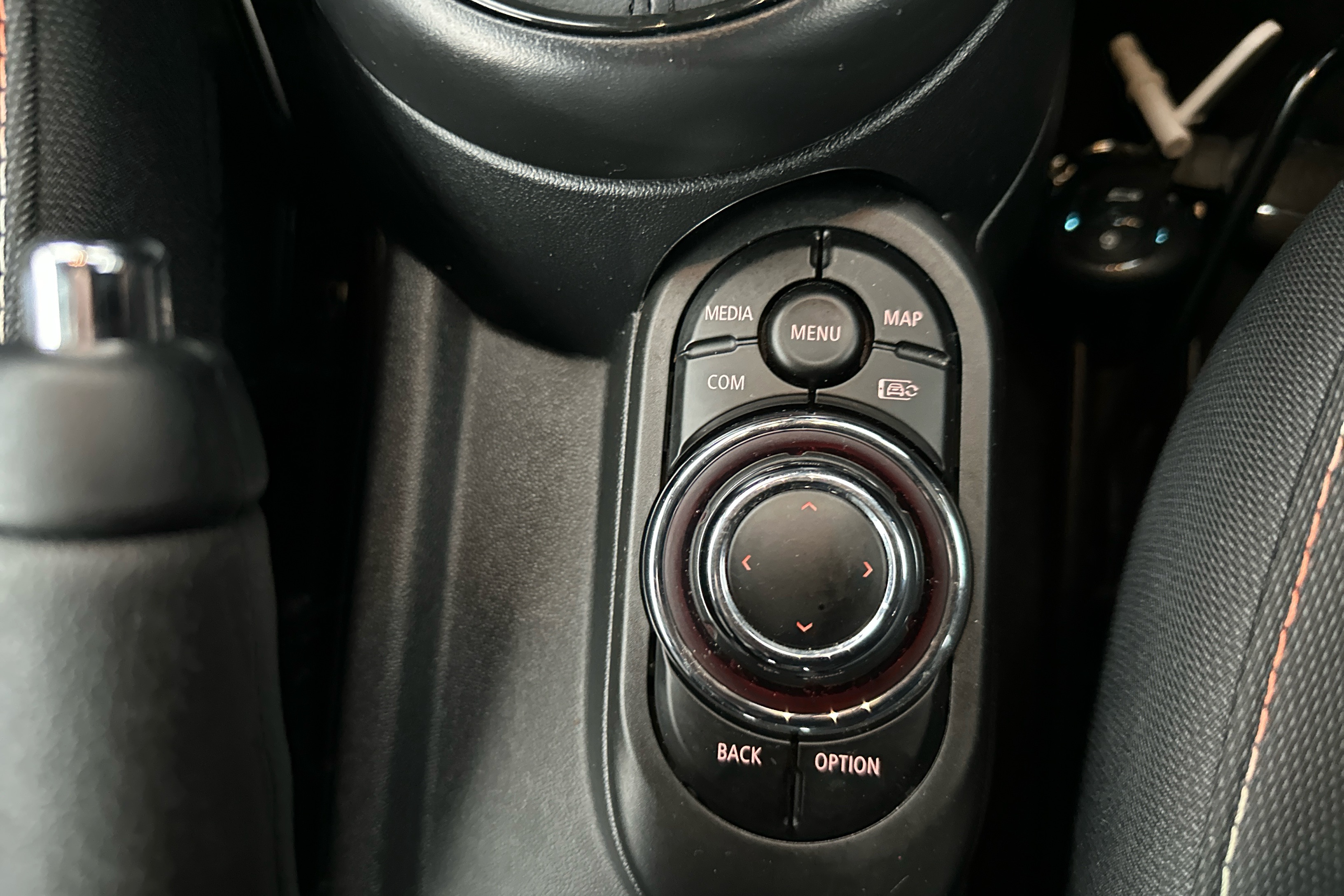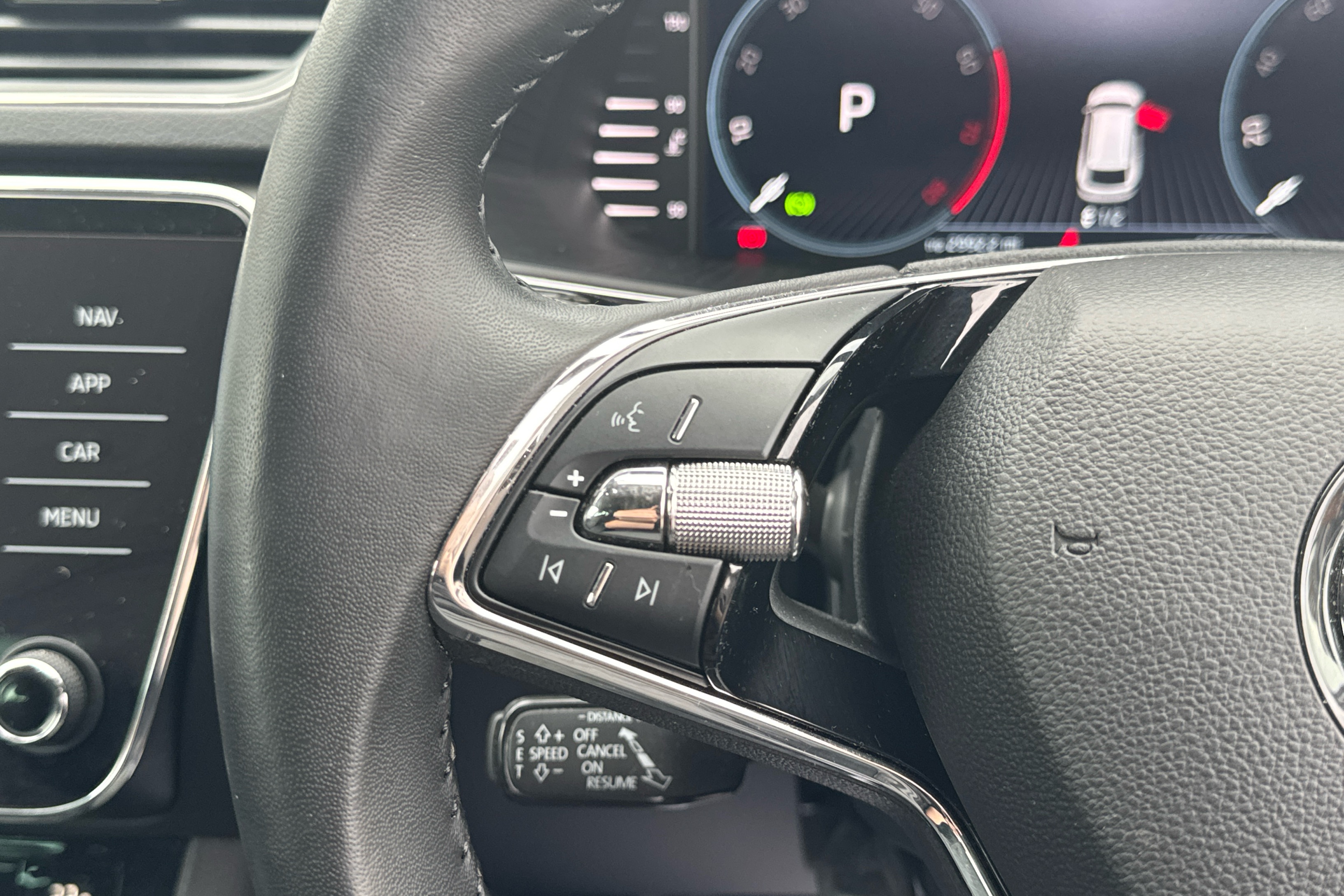 "Remote audio controls on steering wheel",