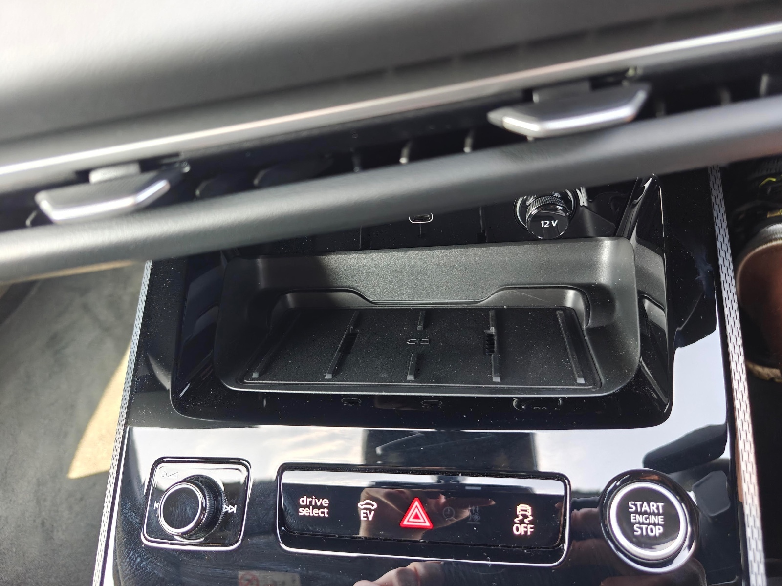 "Centre console with stowage tray/bottle holder/CD stowage/front and rear 12V power point",