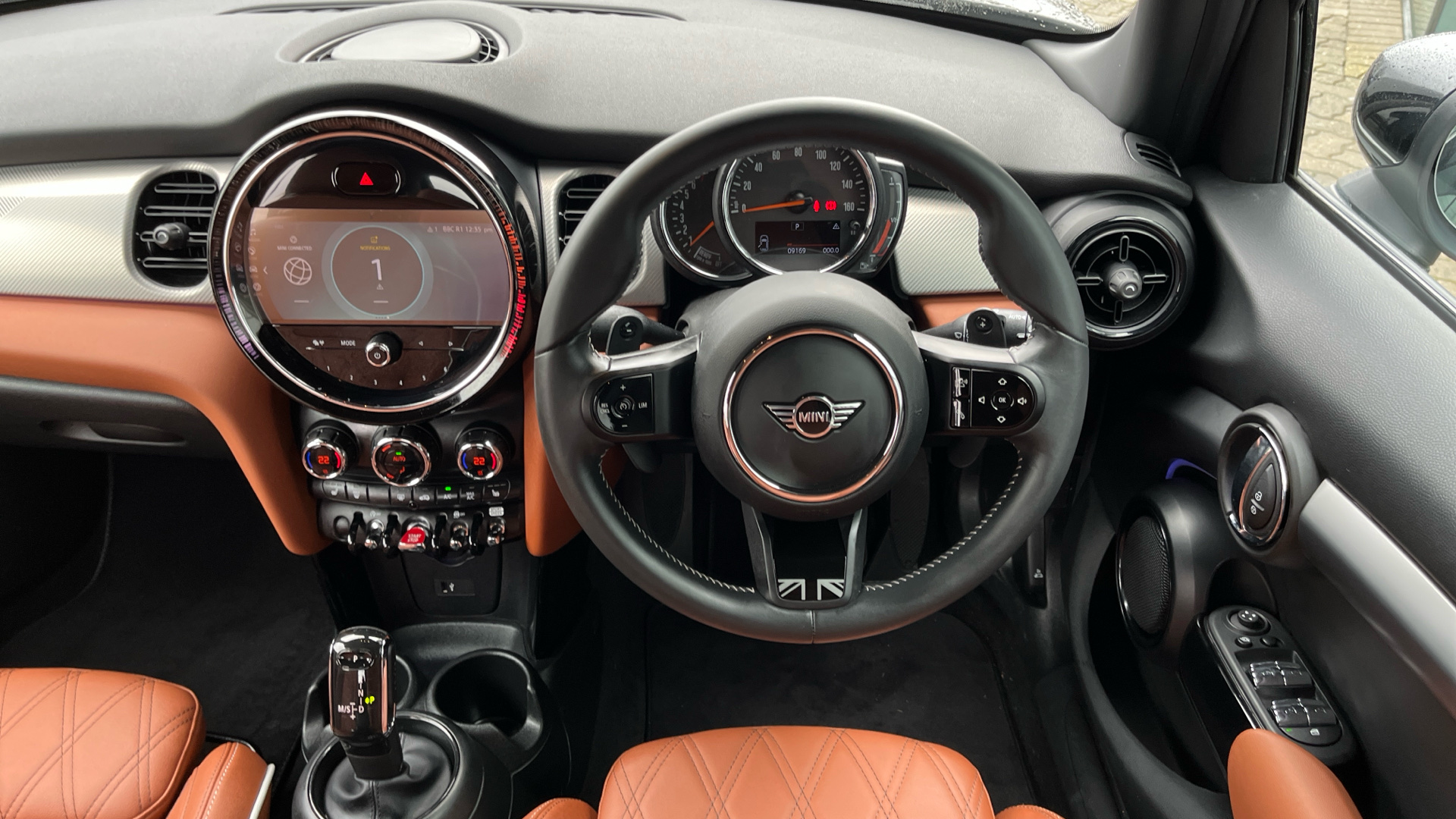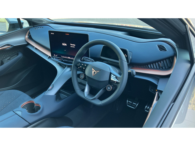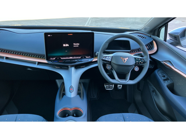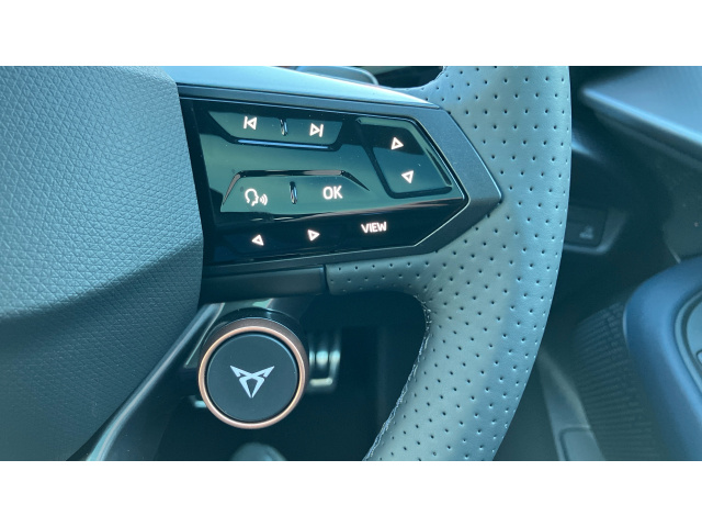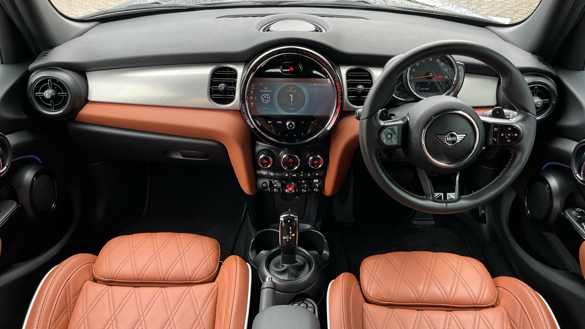 "Nappa leather double-spoke steering wheel flattened at the bottom with thumb rests",