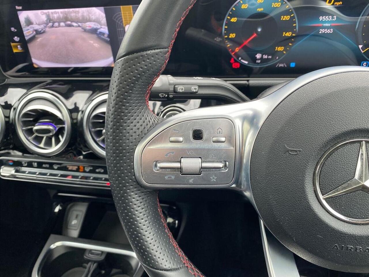 "3 spoke AMG multifunction steering wheel with touch control buttons, trimmed in black nappa leather with flattened bottom section",