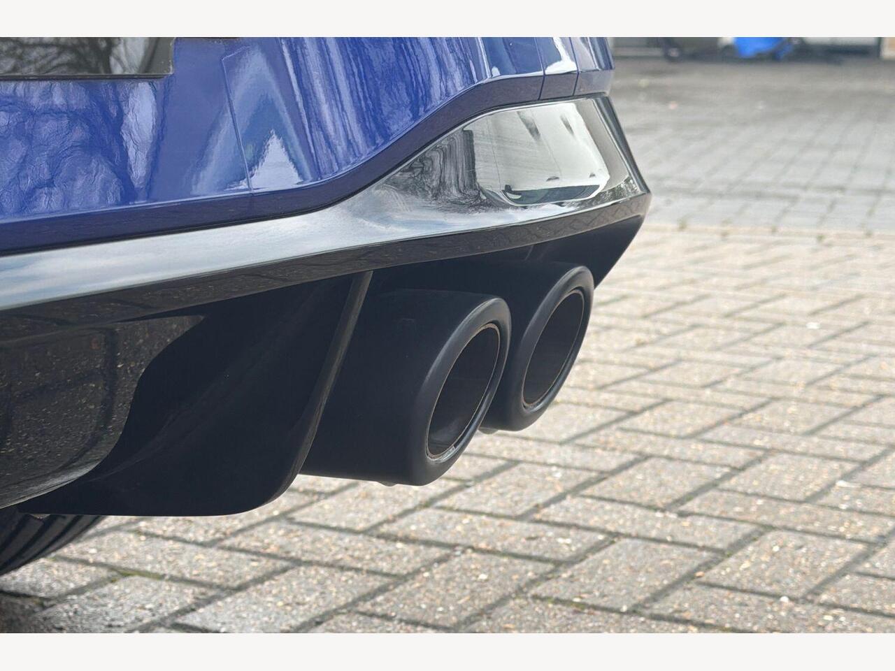 "Visible twin pipe exhaust system integrated into bumper",