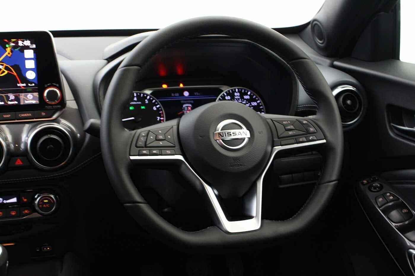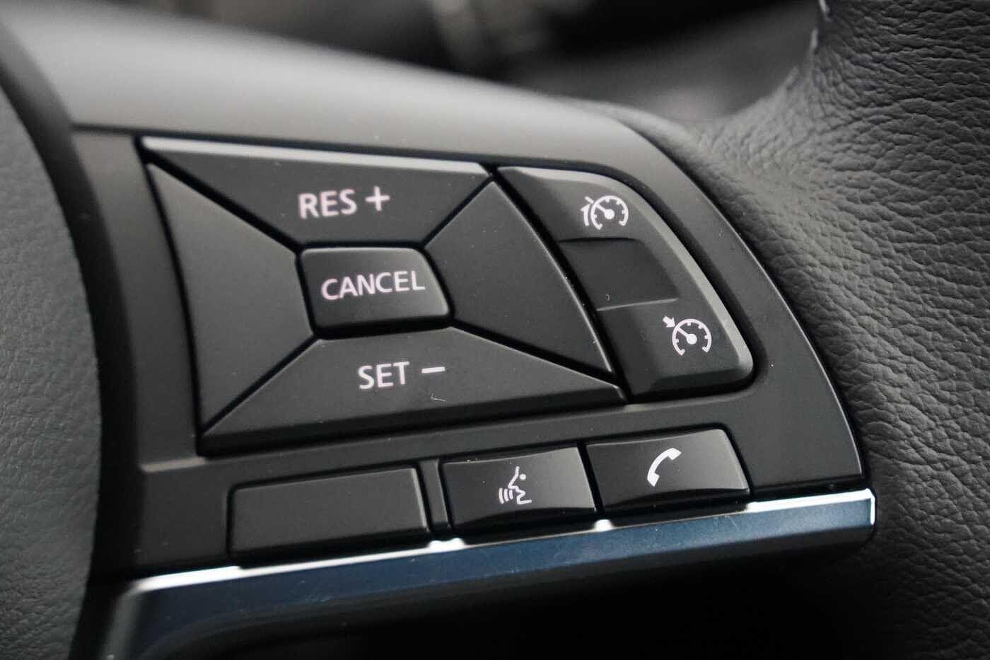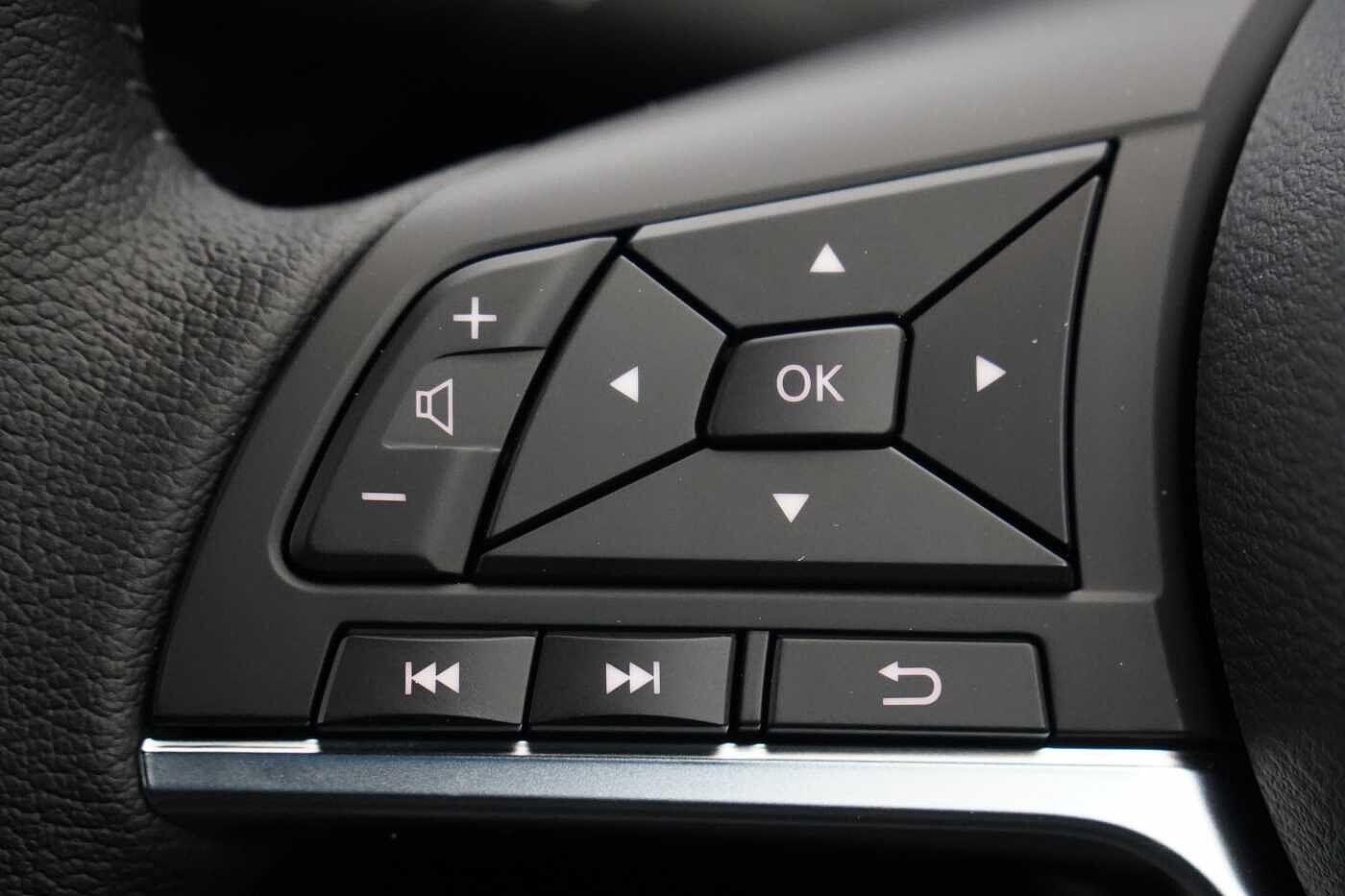 "Grained leather steering wheel with two command blocks",
