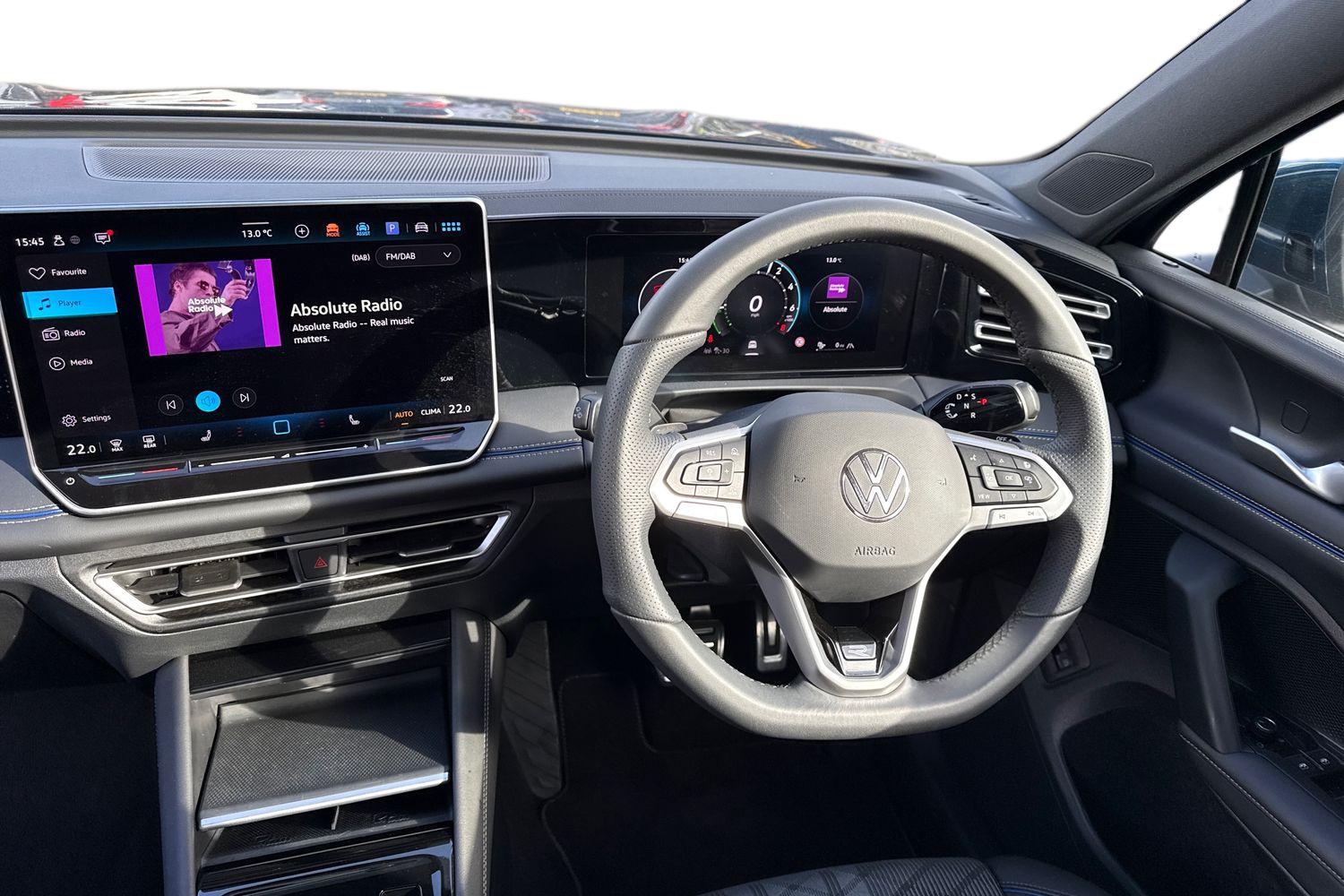 "3 spoke flat bottomed leather steering wheel with satin chrome bezel",