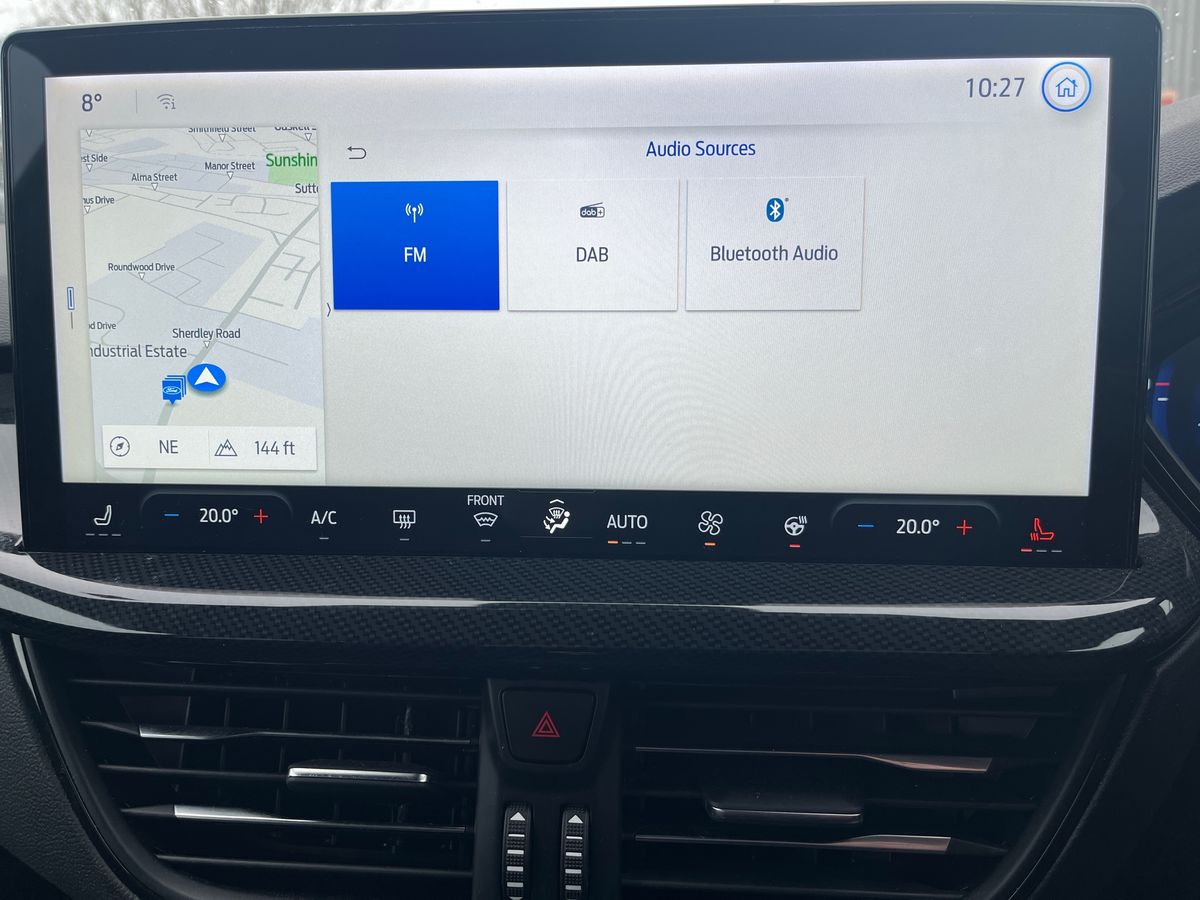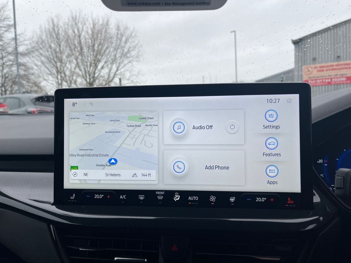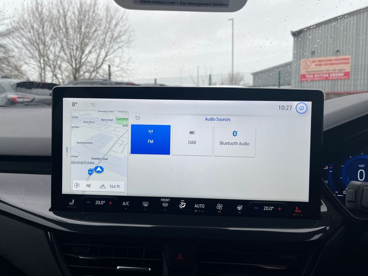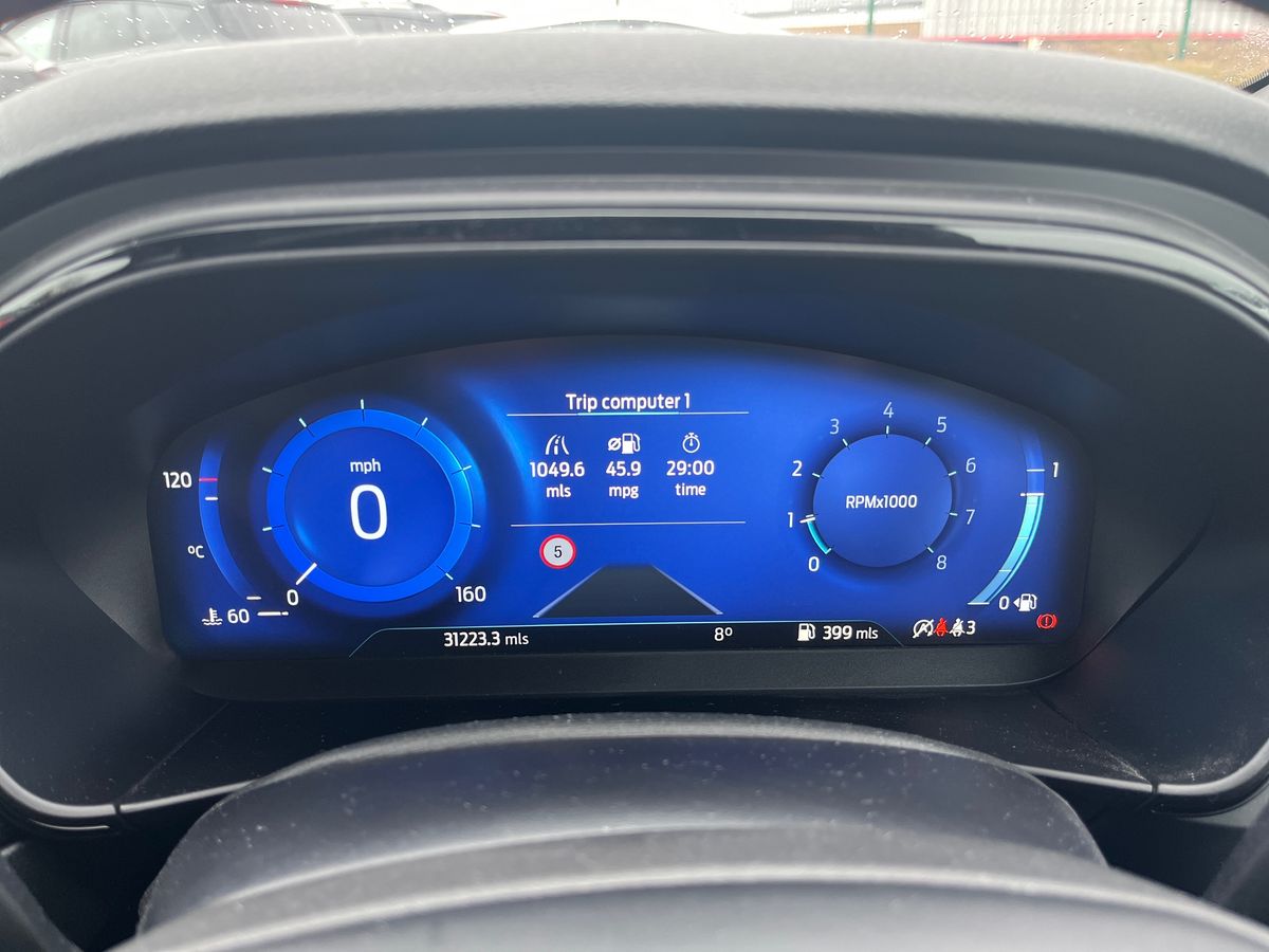 "features": "12.3\" Digital instrument cluster, Bluetooth system, Digital clock, Easy fuel capless refuelling system, Eco mode, Ford SYNC4 Nav with 13.2'' touchscreen, DAB, Emergency Assistance, Apple Carplay & Android Auto, B&O Premium Audio with 10 speakers, FordPass Connect, Lane keeping system - lane keeping alert and lane keeping aid, PAS, Rev counter, Selectable drive mode, Service interval indicator, Trip computer, Wireless charging pad, Sports tuned suspension, 2 USB ports, Auto headlamps (on/off), Body coloured door handles, Electrically operated front and rear windows with one touch opening and closing, Electrically operated heated power fold door mirrors with puddle lamp with side indicators, Front variable intermittent wipers with electric wash, Heated rear window, LED daytime running lamp, LED rear lamps, LED third brake light, Polished twin tailpipe, Privacy glass, Quickclear heated windscreen, Rain sensor, Rear side wing doors, Tailgate wash/wipe, Unique ST-Line grille, full bodystyling kit, and large body coloured rear spoiler, 3 rear headrests, 3 seat bench in 2nd row, Dual zone electronic air temperature control, Full sensico premium upholstery, Height adjustable front headrests, Isofix child seat preparation, Load through ski hatch, Manual 4-way passenger seat adjusts, Power 4-way driver seat adjust, with power lumbar adjust, Reach + rake adjustable steering column, Single front passenger seat, Winter pack - Focus, 3x3 point rear seatbelts, ABS+Electronic Brake force Distribution, Auto hold function, Driver airbag, EDL traction control, Electronic parking brake, Electronic stability control, Front and rear seatbelt reminder, Front inertia reel height adjustable seatbelts with pre-tensioners, Front passenger airbag, Front side airbags, Passenger airbag deactivate switch, Post collision braking, Pre collision assist with autonomous emergency braking and pedestrian/cyclist detection, Red brake calipers, Remote/power child rear door locks, Side curtain airbags, Three rear inertia reel lap/diagonal seatbelts, Tyre pressure monitoring system, Keyless entry and keyless start, MyKey system, Remote central locking & engine immobiliser, Thatcham alarm with power door dead locks, 18\" 5x3 spoke pearl grey high gloss machined finish alloy wheels with mini spare wheel, ",