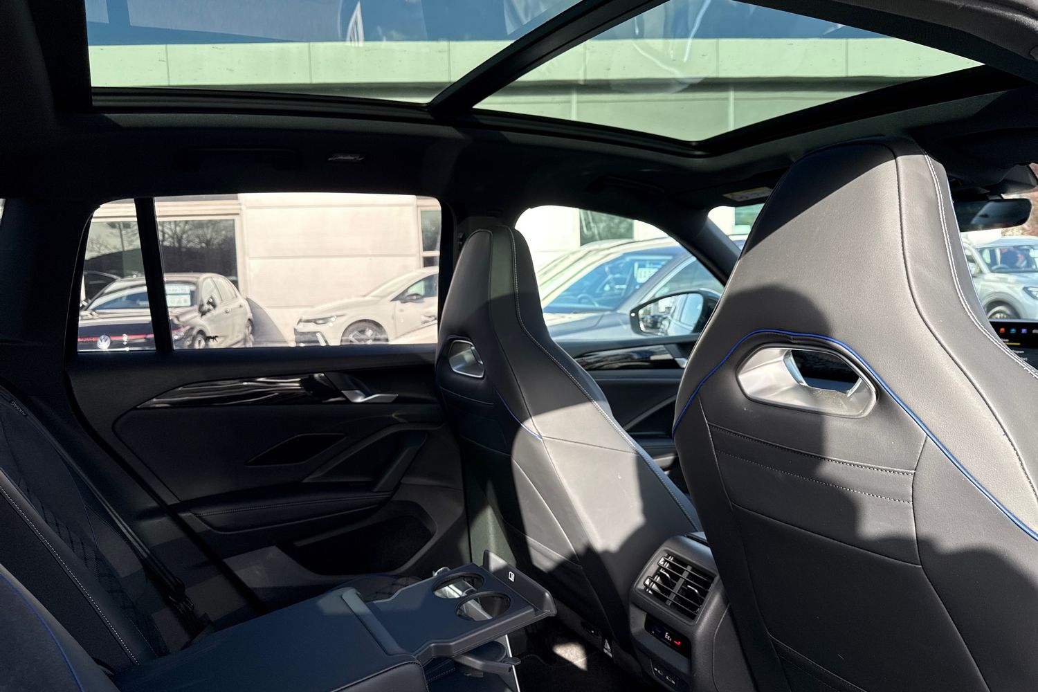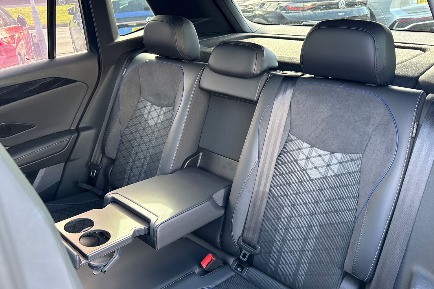"Centre console with two cup holders at front and one in rear",