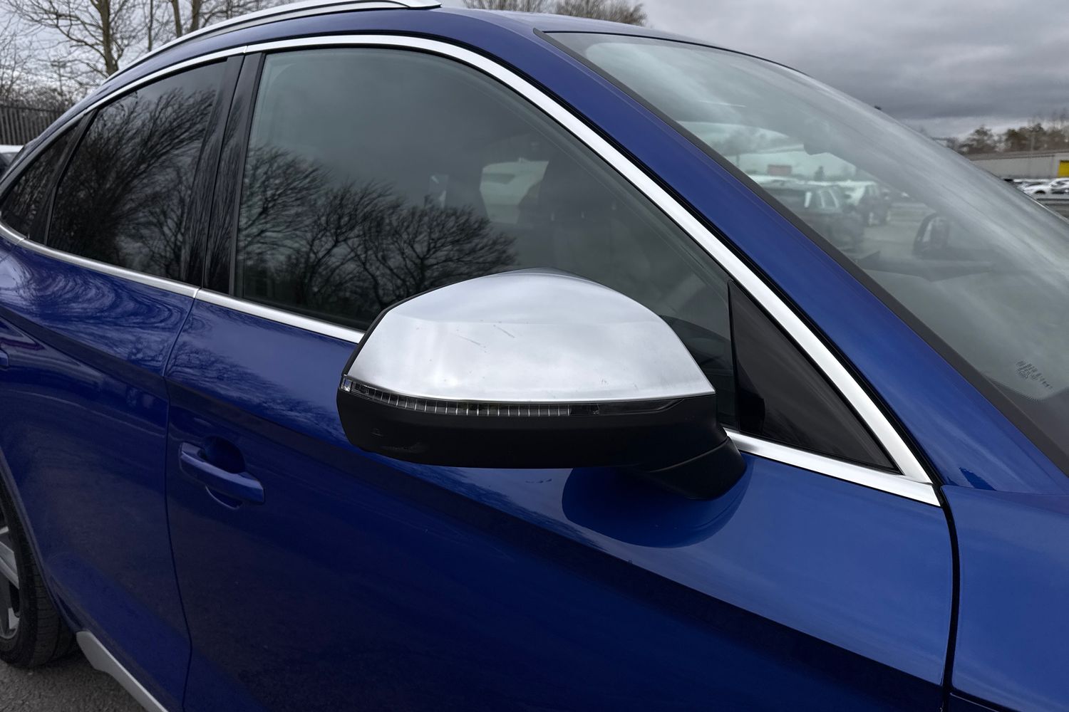 "Chrome effect upper window moulding",