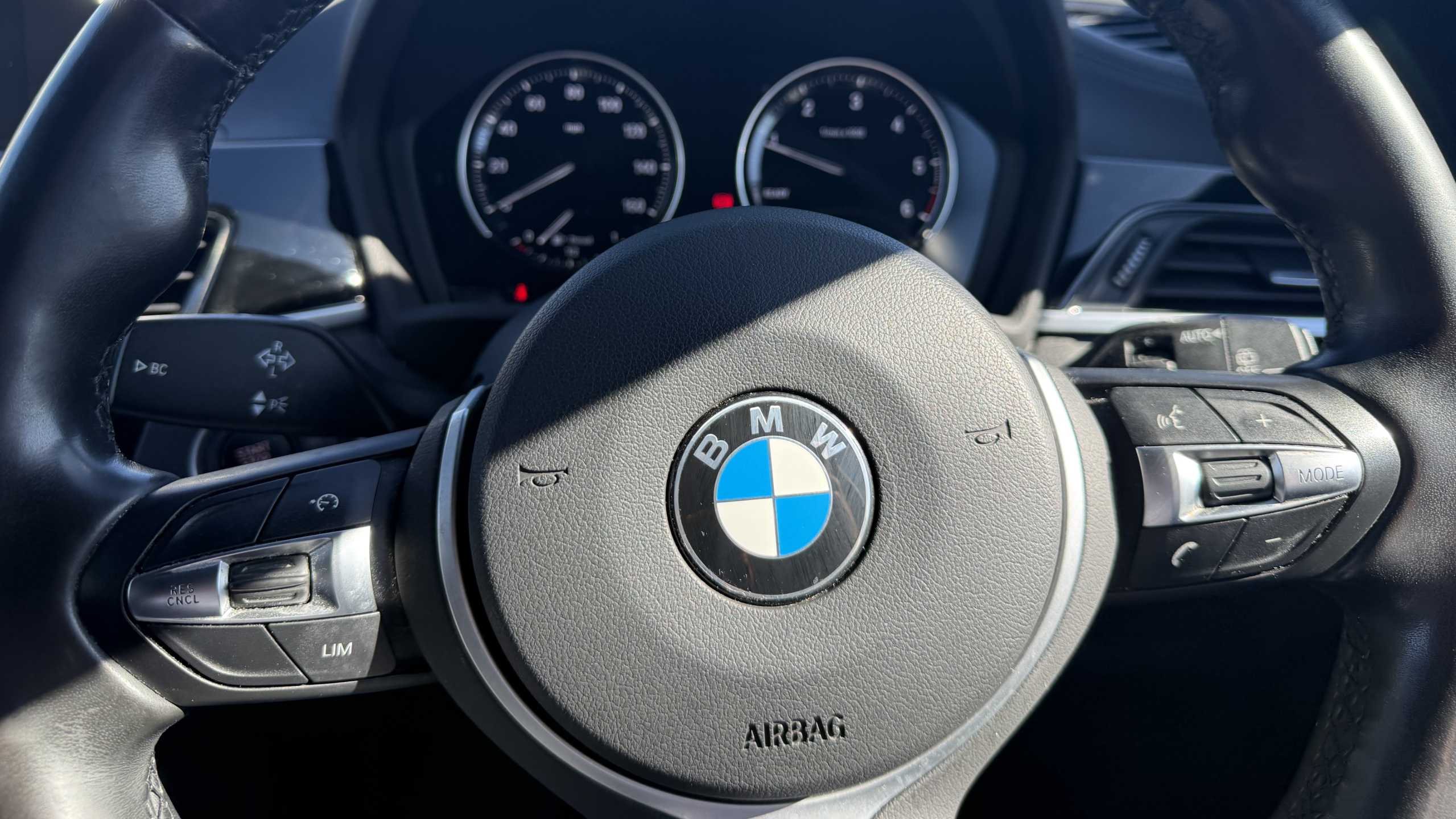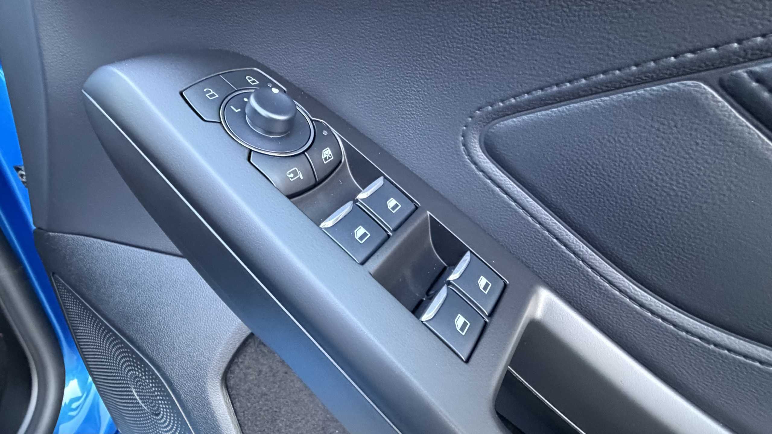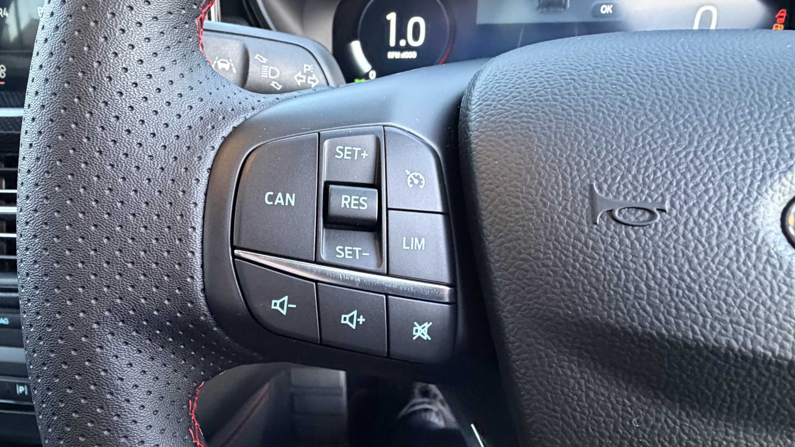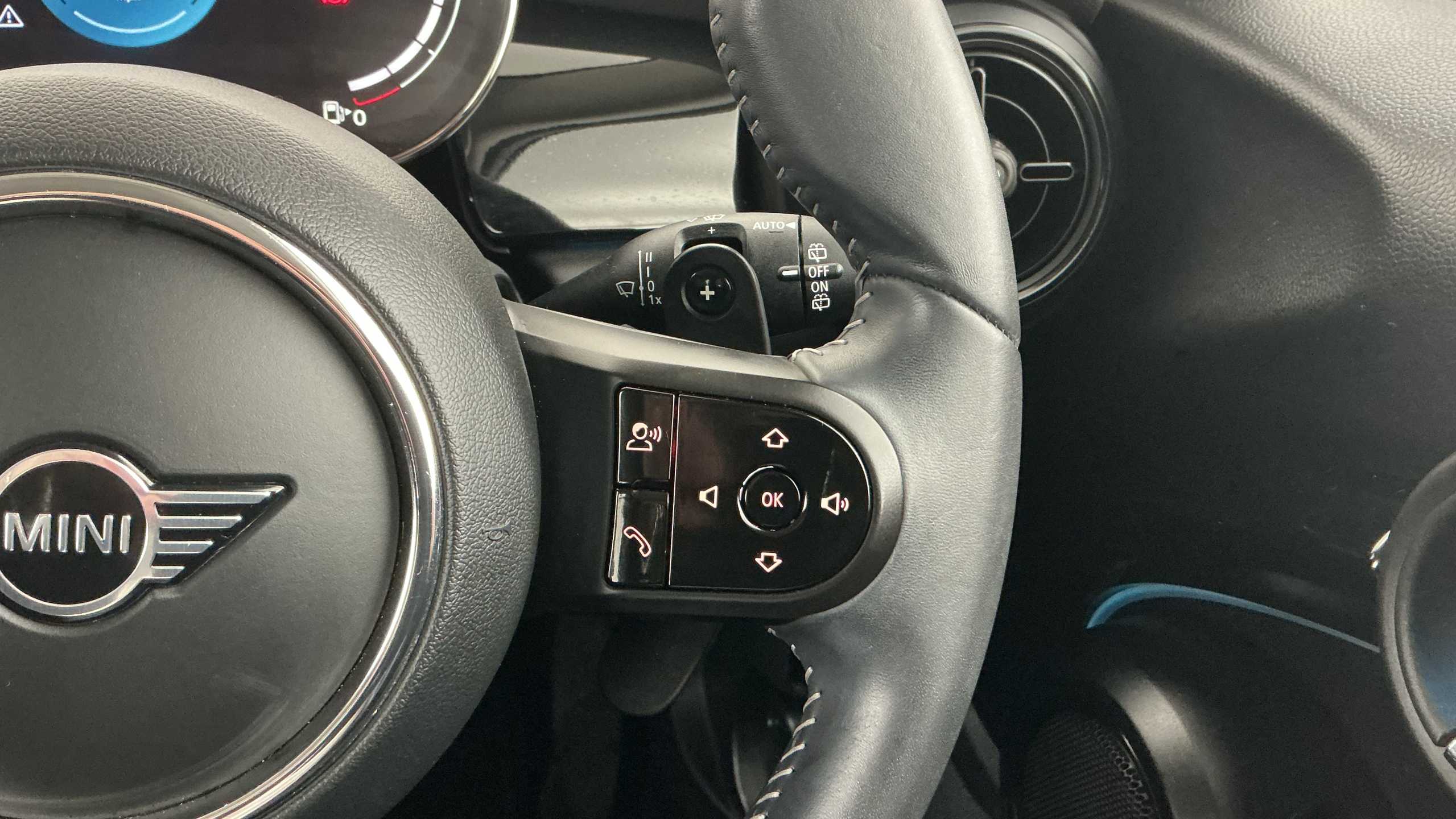"Multi function leather steering wheel with two command blocks",