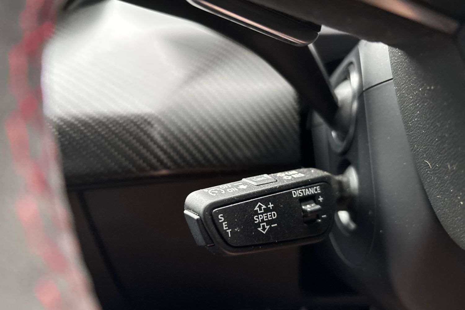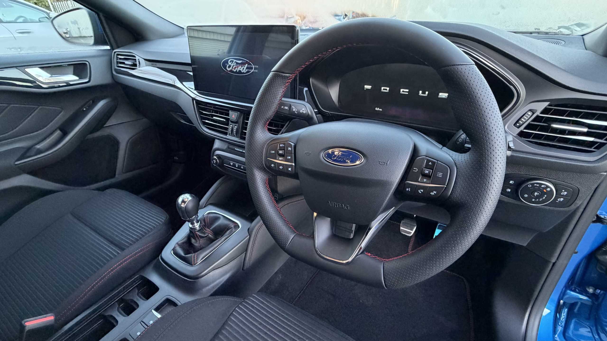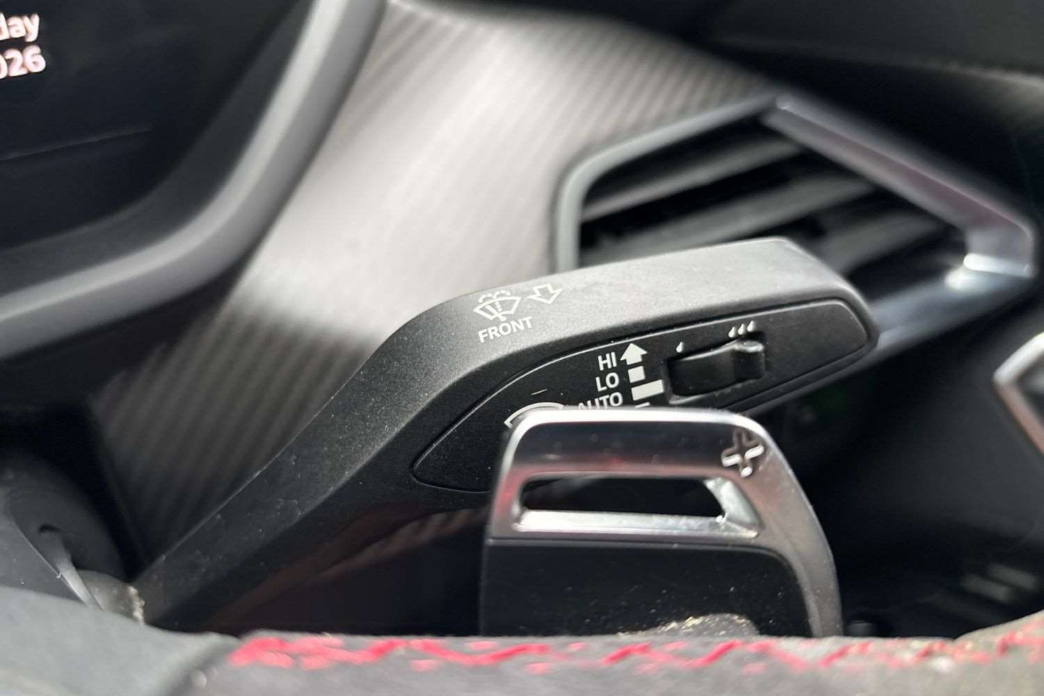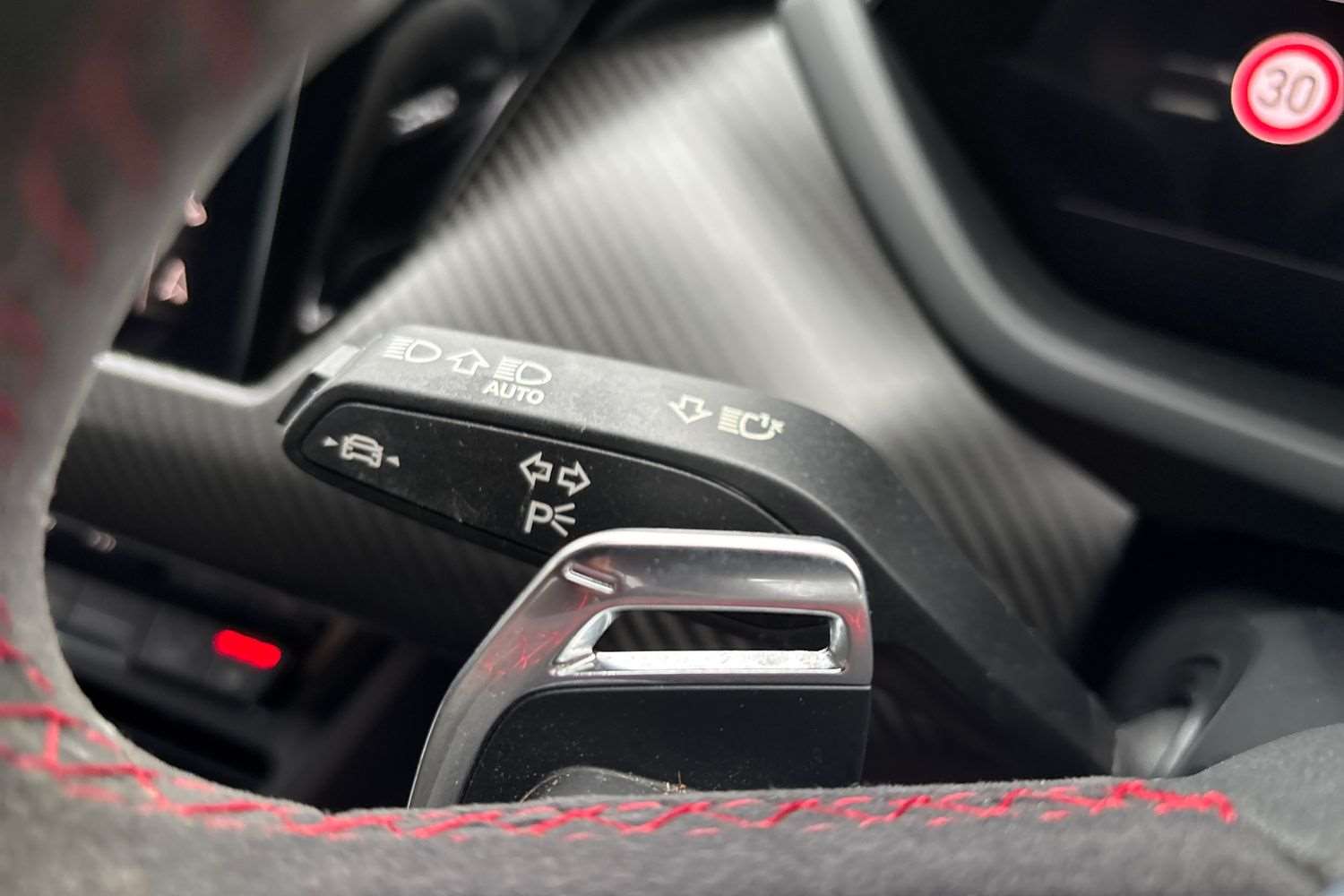 "Multi function leather steering wheel with two command blocks",