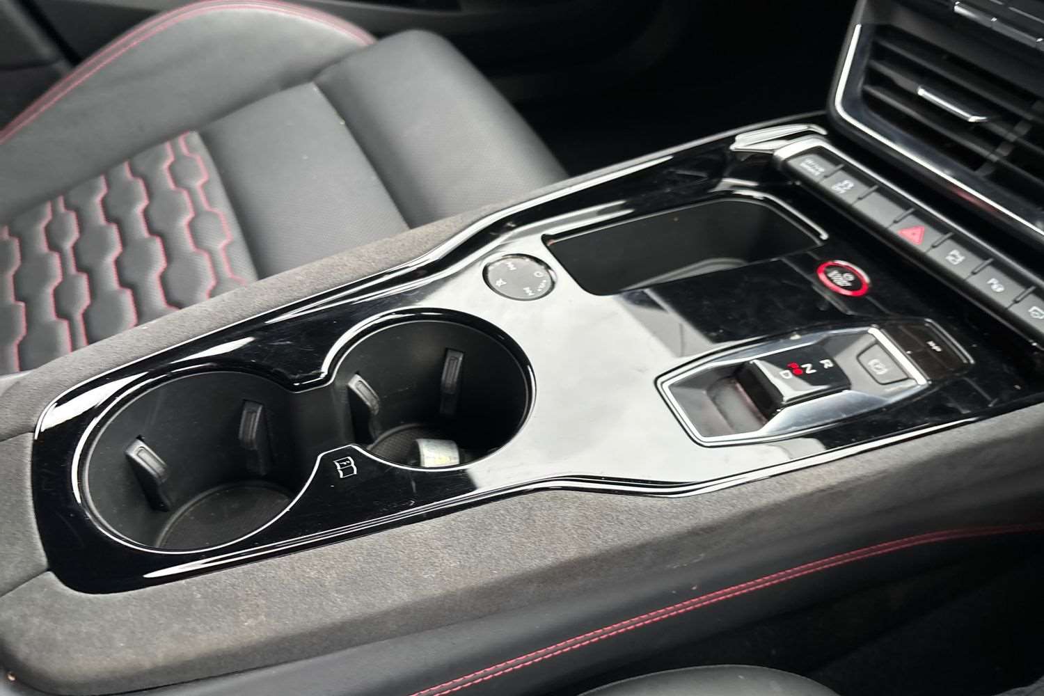 "Two open cupholders with LED lighting in central console"