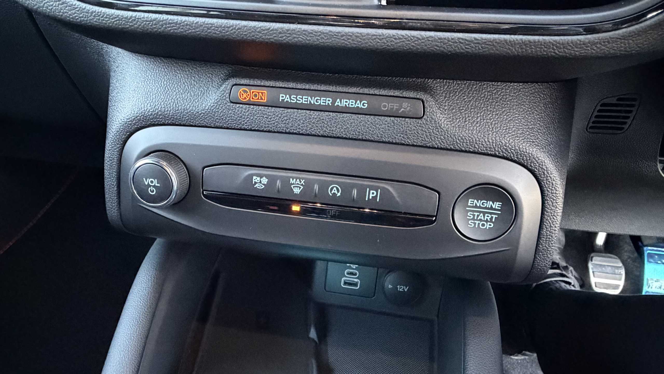 "12V power outlet and 2x USB-A sockets (1x charge+data, 1x charge only) on front part of central console",