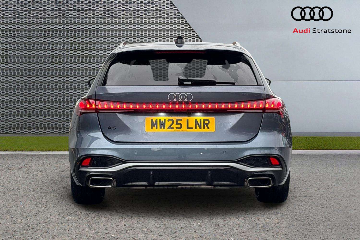 "Two visible exhaust pipes integrated into rear bumper"