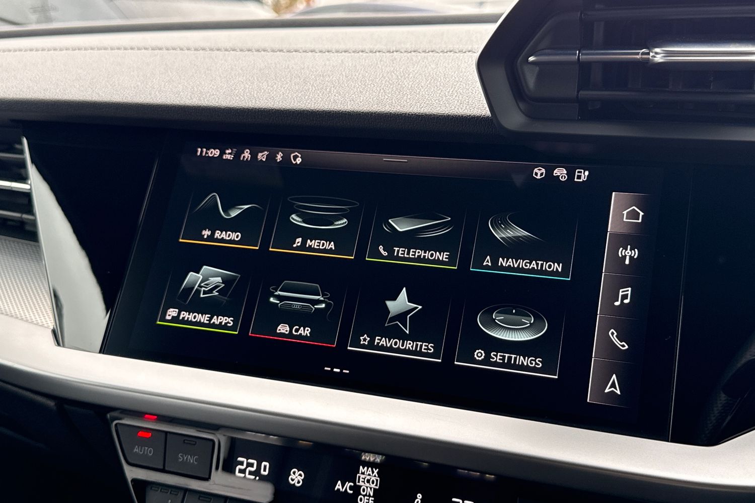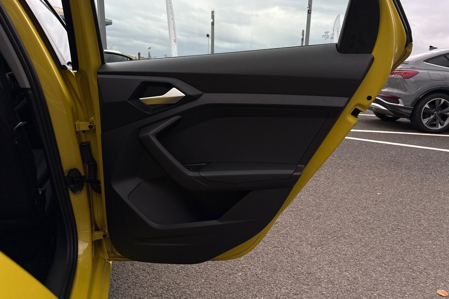 "features": "10.25\" Digital instrument cluster display classis style instrument dials + speed,odometer,time,outside temperature,telephone menu + fuel level warning, Audi smartphone interface with connect compatible smartphone via USB directly MMI display + Nav,music, third party apps controlled via MMI controller, Automatic start/stop system, Bluetooth interface, Driver's information system, Electromechanical power steering, Emergency e-call, Emergency services call system, Lane departure warning system, Service interval indicator, Speed limiter, Voice control system, Washer fluid level indicator, Dynamic suspension, 1 x SDXC card reader, 2 x USB type C connection points, 6 passive loudspeakers, DAB Digital radio, MMI radio plus with 8.8\" colour MMI display screen and MMI touch, Auto dimming rear view mirror, Body coloured bumpers, Body coloured door mirrors, Electric front and rear windows, Electrically adjustable, heated, folding door mirrors with integrated LED side indicator, Front side air inlets with front spoiler lip and rear diffuser in matt black grained, Heat insulating glass windscreen and side windows, Heated rear windscreen, High level LED brake light, LED headlights with LED rear lights + dynamic rear indicators + headlight adjustment and high beam, turning light + LED daytime running lights, Radiator grille in matt black, Rain and light sensors, Rear fog lights, Rear side wing doors, Rear wing door, Rear wiper, 12V socket in centre console with two cup holders, 3 rear seats with headrests, 3 seat bench in 2nd row, 3 spoke leather multifunction plus steering wheel, 40:60 Split folding rear seat or folded fully, Air vents, door handle recesses and centre console in black, Delta cloth upholstery, Driver and passenger seat with manual height adjust with forward and backwards adjustment, Front head restraints, Front passenger seat, Front/rear floor mats, Height and reach adjustable steering wheel, ISOFIX child seat mounting for front passenger and outer rear seats including top tether attachment point of outer rear seats, Leather gear knob with aluminium trim, Leatherette handbrake grip, Luggage compartment light with front and rear reading lights, Manual air conditioning, Titanium grey cloth headlining, Luggage compartment pack - A1, 3x3 point rear seatbelts, Audi pre-sense front with pedestrain and cyclist recognition, Brake assist function, Driver and front passenger airbag with front side and head airbags, Electronic Stability Control including ABS, EBD, ASR and EDL, Front passenger airbag deactivation switch, Hill hold assist, Manual rear child locks, Seatbelt height adjustment for front seats, Seatbelt monitoring, Tyre pressure warning light, Warning triangle and first aid kit, Anti theft alarm, Anti theft wheel bolts and loose wheel warning, Immobiliser, Remote central locking with 2 foldaway keys, Black inlays polygon structure, 15\" 5 arm design alloy wheels, ",