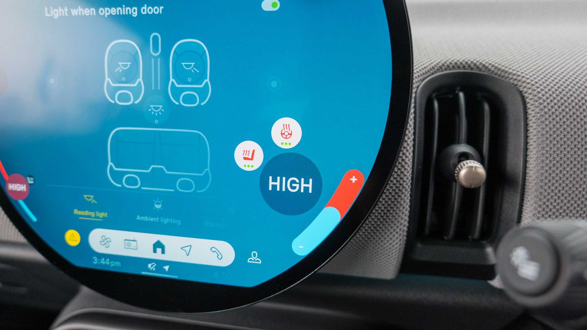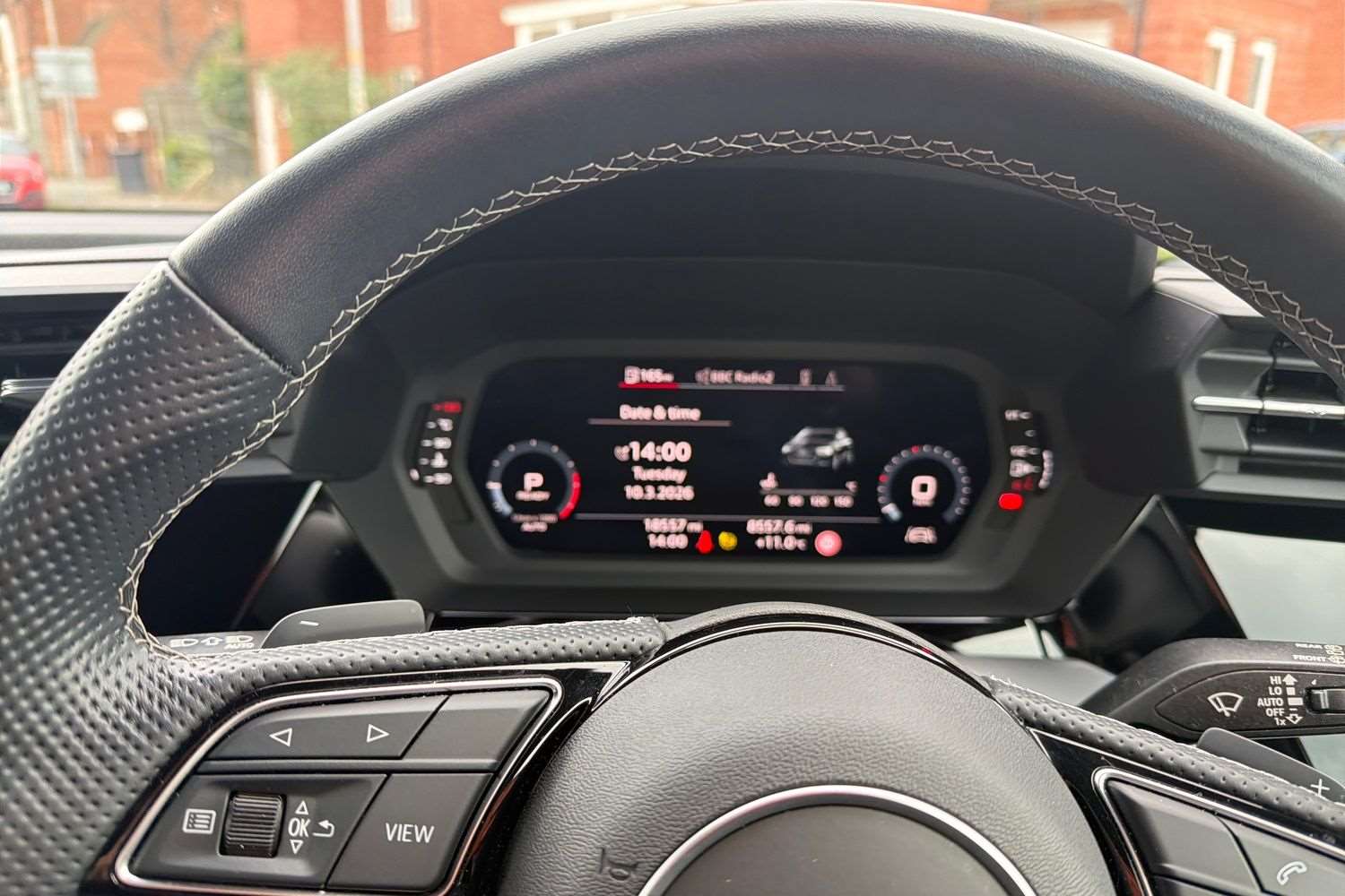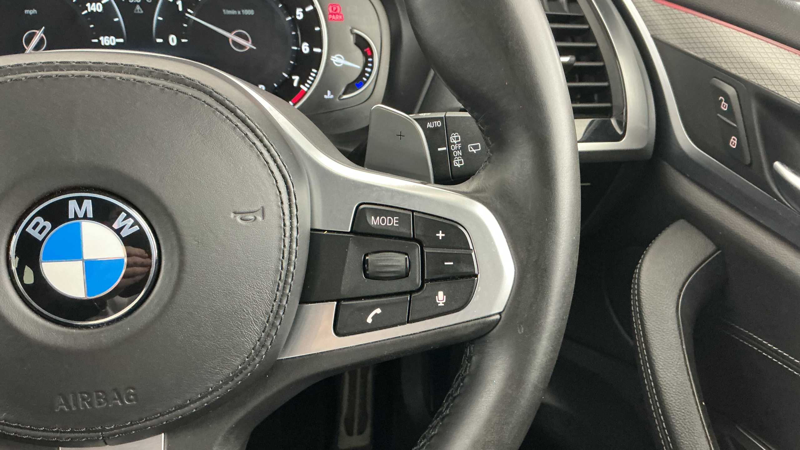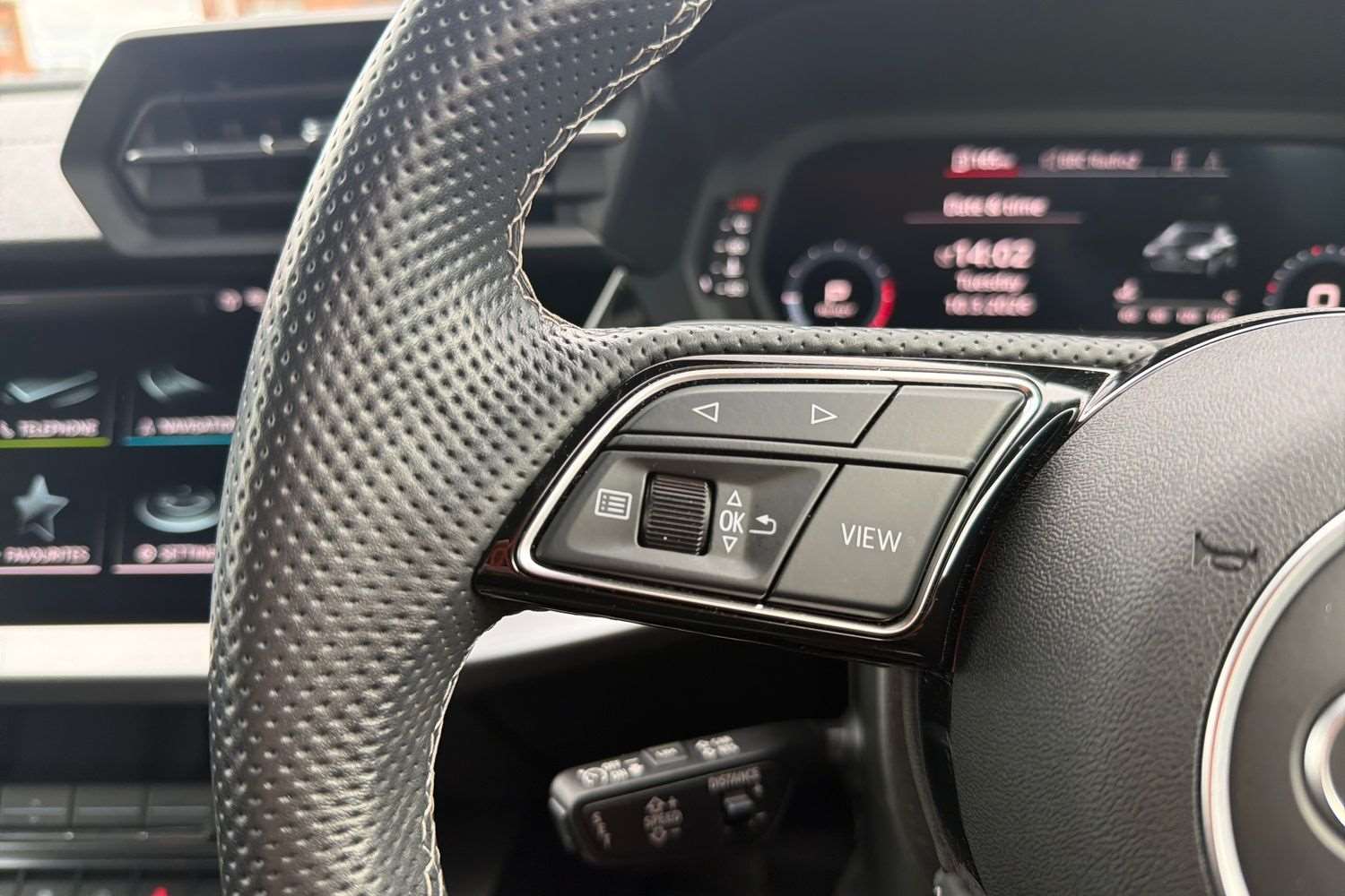 "3 spoke leather trimmed multi-function steering wheel with height and reach adjustable",