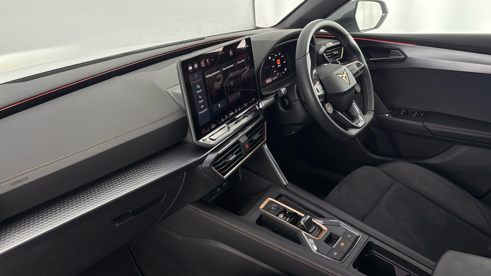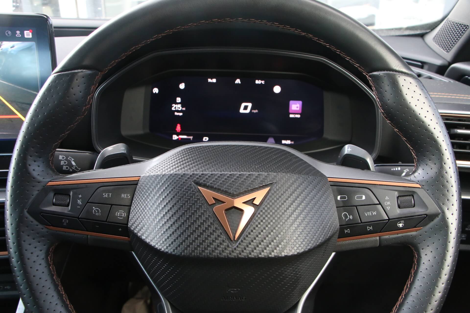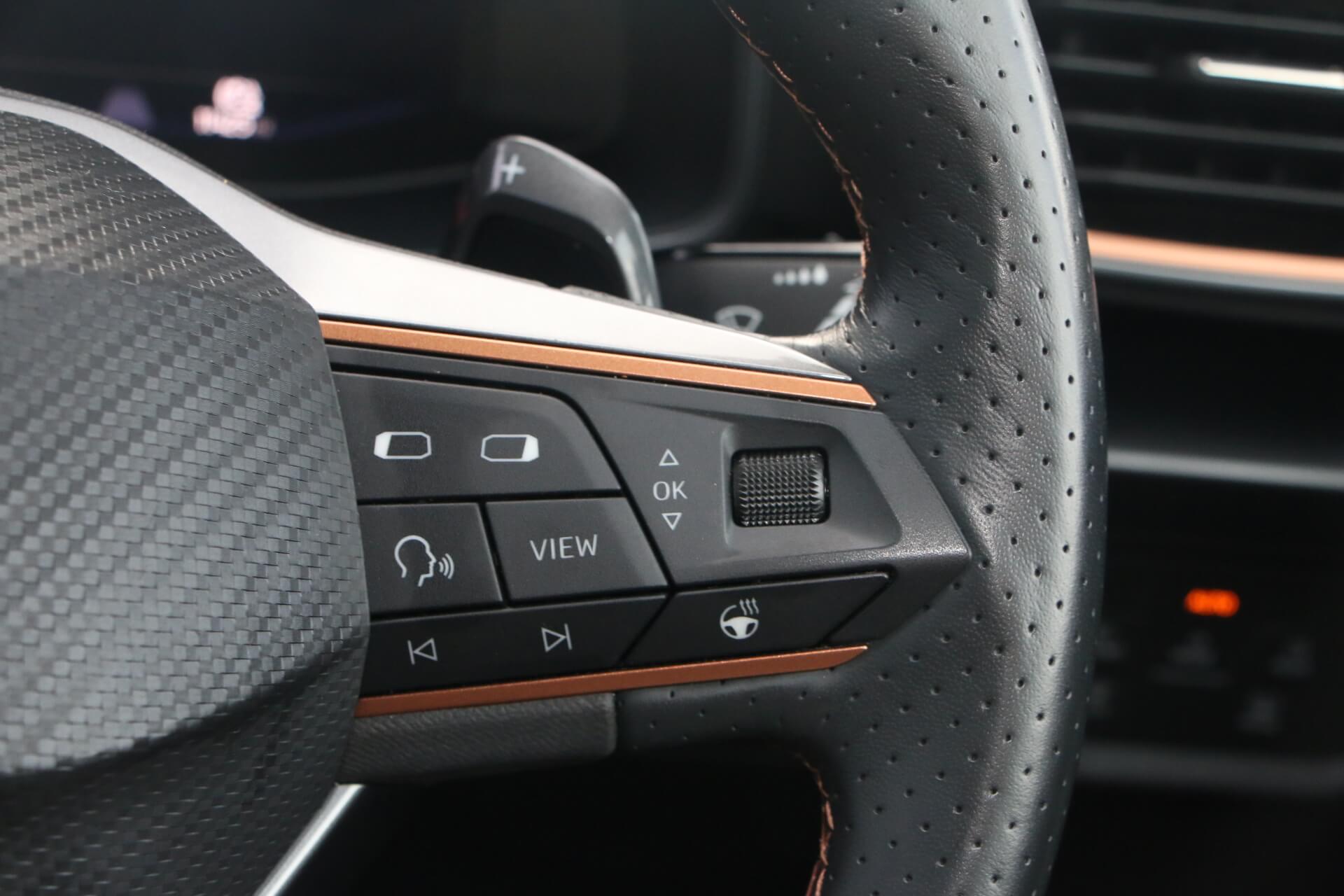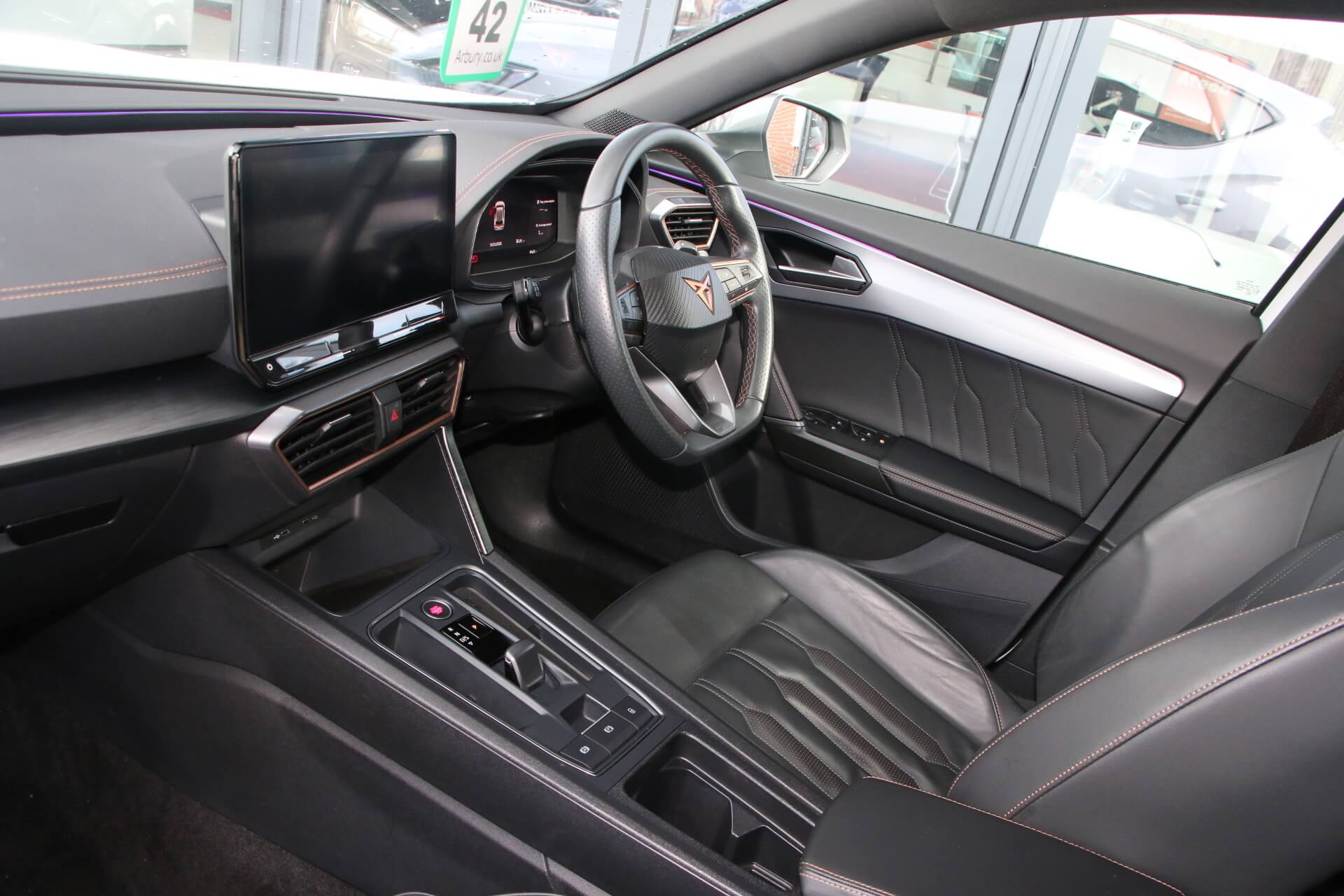 "features": "Digital cockpit and configurable dashboard, Driver alert system, Driving profile selection, Forward collision warning with automatic braking, Lane assist, Navigation system with 12'' Touchscreen Display, Park assist (inc front/rear parking sensors), PAS, Predictive adaptive cruise control with speed limiter, Rear view camera, RPM, trip computer, outside temp gauge, instrument light brightness, low fuel warning light, lights on reminder, gearshift indicator, Service interval indicator, Start/stop system with regenerative braking, Voice control system, Wired Android Auto, Wireless apple carplay, Wireless phone charger, Electronic locking differential and dynamic traction support, Standard suspension, 2 front and 2 rear USB type C sockets, Auxiliary input socket, DAB radio, Auto dimming rear view mirror, Body colour door handles, Body coloured bumpers, Dark grey wing mirror, Daytime running light with automatic headlight control and coming home feature, Dynamic headlight range control, Electric front/rear windows, Electrically adjustable heated and folding door mirrors with memory function, Front fog lamps with cornering function, Gloss black roof rails and window surrounds, LED Headlights, LED Taillights with dynamic indicator, Rain sensing wipers, Rear diffuser with black simulated exhaust pipes, Rear side wing doors, Rear wash/wipe, Third brake light, Tinted rear windows, Welcome lights, 12v power supply in centre console, 12V socket, 12v socket in loadspace, 2 front and 2 rear reading lights, 230V socket, 3 seat bench in 2nd row, 60/40 split rear bench seat with armrest and mechanical seat release, Black headlining, Dust/pollen filter, Front and rear head restraints, Front centre armrest, Height/reach adjust steering wheel, Illuminated interior front door sills, Illuminated sunvisor with mirror, Isofix, Leather multi function heated steering wheel with gear shift paddles, Luggage tie-down hooks, Single front passenger seat, Three zone climate control with control panel in rear, Variable luggage/load compartment floor, Wraparound lighting, Genuine Nappa leather Pack - Cupra, 3 point seatbelts on all rear seats, ABS, Brake control system - ESC and brake booster, Child proof door locks, Driver and front passenger airbags with front passenger airbag de-activation, Electronic parking brake, Front and rear disc brakes, Front side curtain airbags, Hill hold control, Public e-call, Seat belt reminder for front and rear seats, Tyre pressure monitoring system, Anti theft alarm system, Keyless entry and start system (KESSY), Locking wheel bolts, Copper and aluminium interior detailing, 19\" 'Exclusive' machined sport matte black and silver alloy wheels, ",