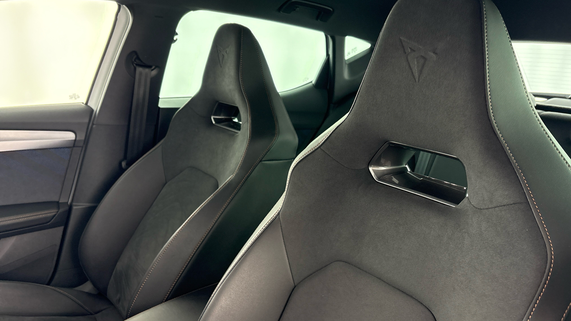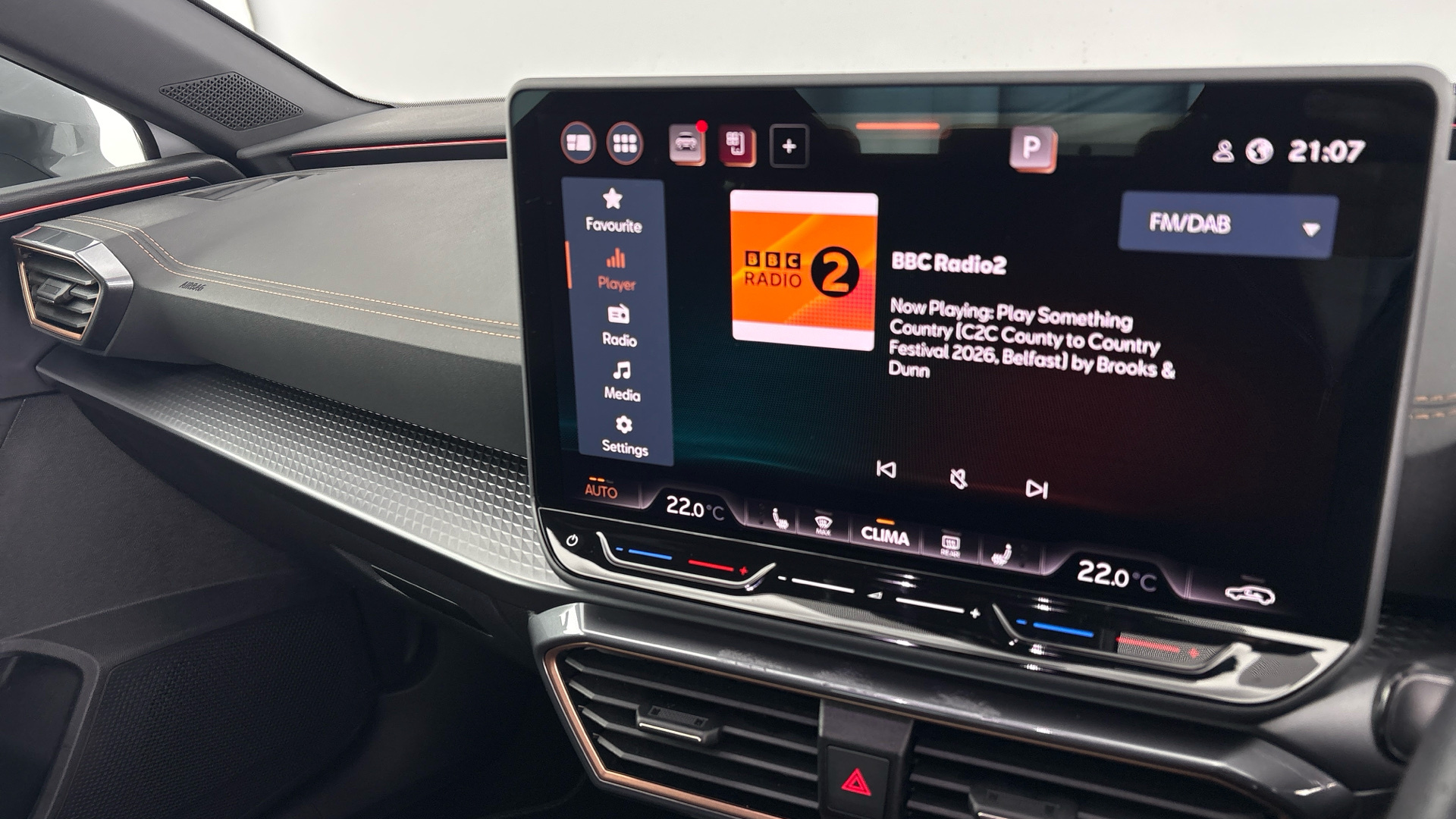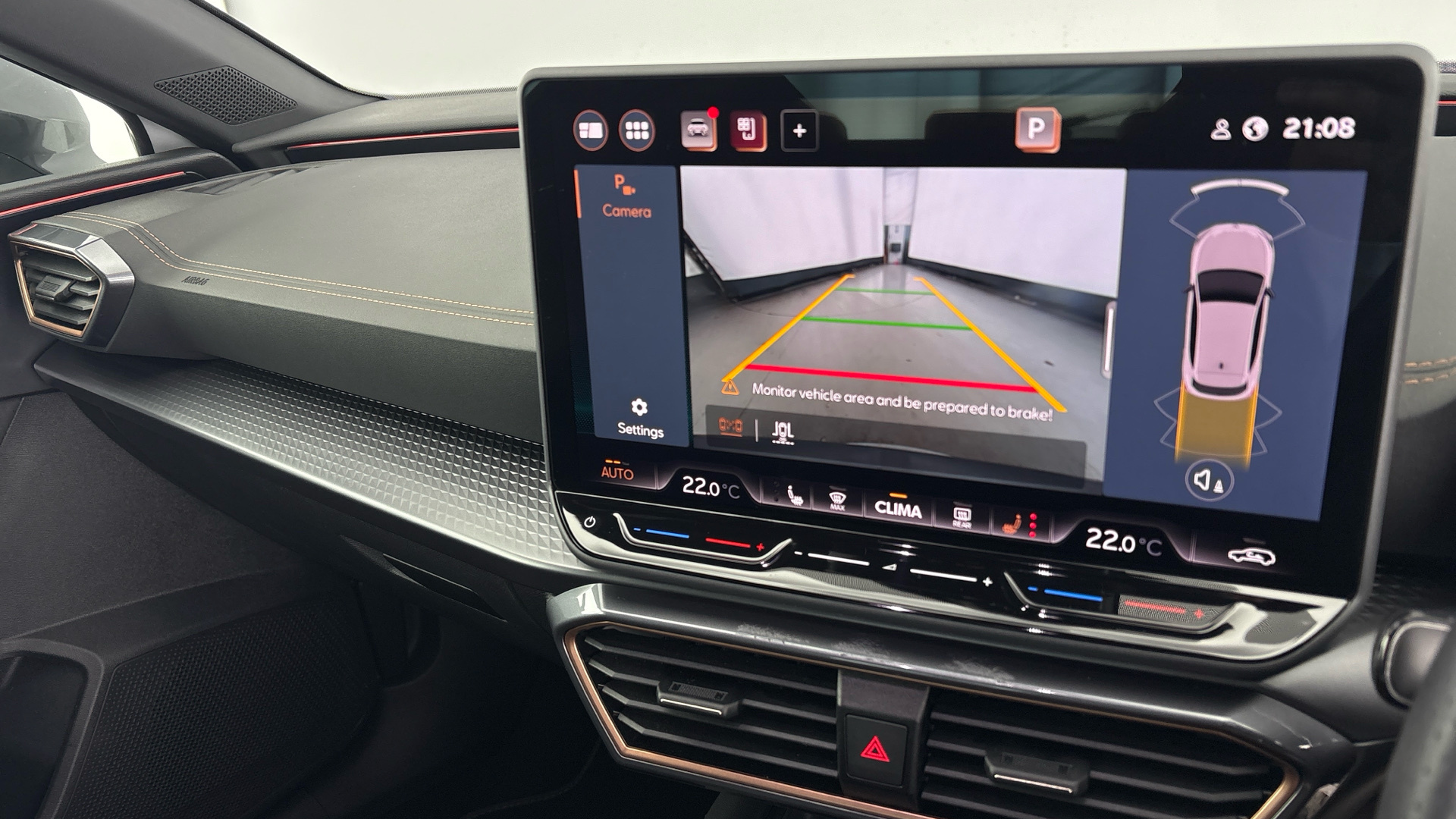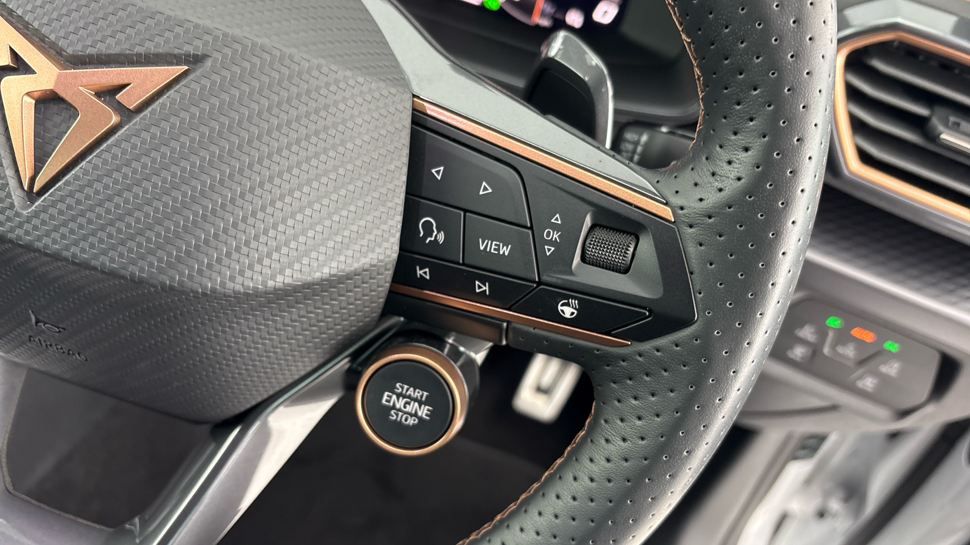 "features": "Digital cockpit and configurable dashboard, Driver alert system, Driving profile selection, Forward collision warning with automatic braking, Lane assist, Navigation system with 12'' Touchscreen Display, Park assist (inc front/rear parking sensors), PAS, Predictive adaptive cruise control with speed limiter, Rear view camera, RPM, trip computer, outside temp gauge, instrument light brightness, low fuel warning light, lights on reminder, gearshift indicator, Service interval indicator, Start/stop system with regenerative braking, Voice control system, Wired Android Auto, Wireless apple carplay, Wireless phone charger, Electronic locking differential and dynamic traction support, Standard suspension, 2 front and 2 rear USB type C sockets, Auxiliary input socket, DAB radio, Auto dimming rear view mirror, Body colour door handles, Body coloured bumpers, Dark grey wing mirror, Daytime running light with automatic headlight control and coming home feature, Dynamic headlight range control, Electric front/rear windows, Electrically adjustable heated and folding door mirrors with memory function, Front fog lamps with cornering function, Gloss black roof rails and window surrounds, LED Headlights, LED Taillights with dynamic indicator, Rain sensing wipers, Rear diffuser with black simulated exhaust pipes, Rear side wing doors, Rear wash/wipe, Third brake light, Tinted rear windows, Welcome lights, 12v power supply in centre console, 12V socket, 12v socket in loadspace, 2 front and 2 rear reading lights, 230V socket, 3 seat bench in 2nd row, 60/40 split rear bench seat with armrest and mechanical seat release, Black headlining, Dust/pollen filter, Front and rear head restraints, Front centre armrest, Height/reach adjust steering wheel, Illuminated interior front door sills, Illuminated sunvisor with mirror, Isofix, Leather multi function heated steering wheel with gear shift paddles, Luggage tie-down hooks, Single front passenger seat, Three zone climate control with control panel in rear, Variable luggage/load compartment floor, Wraparound lighting, Genuine Nappa leather Pack - Cupra, 3 point seatbelts on all rear seats, ABS, Brake control system - ESC and brake booster, Child proof door locks, Driver and front passenger airbags with front passenger airbag de-activation, Electronic parking brake, Front and rear disc brakes, Front side curtain airbags, Hill hold control, Public e-call, Seat belt reminder for front and rear seats, Tyre pressure monitoring system, Anti theft alarm system, Keyless entry and start system (KESSY), Locking wheel bolts, Copper and aluminium interior detailing, 19\" 'Exclusive' machined sport matte black and silver alloy wheels, ",